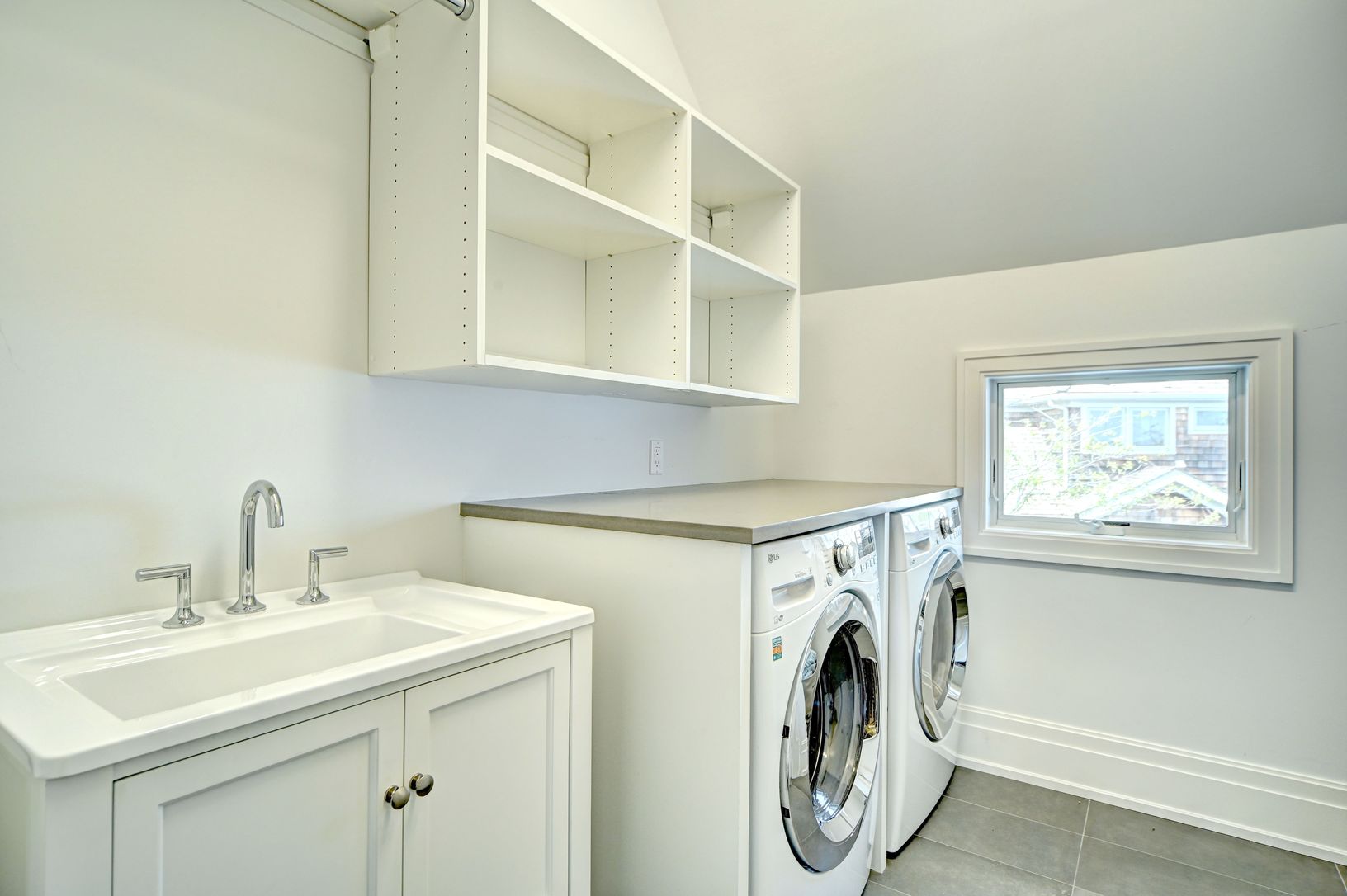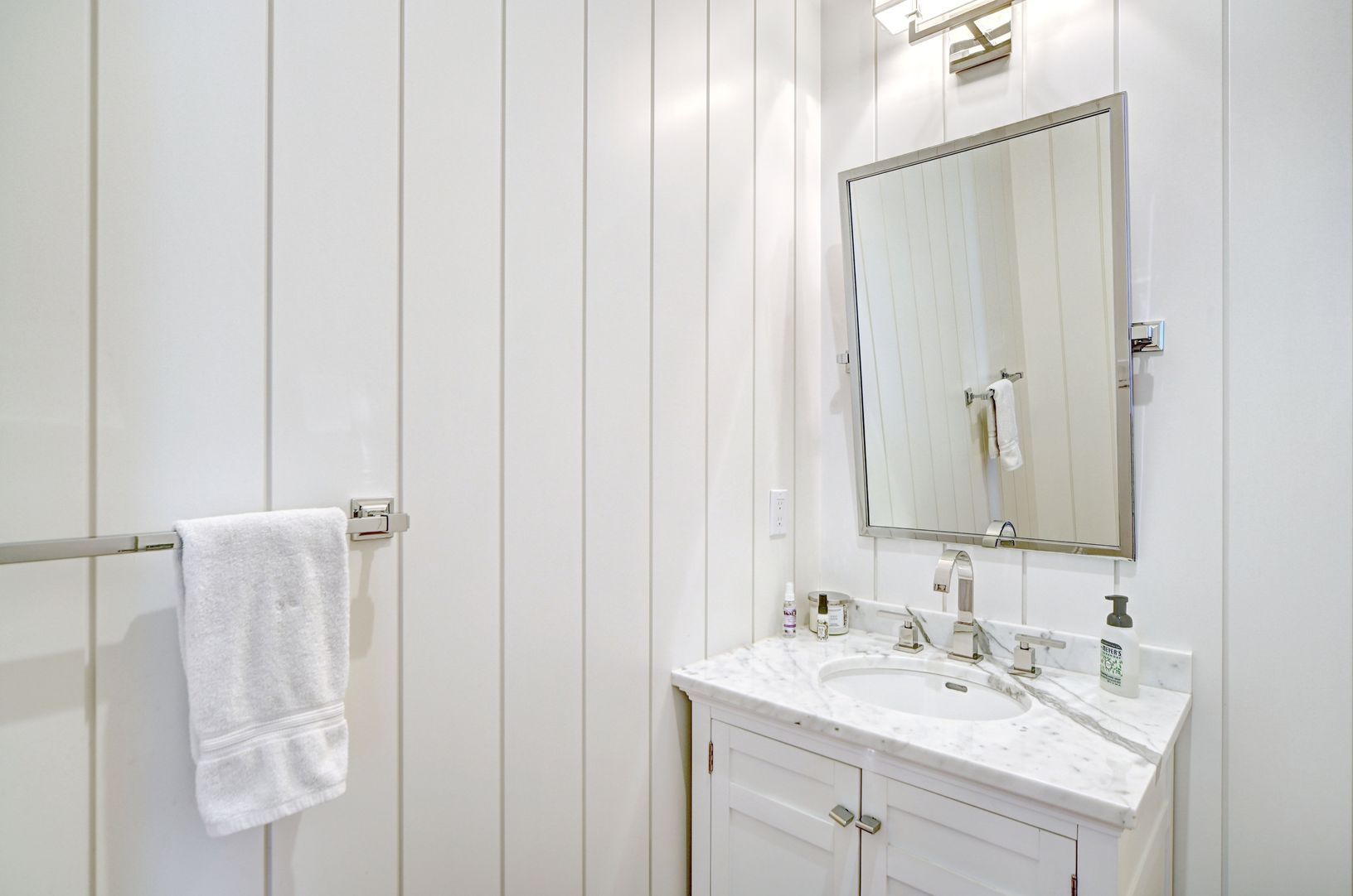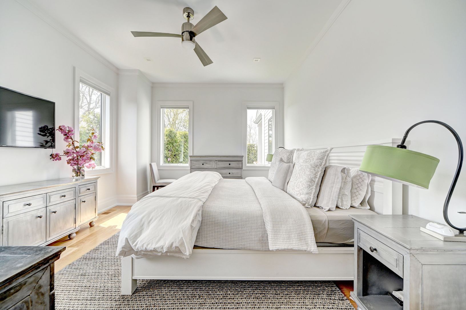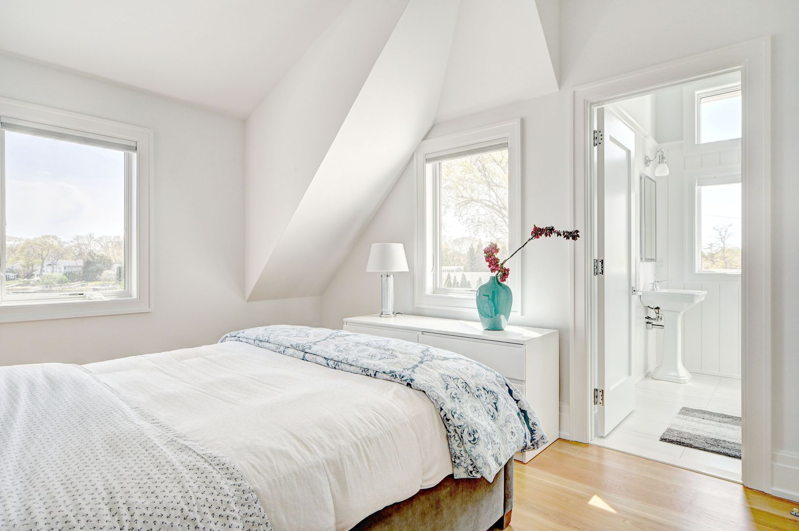 Set on a manicured 0.60+/- acre waterfront parcel on a secluded Bay Point peninsula with dramatic water views of Sag Harbor Village, this recently built and immaculately maintained, 6 bedroom, white shingle traditional, with a stylish, standing seam metal roof, offers a 115+/- foot deep water dock, waterside heated, gunite, salt water pool and spa, finished lower level, and an attached garage. Designed to maximize water views, the home opens o