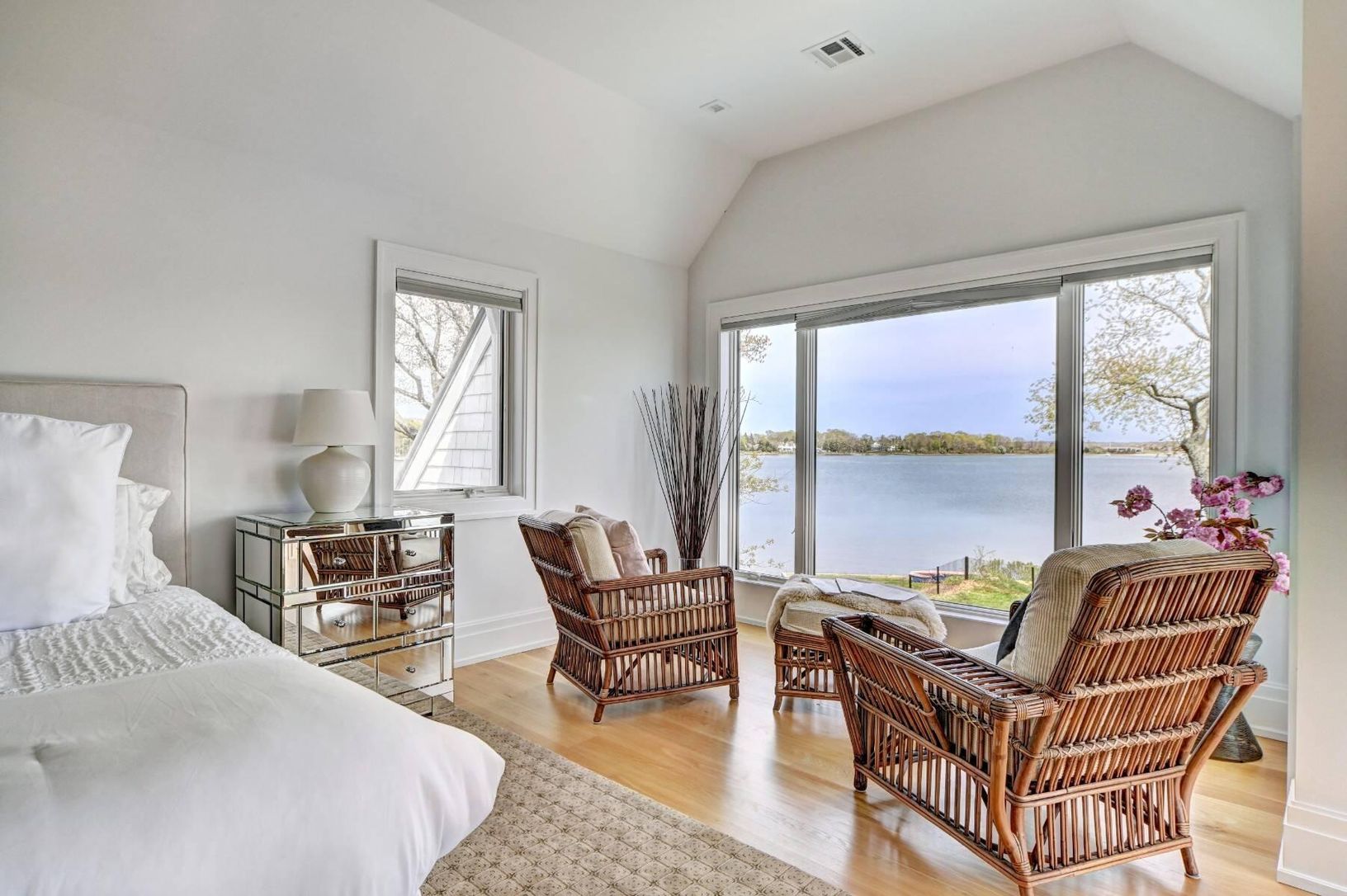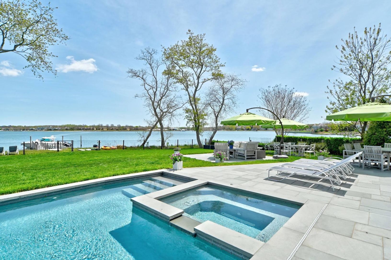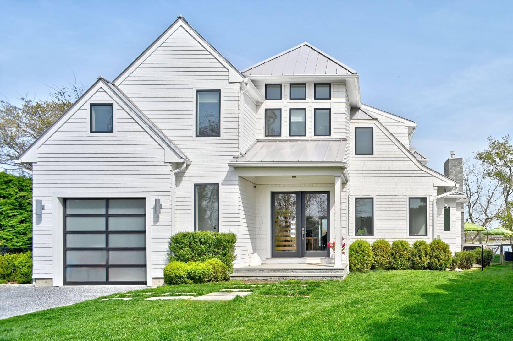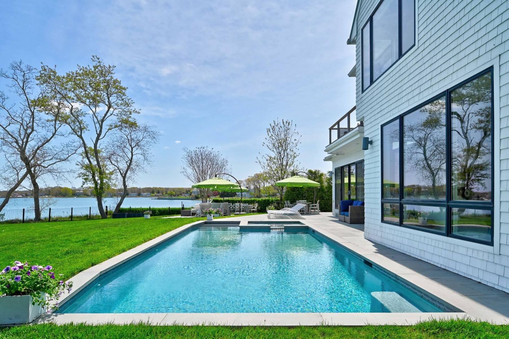 MD-June $90,000; September $50,000; 2 Weeks $45,000 Set on a manicured 0.60+/- acre waterfront parcel on a secluded Bay Point peninsula with dramatic water views of Sag Harbor Village, this recently built and immaculately maintained, 6 bedroom, white shingle traditional, with a stylish, standing seam metal roof, offers a 115+/- foot deep water dock, waterside heated, gunite, salt water pool and spa, finished lower level, and an attached garage