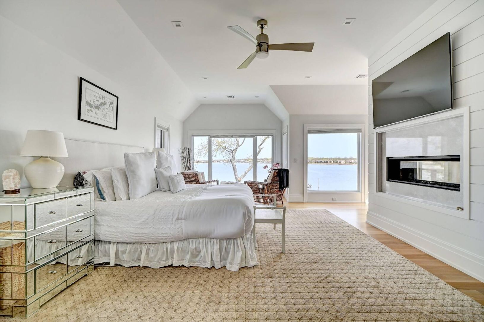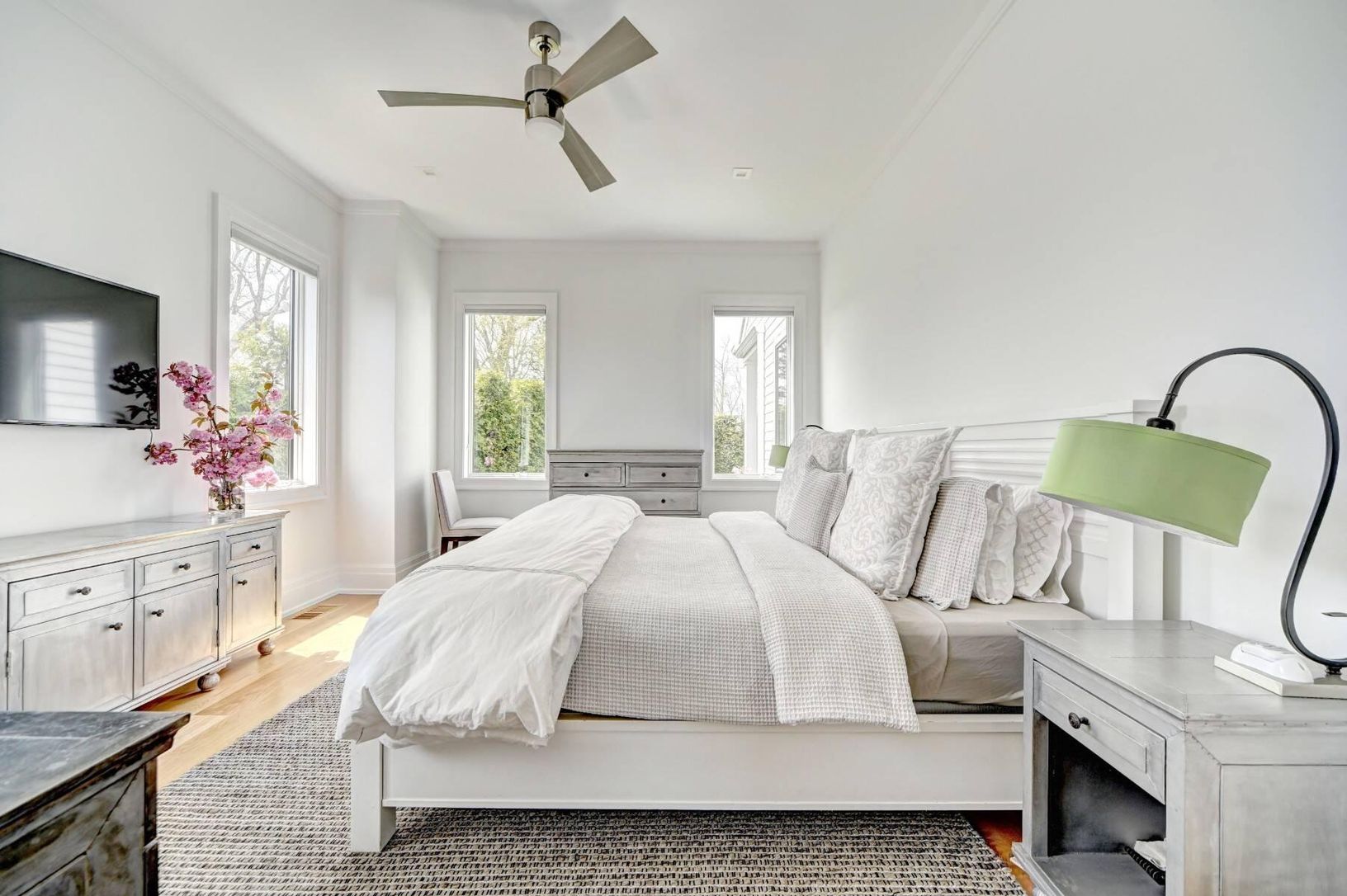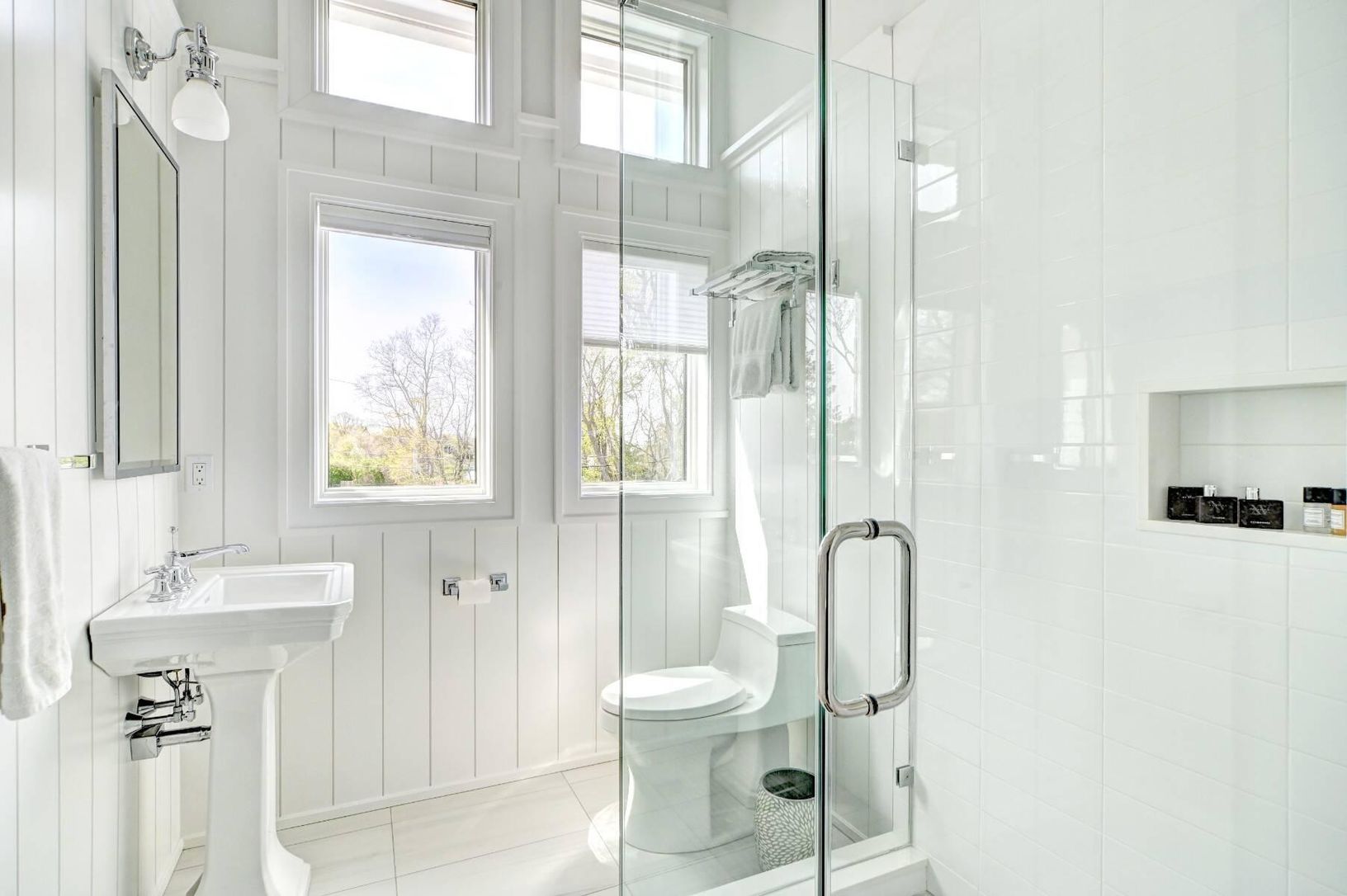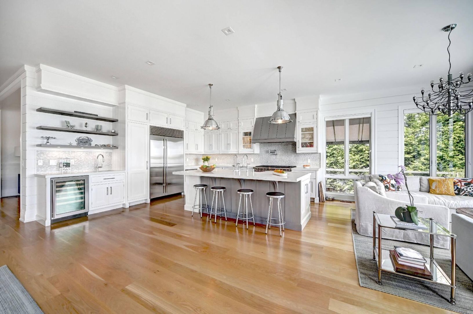 MD-June $90,000; September $50,000; 2 Weeks $45,000 Set on a manicured 0.60+/- acre waterfront parcel on a secluded Bay Point peninsula with dramatic water views of Sag Harbor Village, this recently built and immaculately maintained, 6 bedroom, white shingle traditional, with a stylish, standing seam metal roof, offers a 115+/- foot deep water dock, waterside heated, gunite, salt water pool and spa, finished lower level, and an attached garage
