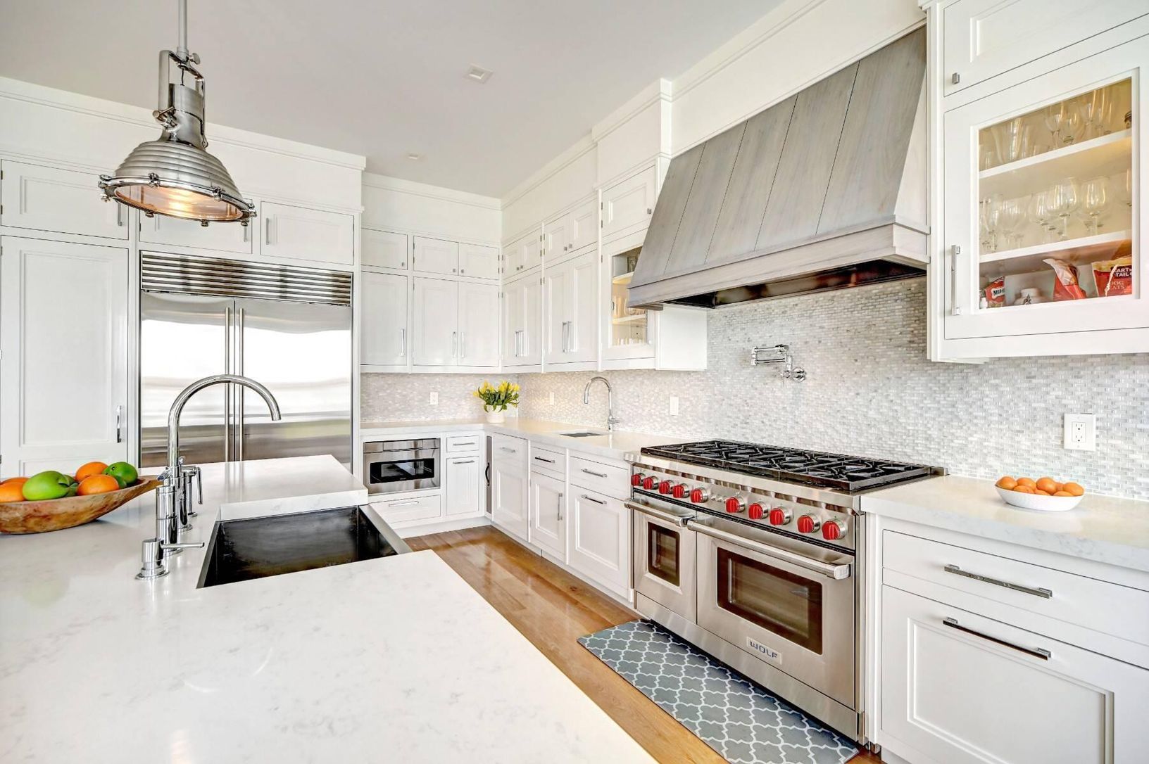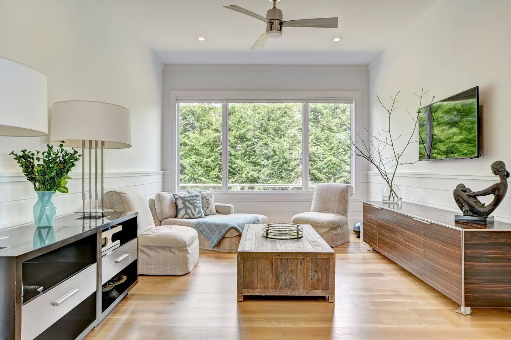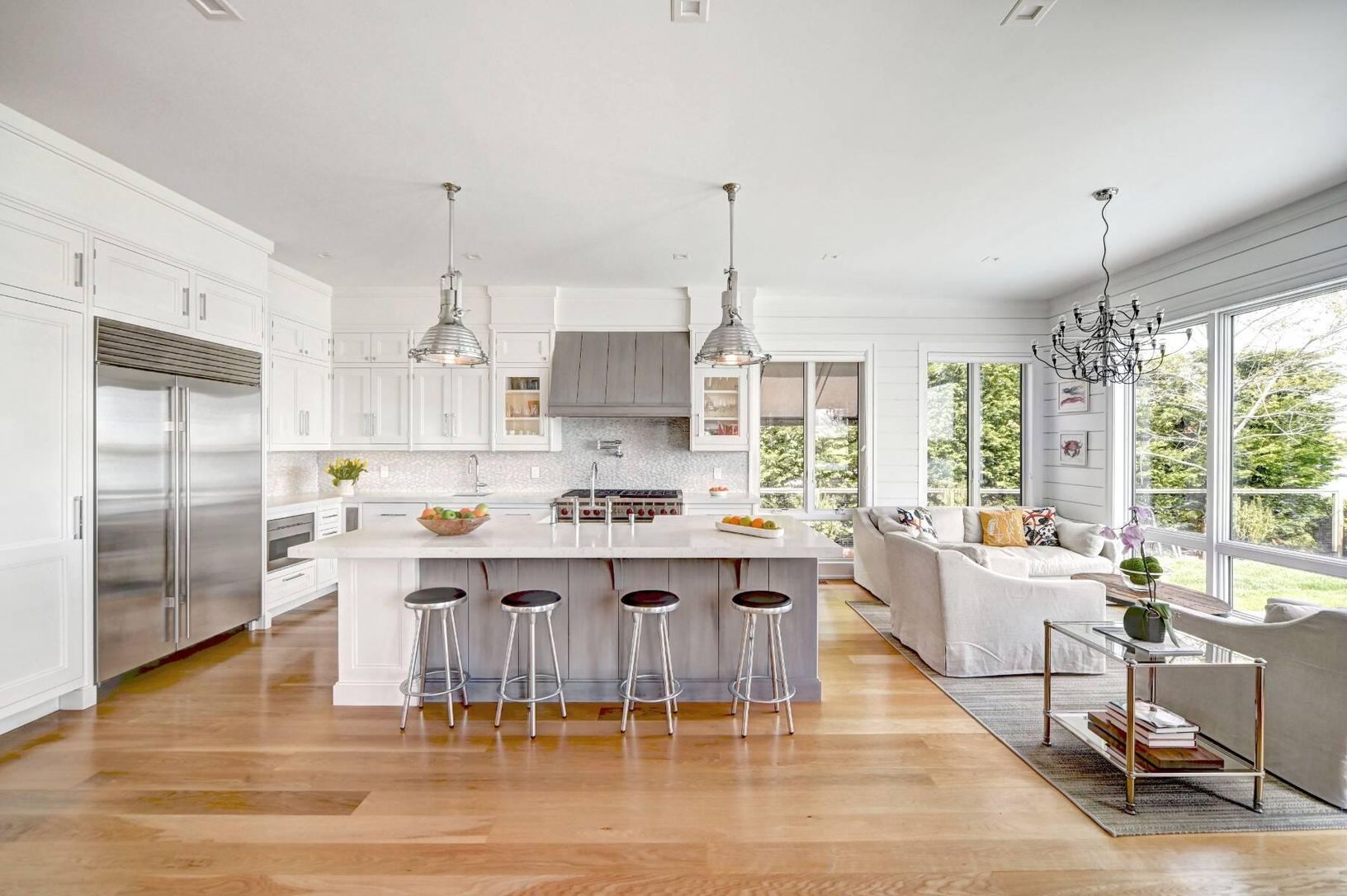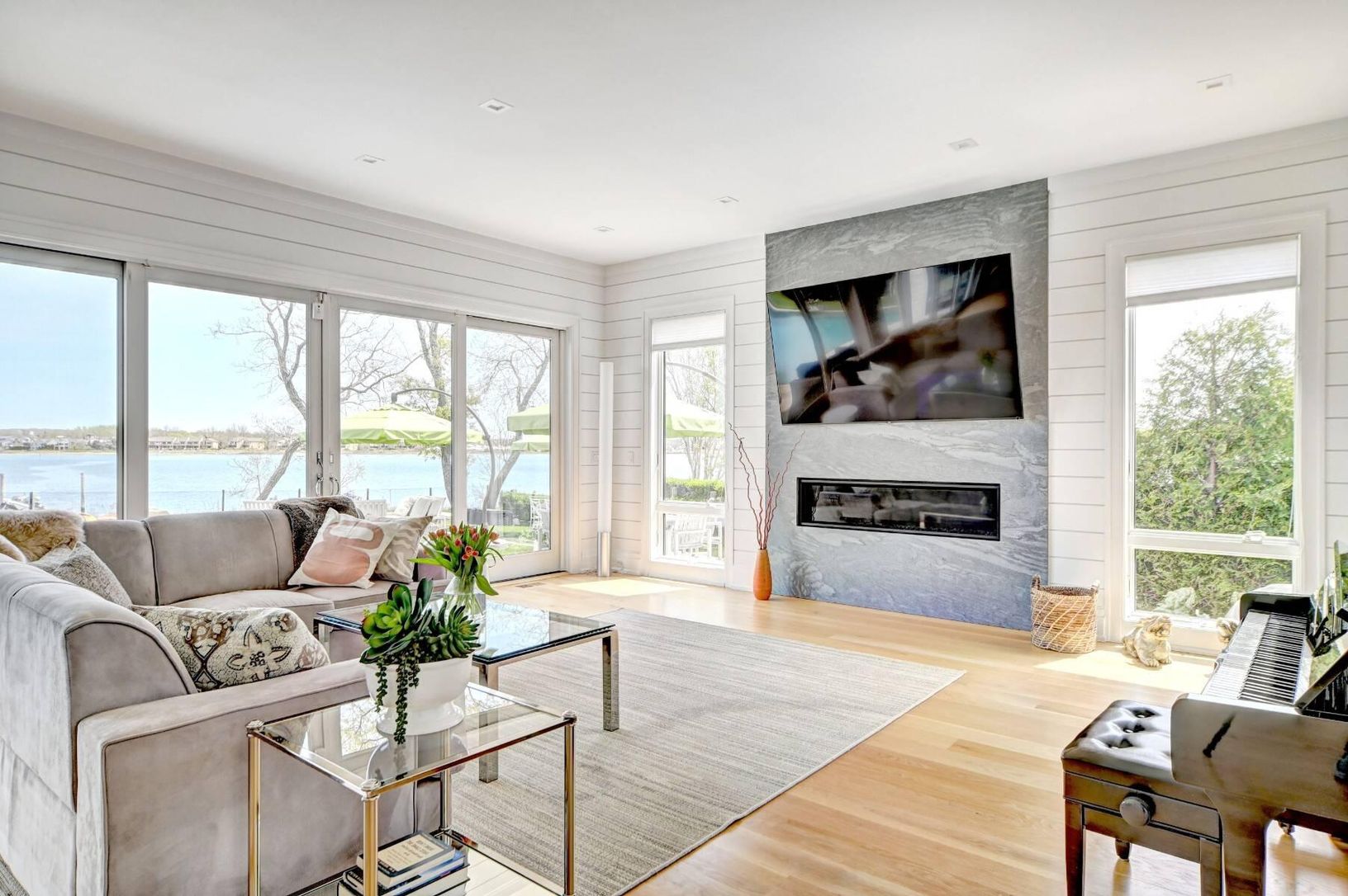MD-June $90,000; September $50,000; 2 Weeks $45,000 Set on a manicured 0.60+/- acre waterfront parcel on a secluded Bay Point peninsula with dramatic water views of Sag Harbor Village, this recently built and immaculately maintained, 6 bedroom, white shingle traditional, with a stylish, standing seam metal roof, offers a 115+/- foot deep water dock, waterside heated, gunite, salt water pool and spa, finished lower level, and an attached garage