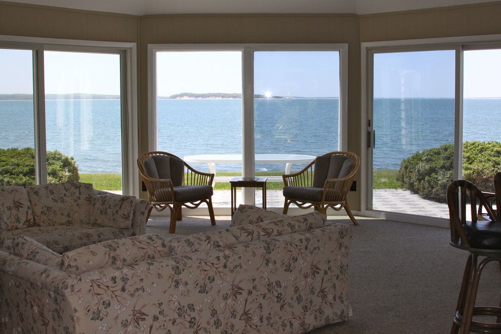 Incredible see-forever views from this 3 bedroom, 3 bath home overlooking Peconic Bay. A bright open living room with vaulted ceiling and stone fireplace, family-room, large master suite, kitchen and office all have access to the bay and beach. The two additional bedrooms and dining room have garden views. The house has waterside patios, southwest breezes, and a two car garage plus steps to a private beach. Swim in the sea, relax in the sun a