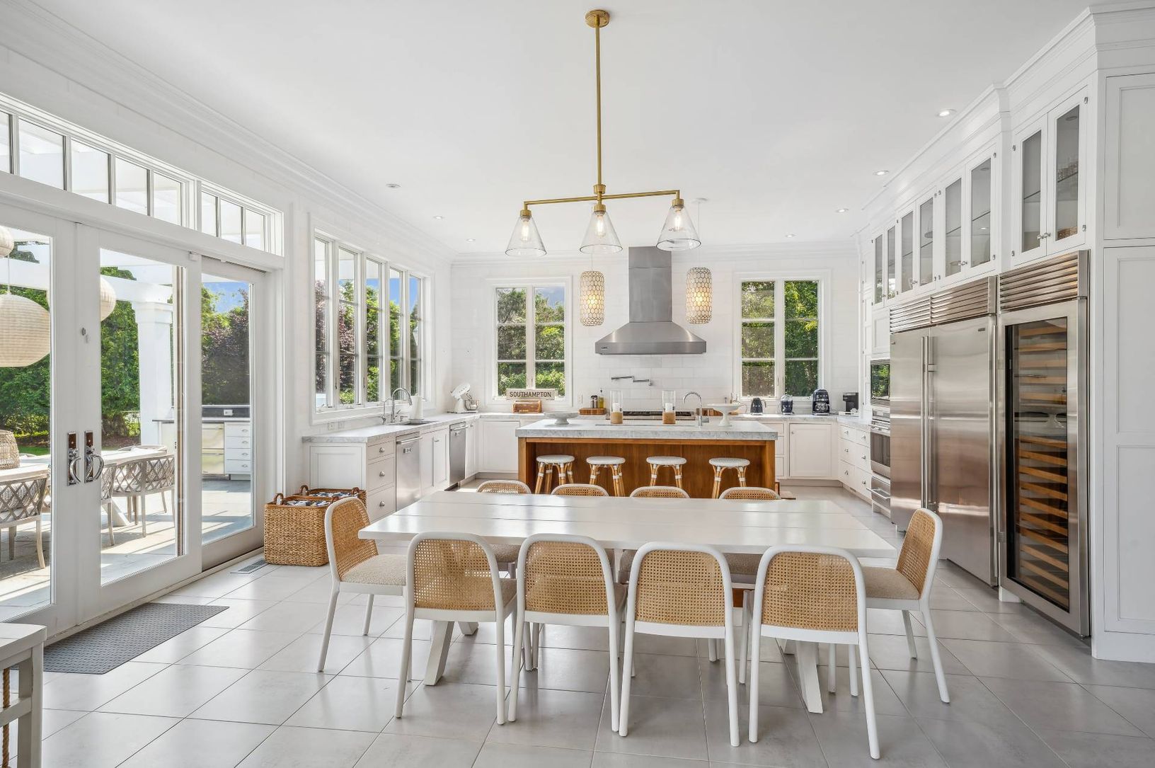 Magnificent 11,000 +/- square foot Gambrel with grand double entry gates and meticulously maintained estate gardens is a must see! The welcoming expansive foyer opens to a 2-story living room that includes a 22-foot glass wall with Nano-doors allowing the outside in. The living room, family room and Gourmet Kitchen open to the grand and expansive southern exposure terrace. This impeccable home has more than 7 spacious bedrooms, with the option