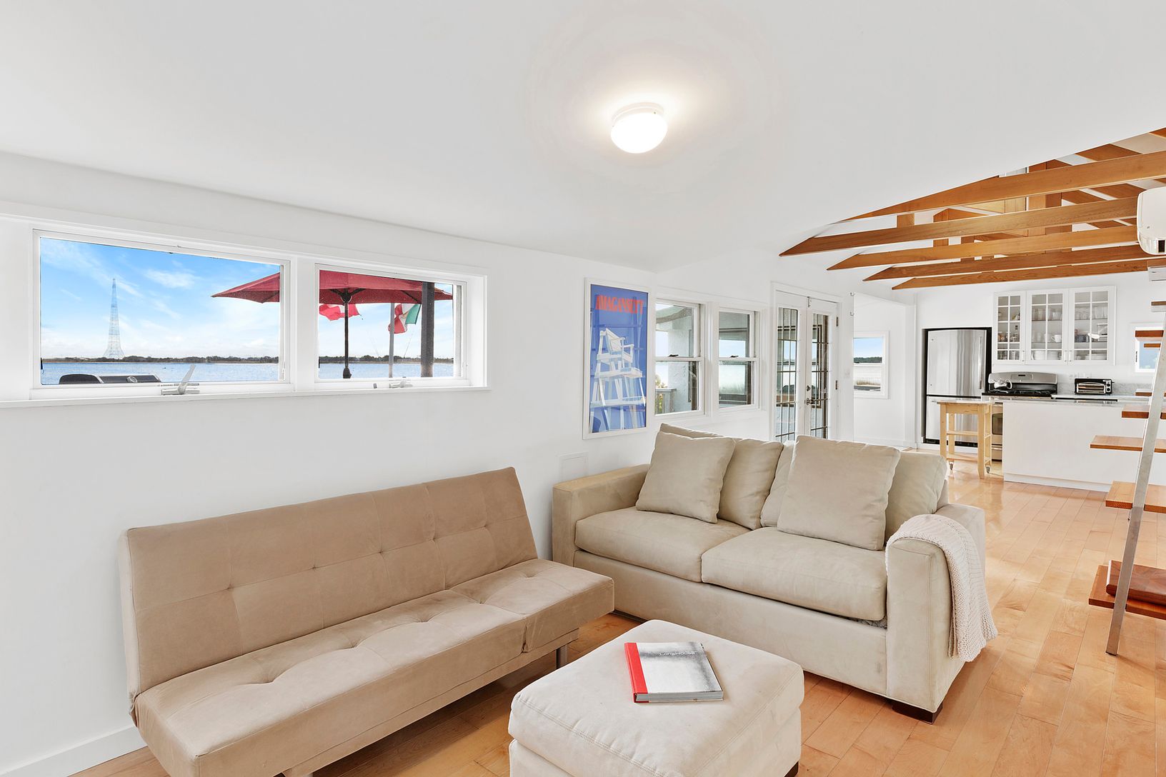 Amagansett waterfront rarely available in Lazy Point. This fully renovated beach cottage has two Bedrooms and one bathroom. The long line of windows from living to dining open up to the Napeague Harbor and your very own sandy beach. Make use of the spacious deck and watch the paddle boarders, kayakers, windsurfers and kiteboarders go by or join them. Simplicity at it's best.... and you do NOT have to be a resident of East Hampton to own this h