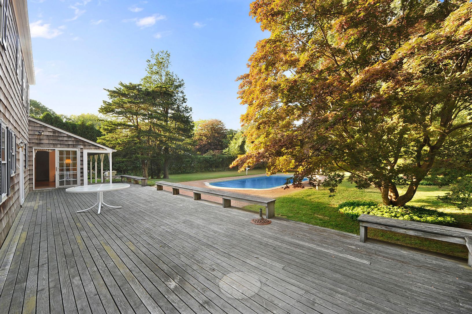 Charming and on one of the prettiest Lanes in the Village, this 4 bedroom, 2.5 bath Traditional home on .96 of an acre flag lot, with attached 2 car garage, large deck and heated gunite pool with mature landscaping. This is also an excellent opportunity to build a new 5,172 sq. ft. house with an 1,034 sq. ft. accessory structure if desired. All is conveniently located near to restaurants, shops, transportation and ocean beaches.