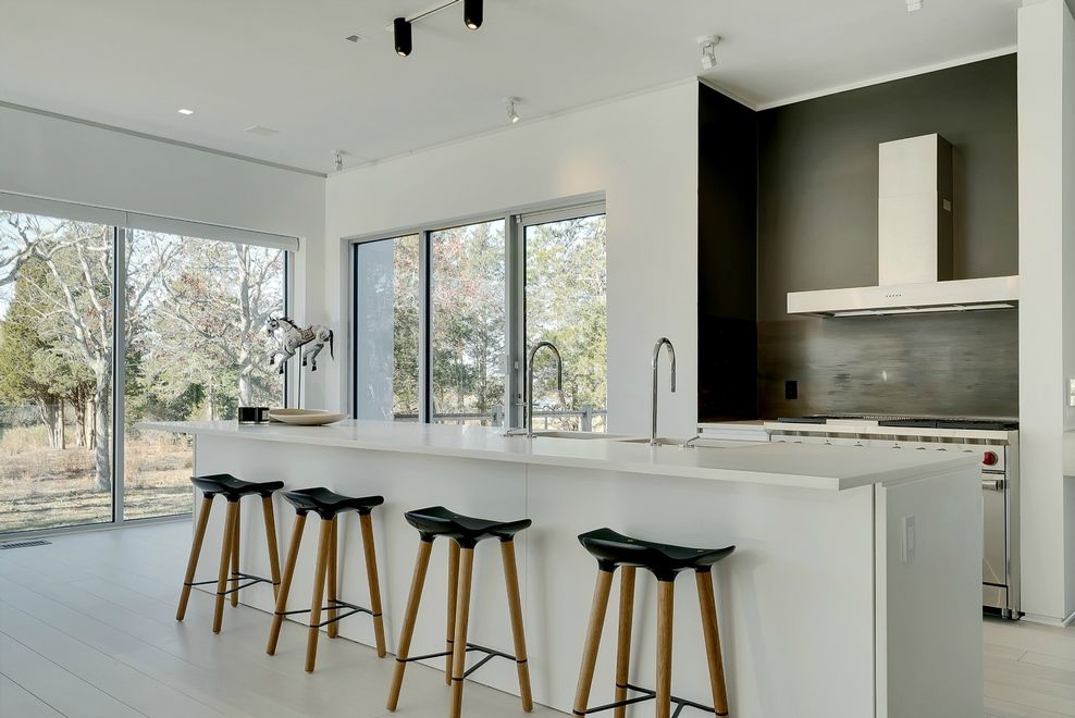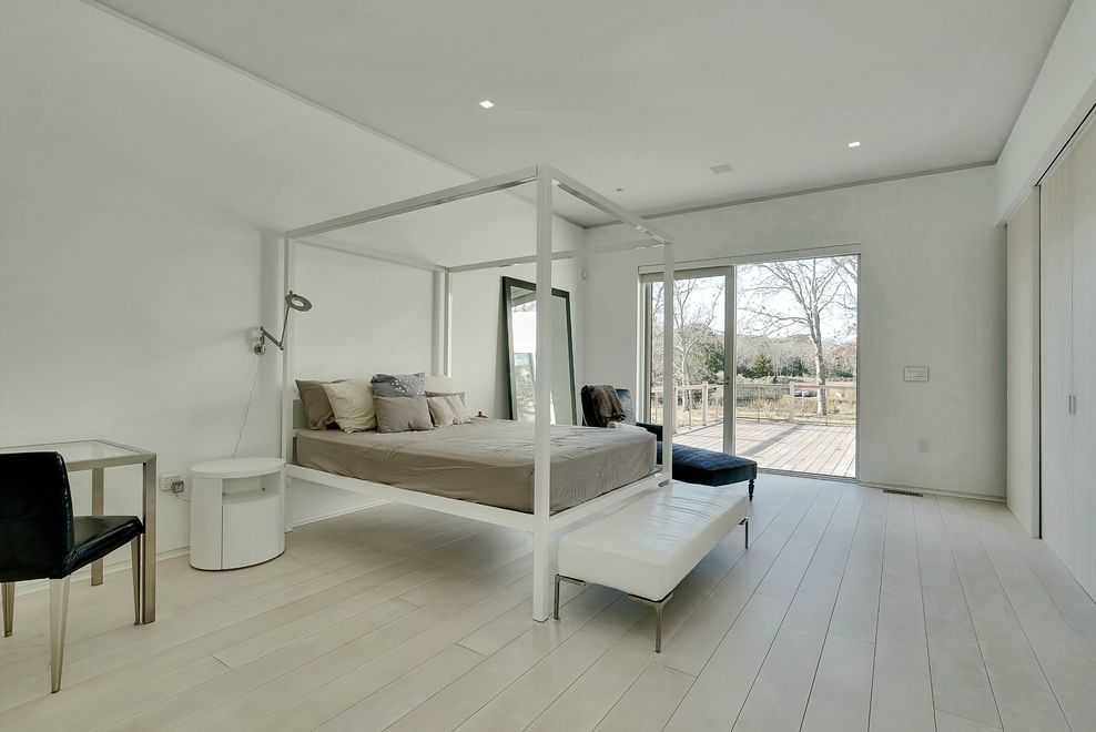 Sleek, New Construction, Modern home located in desirable Southampton Shores Beach Community. Set on 1.20 acres of waterfront, this 4,300+/- sq ft custom built Hamptons getaway is meticulously built, offering only the finest finishes, fixtures and fittings. The sprawling light filled, open floor plan with 10" ceilings, highlights the 8" bleached maple wood flooring throughout this gorgeous home overlooking Turtle Cove. The state of the art, It