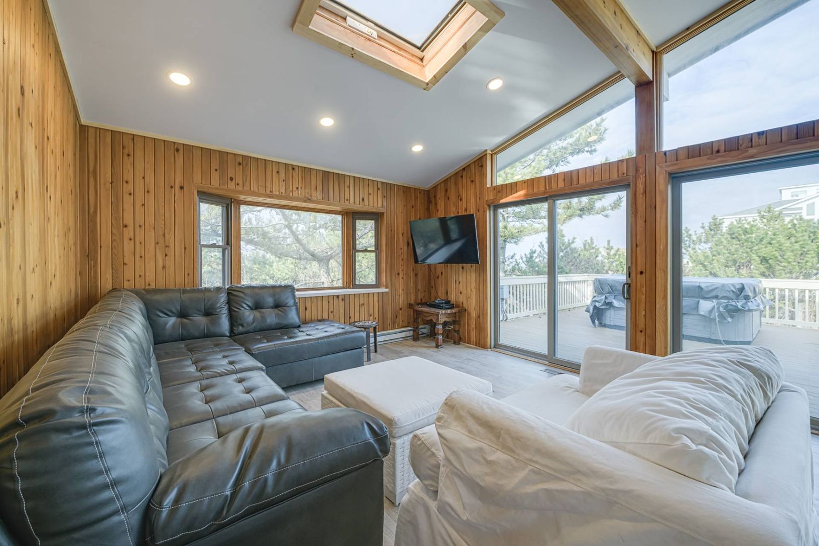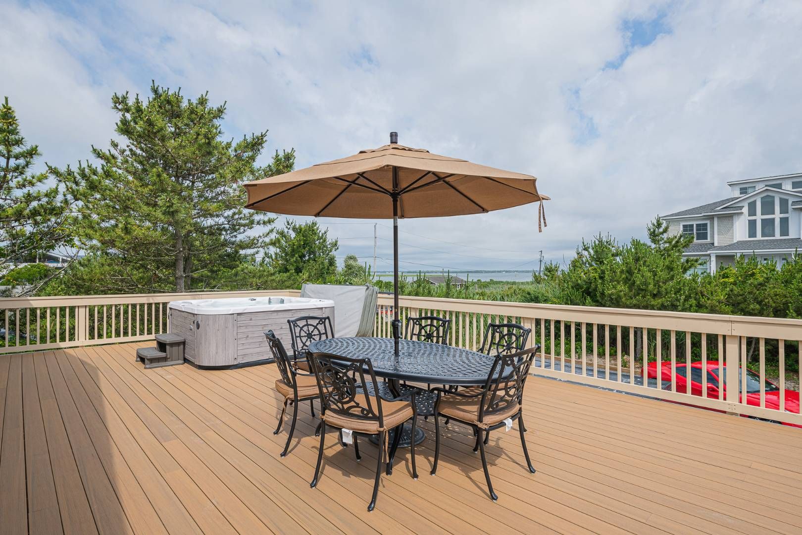 Easy summer living on Dune Road ~ Newly renovated adorable beach cottage with deeded bay and ocean access. 3 bedrooms, 2 baths, updated kitchen with stainless steel appliances, new floors throughout, new deck and hot tub. Perfect summer getaway with panoramic bay and ocean views not to be missed! Available short term.