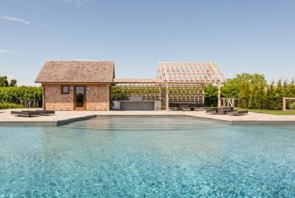 On over three acres deep in the heart of Sagaponack, this Jay Bialsky construction 8,000+/- sq. ft. residence with eight bedrooms, nine full and three half baths and four fireplaces is now complete. A long, winding driveway leads you to an exclusive enclave of homes which offer both privacy and close proximity to the ocean. Though traditional in style, the house is contemporized by numerous modern touches. Some of the property's indoor highlig