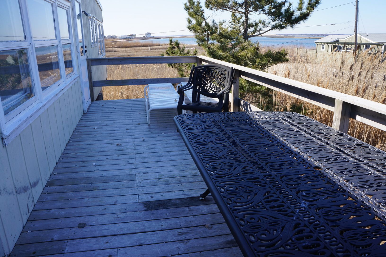 Enjoy this three bedroom, two bath home. This cottage has a cozy living room and superb bay front panoramic views. Own Sandy beach/boat launch and access to the ocean beachs. Upgraded kitchen & bath, washer & dryer and also and outdoor shower.