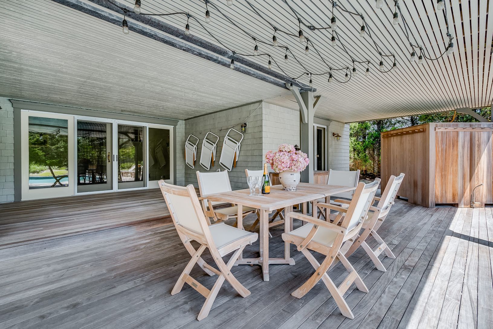This elegant, two-story, 5-bedroom home is located on Clinton Academy Lane, an extremely sought-after Amagansett private beach enclave south of Bluff Road, offering its residents exclusive beach access to a stretch of sand unreachable to most. The location couldn't be better: discreetly nestled in the Dunes directly across from the beach with a barefoot pathway from the pool to the ocean. This property features a very private, mahogany, backya