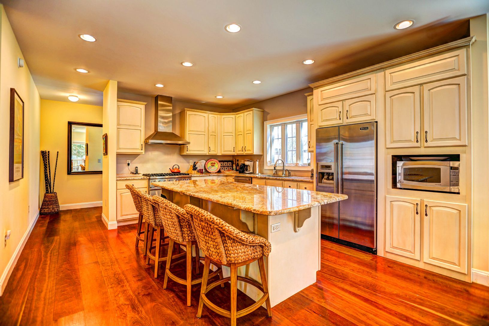 Enjoy your vacation from this conveniently located traditional home. Features include and open living area with fireplace, Dining area, up to date kitchen with stainless appliances, 5 bedrooms, 4 baths, and a finished lower level. The front and rear porches add to the charm. Steps to private community beach for an evening sunset! Picture perfect.