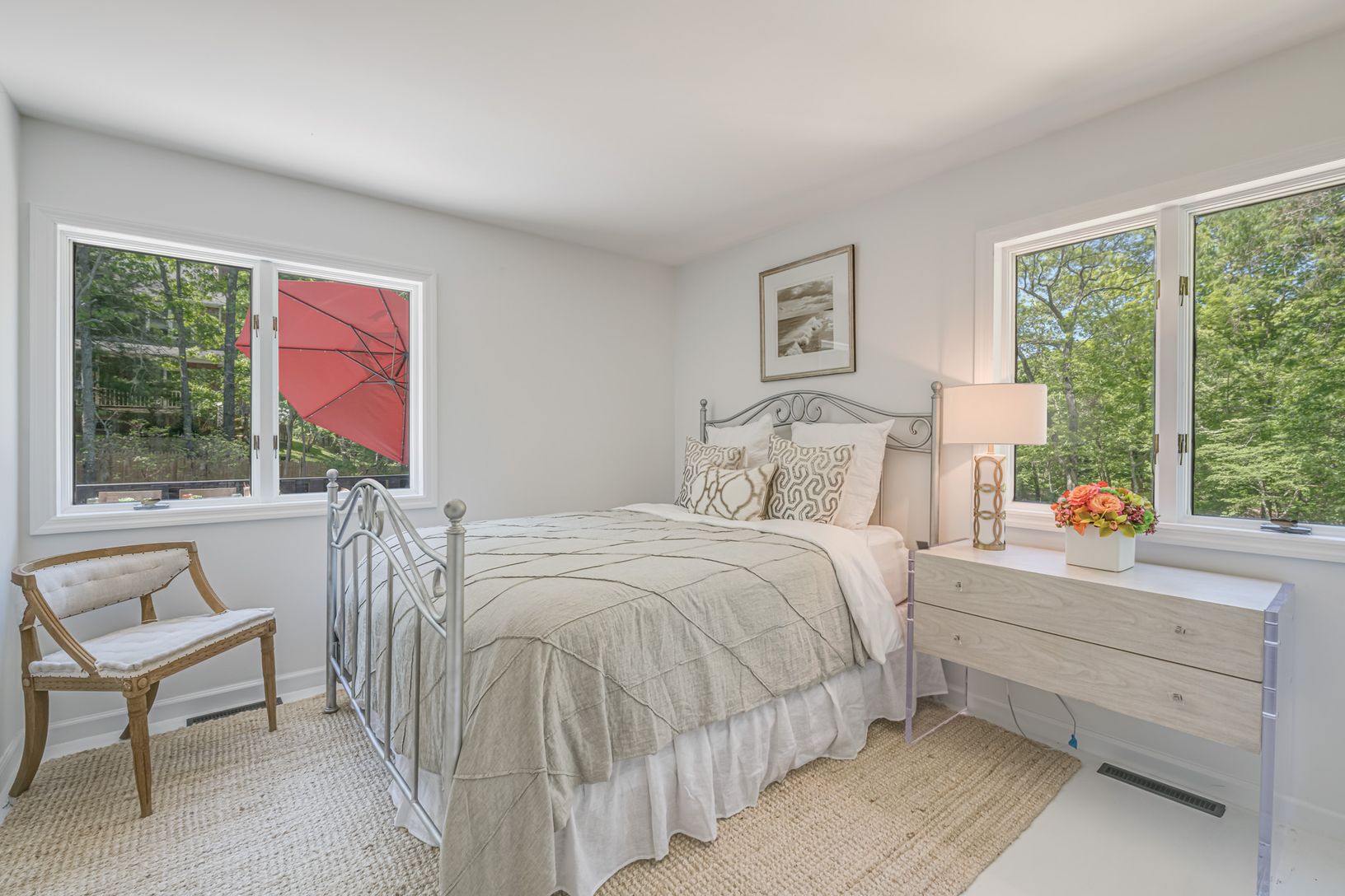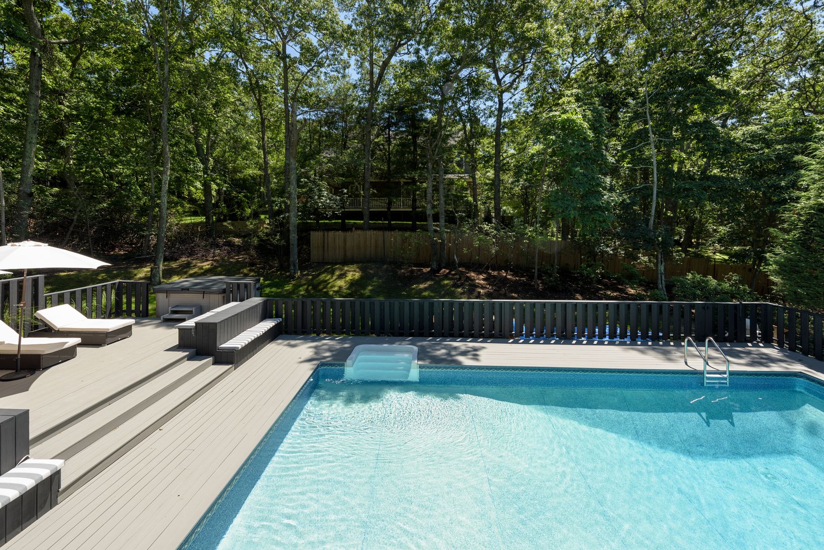 This new to market and freshly renovated designer home has Six bedrooms, Six bathrooms, heated vinyl pool and is centrally located in a highly desired neighborhood between Sag Harbor, Southampton and Bridgehampton. Main floor has an open floor plan with gourmet kitchen, dining room, den, junior master and two guest bedrooms, two full baths and sliders to the deck and pool. Upper level Master with private deck. Finished Lower Level has two ensu