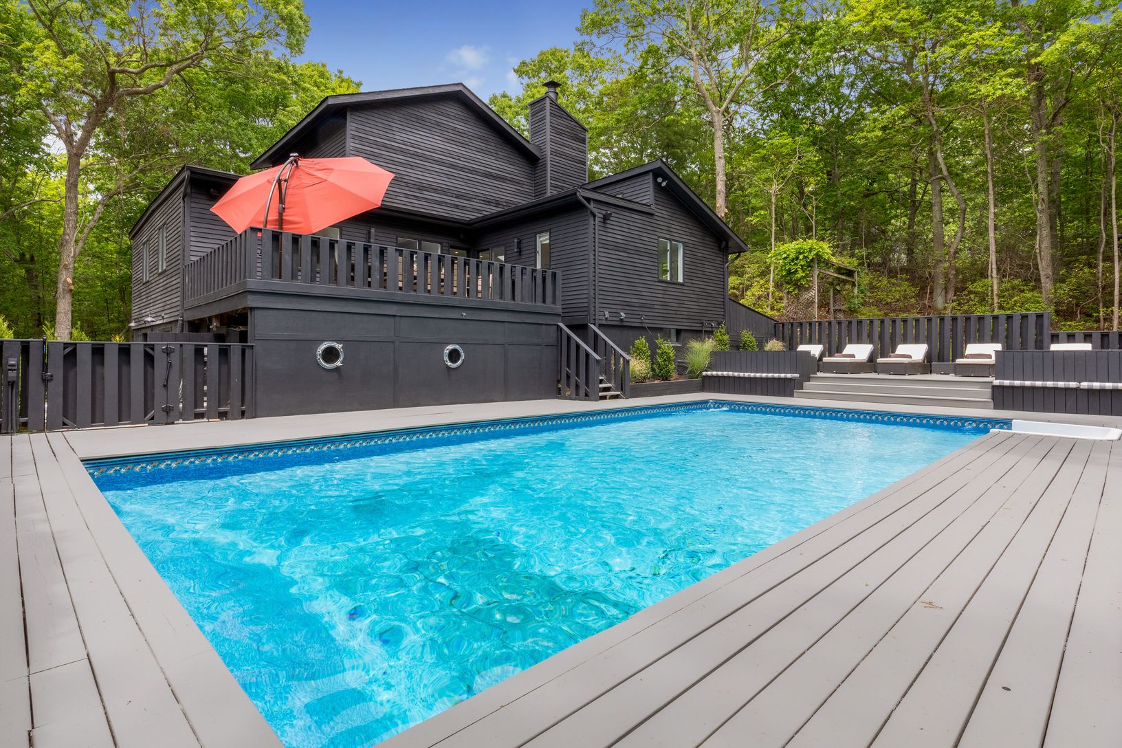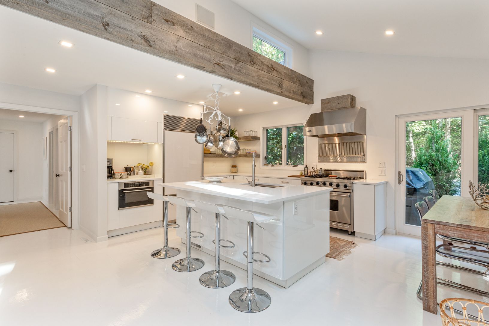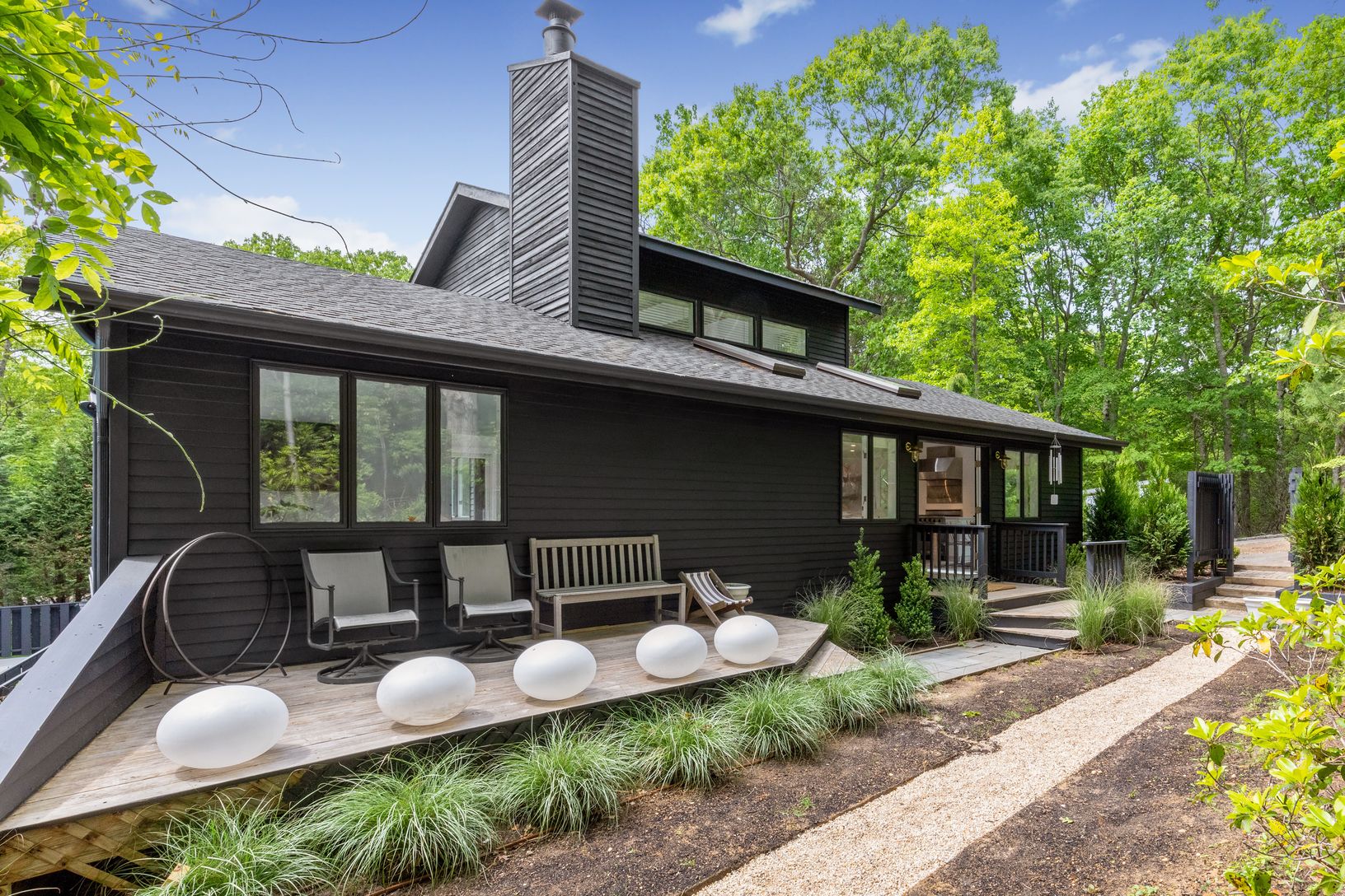 This newly renovated 3,000 sq ft home is now UBER chic. Designed and renovated by one of HGTV's own designers! This sophisticated and stylish re-do now boasts five bedrooms and five baths. The master bedroom is its own oasis with a private terrace and en-suite bath. A Viking chef’s kitchen opens into a great room with wood burning fireplace. Access to one of many outside entertaining areas is just off the kitchen. Multiple decks overlook the s