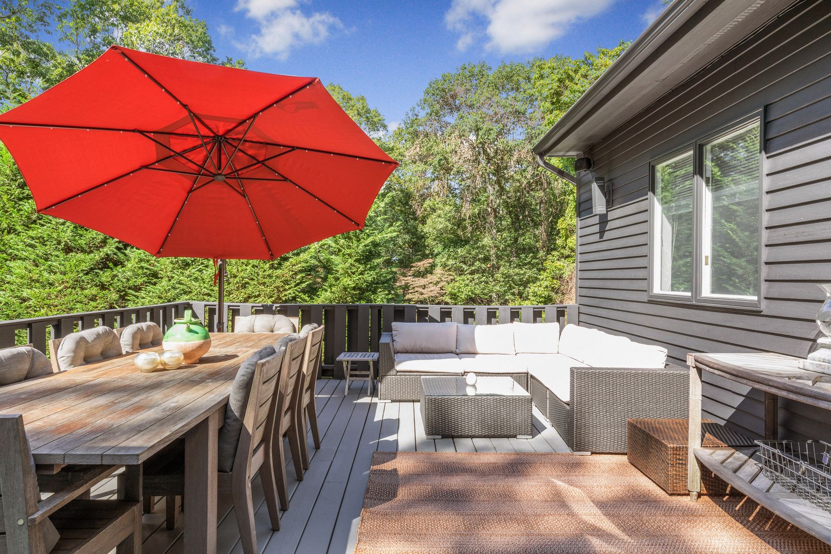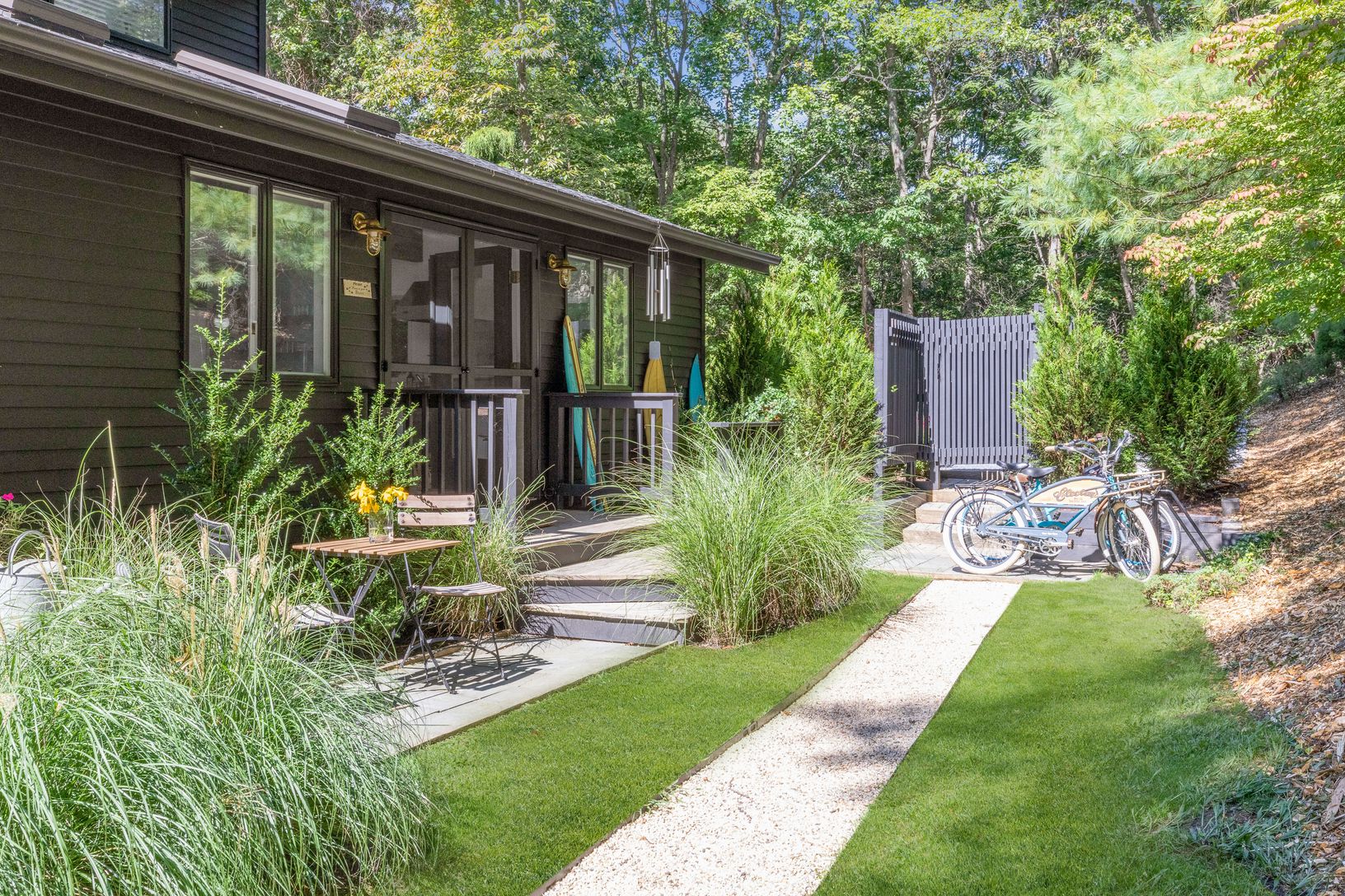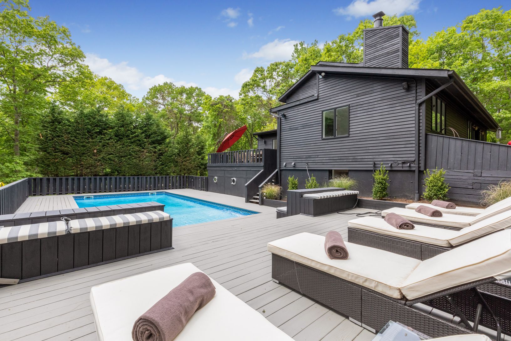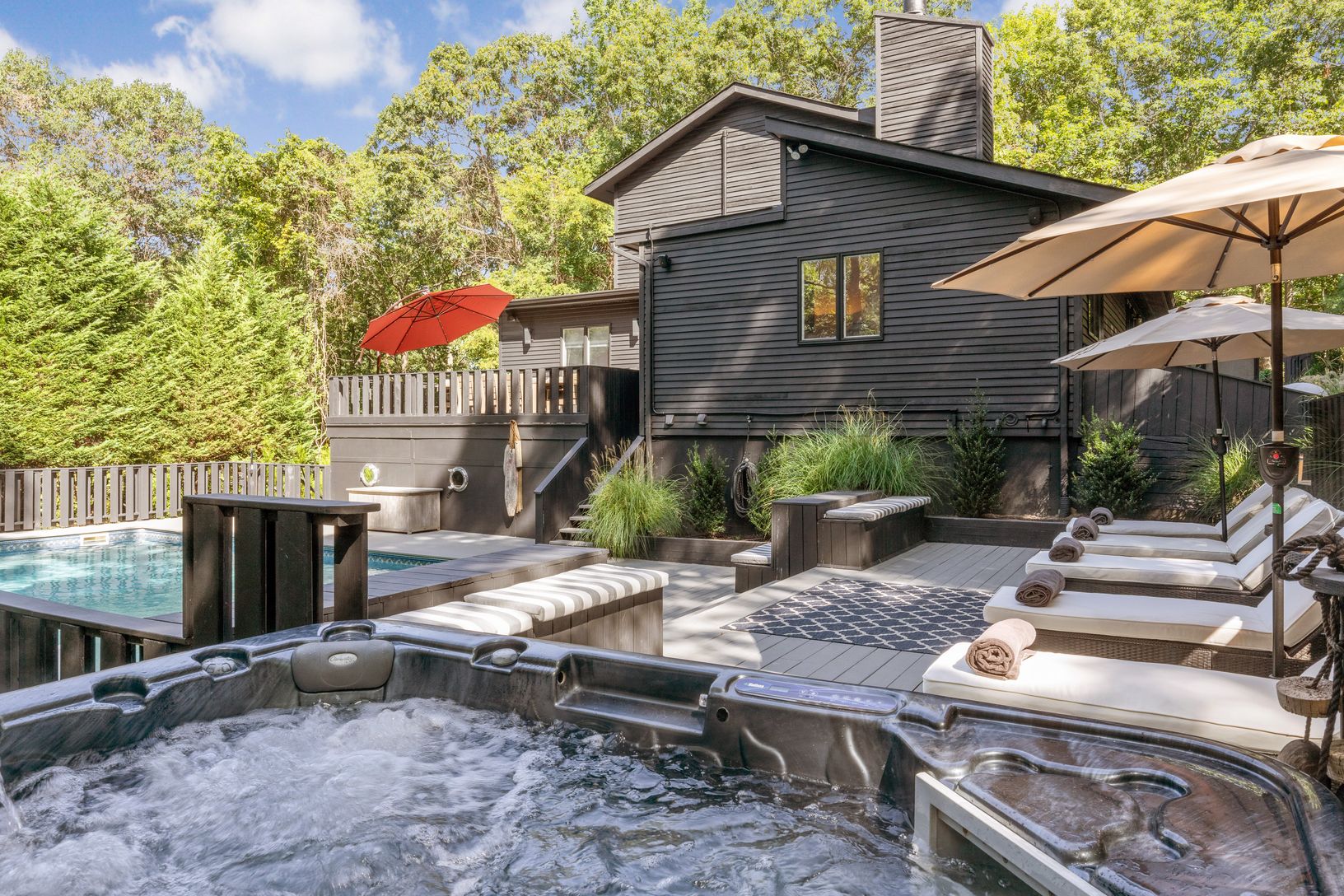 This newly renovated 3,000 sq ft home is now UBER chic. Designed and renovated by one of HGTV's own designers! This sophisticated and stylish re-do now boasts five bedrooms and five baths. The master bedroom is its own oasis with a private terrace and en-suite bath. A Viking chef’s kitchen opens into a great room with wood burning fireplace. Access to one of many outside entertaining areas is just off the kitchen. Multiple decks overlook the s