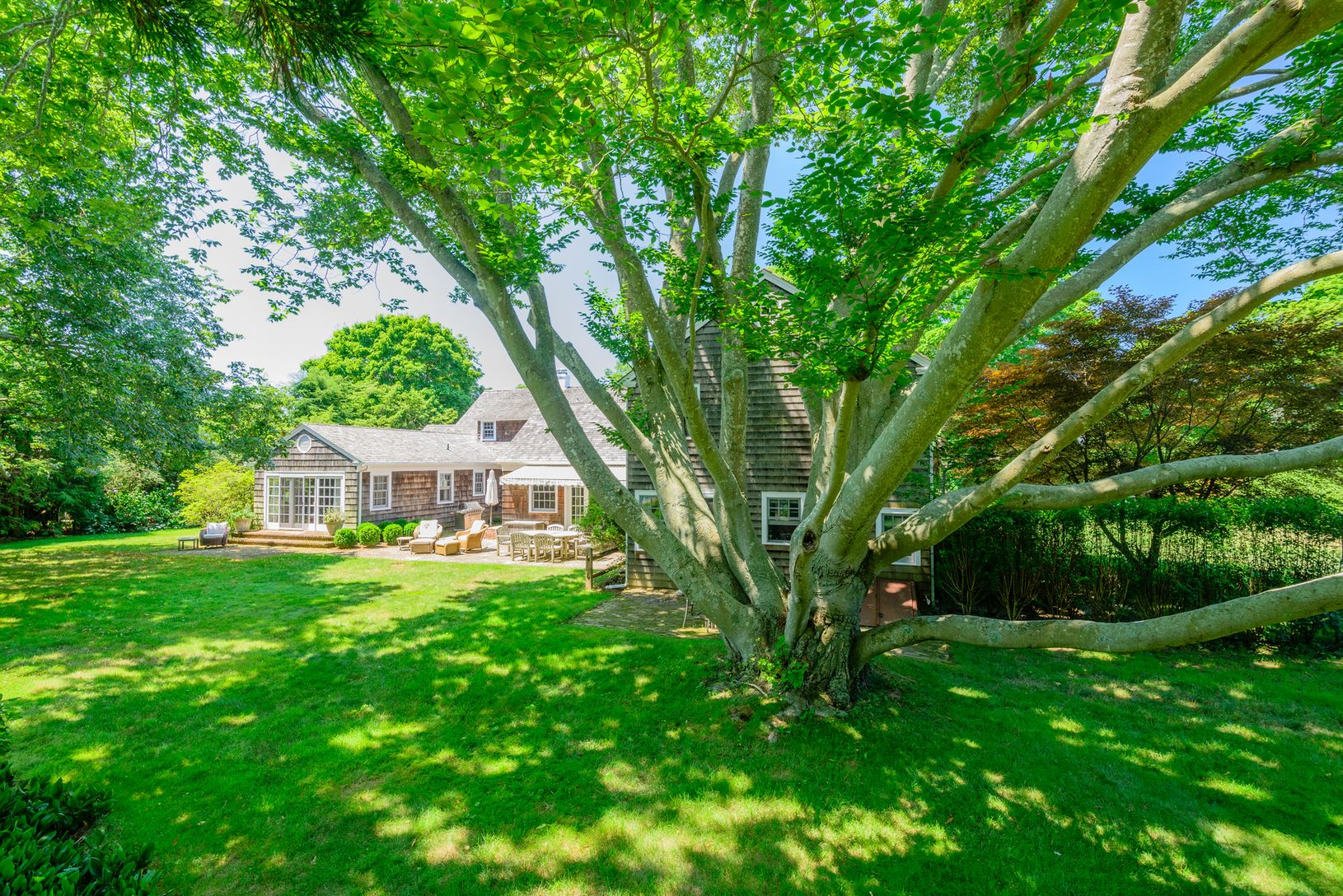 This 2 story shingled style, renovated classic cottage is designed for inviting country living with gracious living spaces, including superb chef's kitchen with adjoining large great room/dining area with fireplace and vaulted ceiling, main floor master suite opening to gardens, 2 second floor guest bedrooms, 3 full baths and powder room and lovely extensive guest quarters with 3 bedrooms, 2 baths. Designed for seamless entertaining inside an