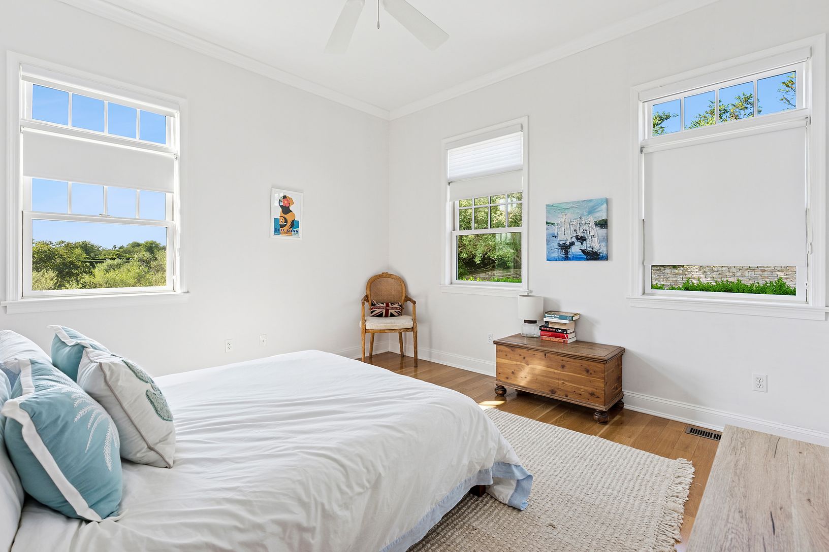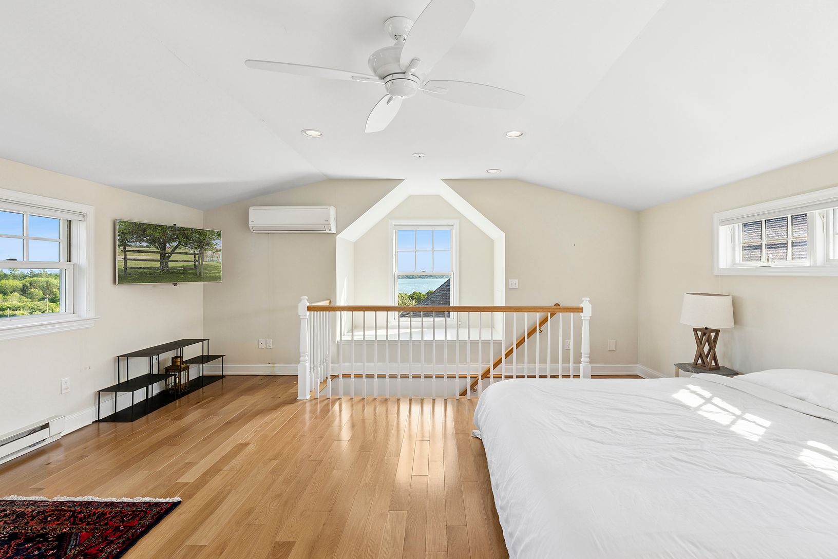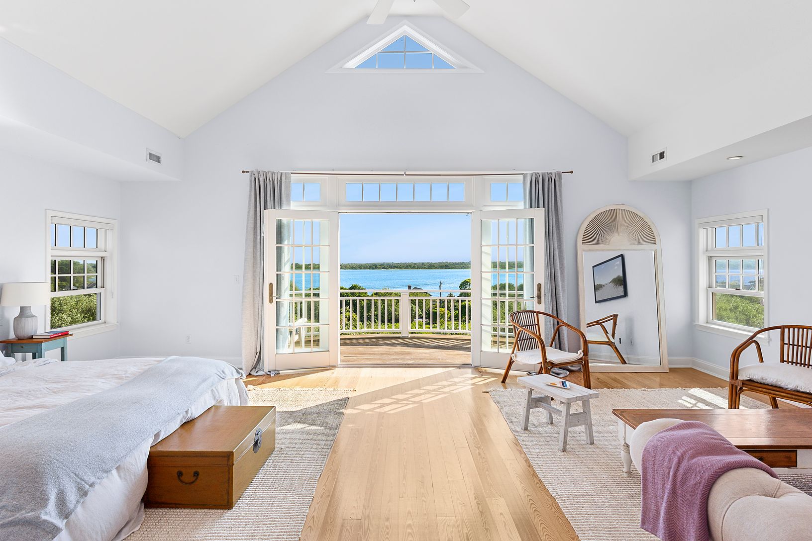 Nestled in one of Montauk's most scenic locations, 83 Startop Drive offers an unparalleled retreat with breathtaking sunset views over Lake Montauk. This private escape blends luxury, comfort, and natural beauty. With undeveloped land surrounding the property and a deer fence ensuring seclusion, this home is designed for relaxation and connection to nature. The layout provides for guests to enjoy their own wing with 4 bedrooms on the first flo