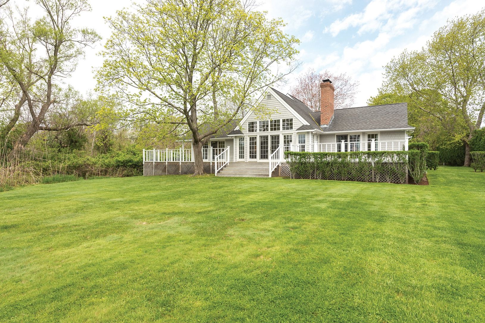 Pristine three bedroom, two bathroom one level traditional located south of the highway in Southampton Village on a bucolic .75+/- parcel. Soaring cathedral ceilinged living room area with a virtual wall of glass facing the southern exposure bringing in tremendous light, the beauty of the backyard, and views of Heady Creek. The back of the house also features 1,100+/- sq. ft. of mahogany decking, spectacular for morning coffee, midday lunch, a