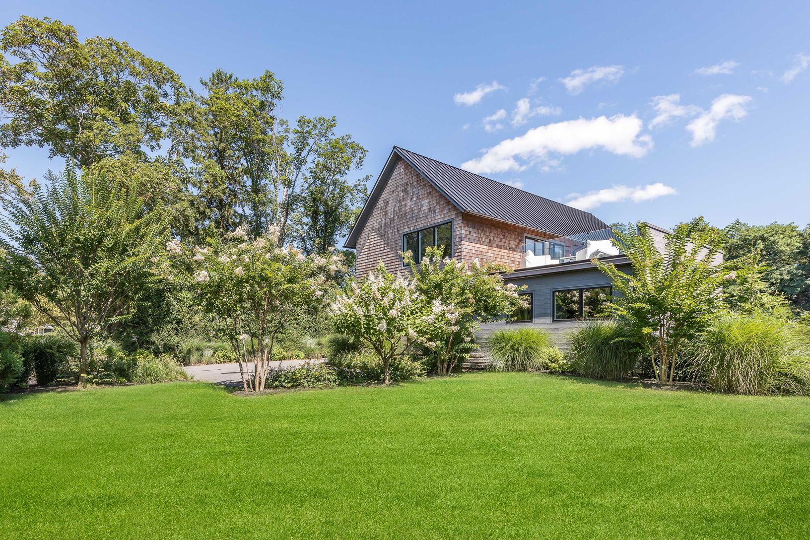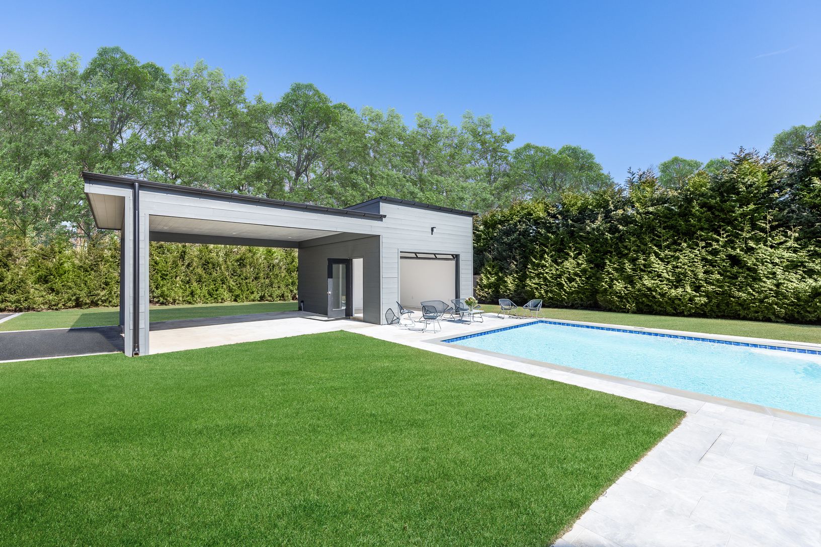 This sensational new construction in Southampton Village exemplifies A Miami Style modern for "Hamptons living" and is ready for immediate occupancy. Situated on just over a one-half acre, this beautiful 4-bedroom, four-and-a-half bathroom home offers 4,000+ square feet of living space, a heated pool and spa, a pool house pavilion, covered carport, and mature landscaping. With four terraces in tota
