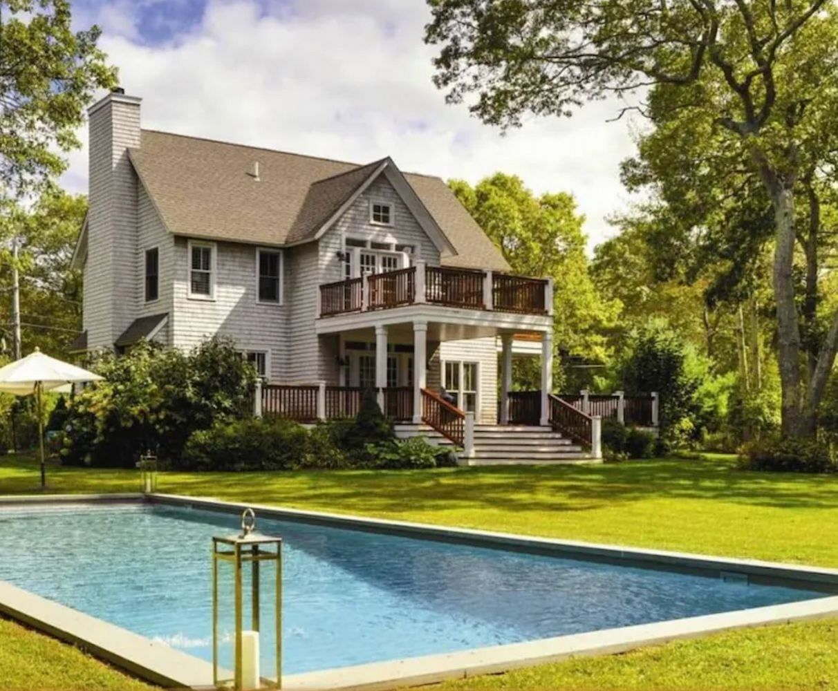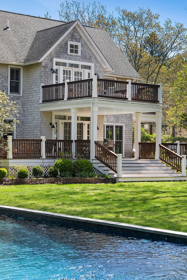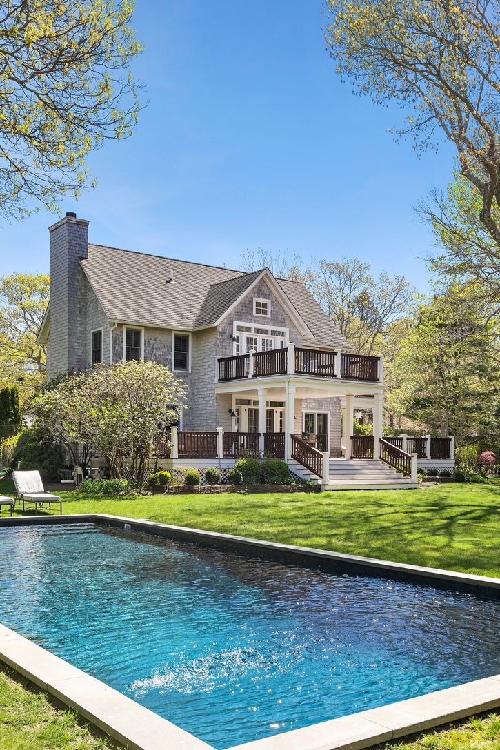 Beautifully designed, centrally located Bridgehampton retreat near beaches, dining, all. This serene three-bedroom home features a stylish sweeping staircase and top-of-the-line cook's kitchen, marble baths and a sun-splashed open layout. Four sets of French doors lead to 1,000 square feet of mahogany decking overlooking the 18-by-44 heated pool, private fenced backyard and lovely plantings on this half-acre lot. This is a terrific home for en