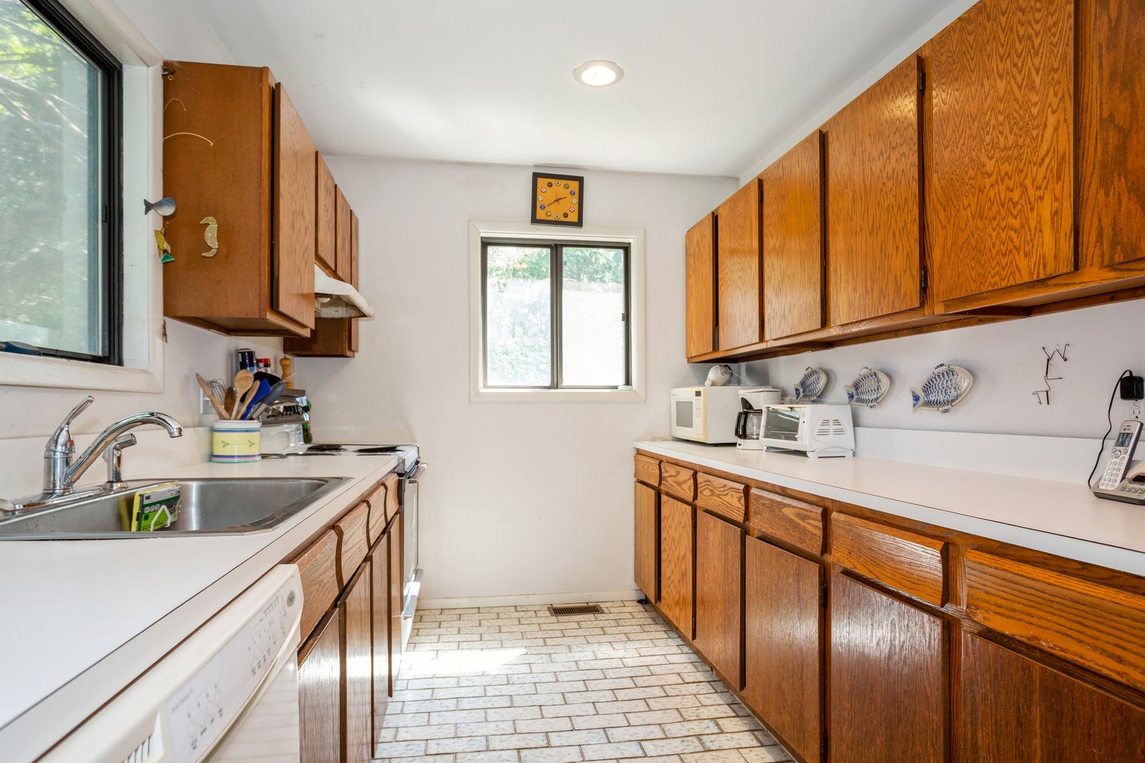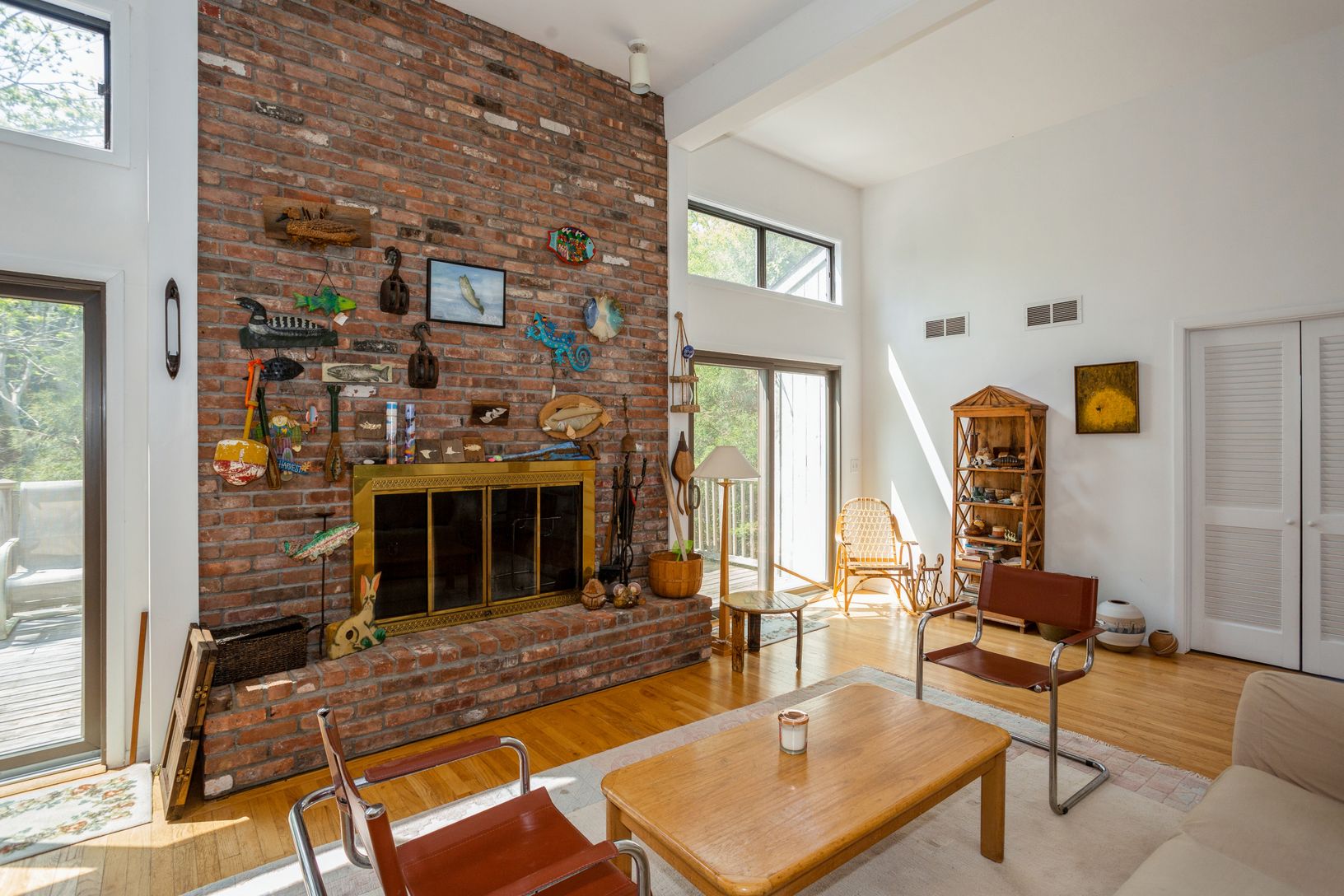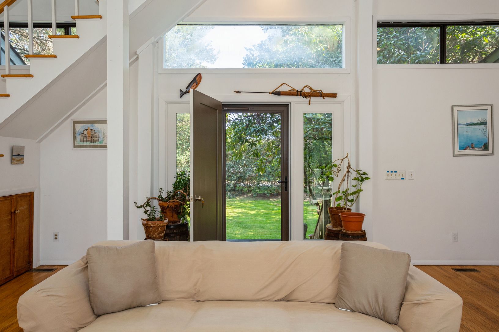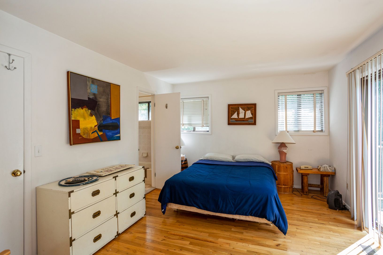 South-of-the-highway in Water Mill .This charming home is set in a Waterfront community that has access to Mecox Bay/Calf Creek. It has four bedrooms, three baths that includes a double-height living room. In addition to two decks to enjoy the warm summer breezes, you are just a few yards from Mecox Bay/Calf Creek. Included are Kayaks for access to the bay and bikes - or just set out to enjoy an evening stroll Central air and heat for downst