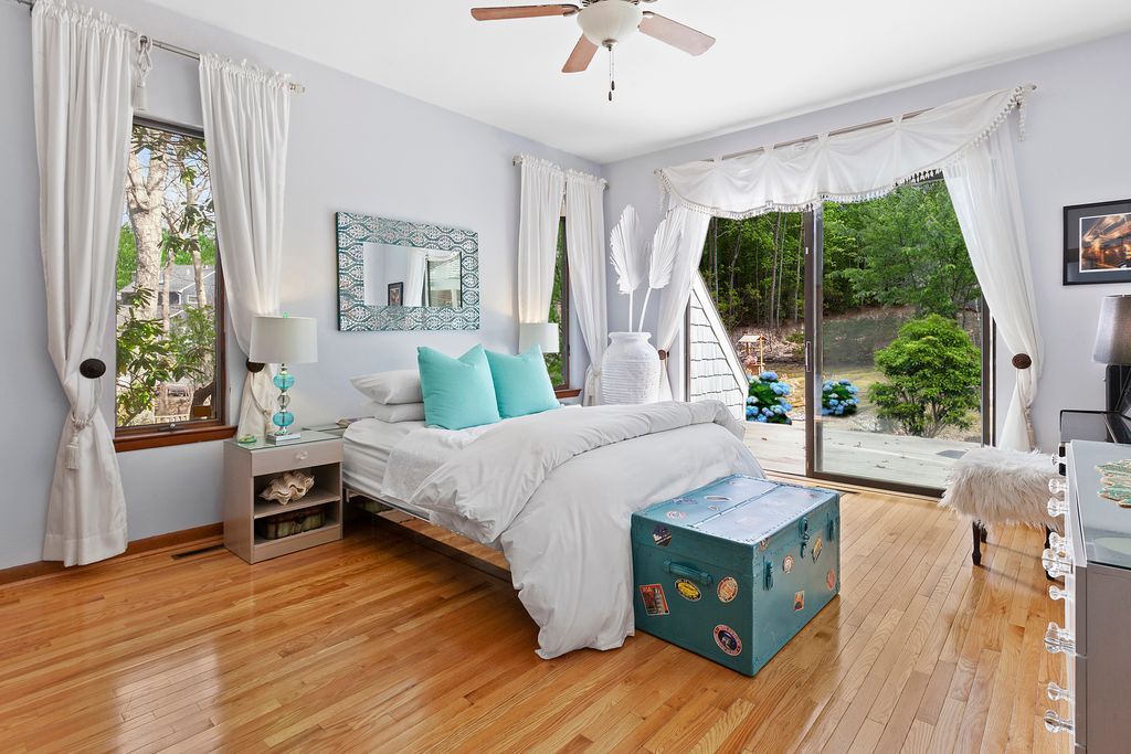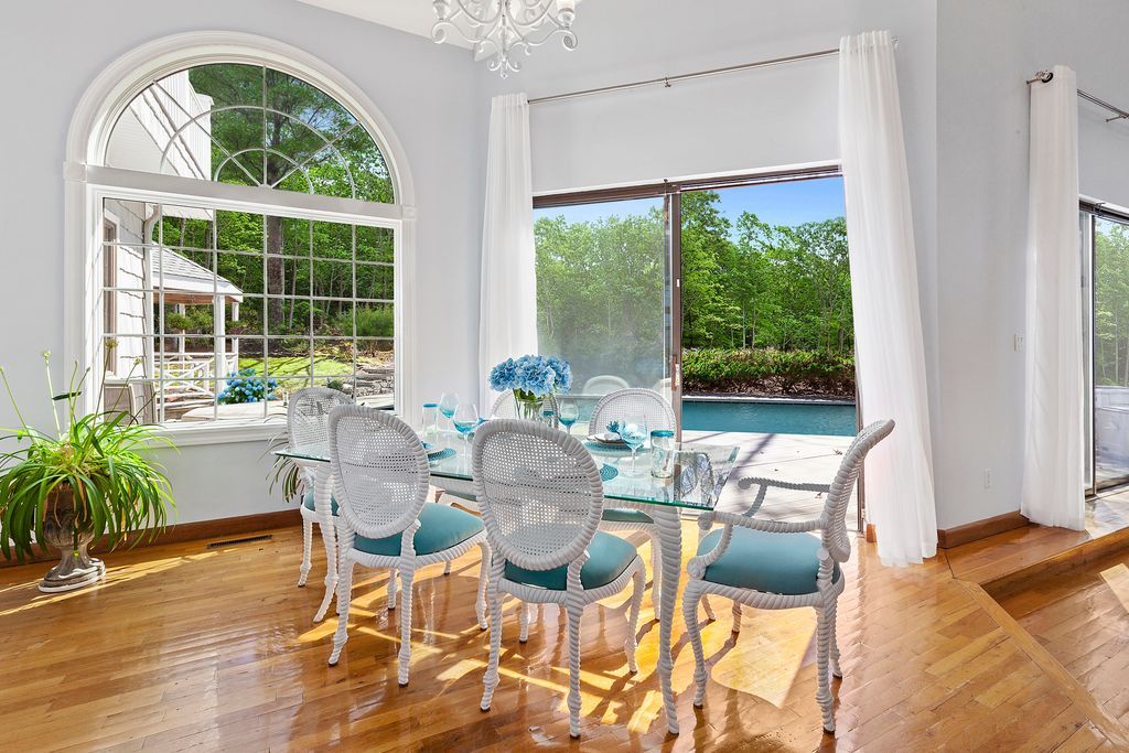 Spend your summer in this exquisite contemporary two-story home mere moments from Long Beach. This 3,000 sf, three bedroom, 3.5 bath home is situated on 1.14 acre of property in a secluded neighborhood, featuring wonderful jogging and hiking trails through the scenic woods. The thoughtful two-story open floor plan is ideal for entertaining with light-filled living areas. The great room features 25 ft ceilings, dining room, palladium windows, l