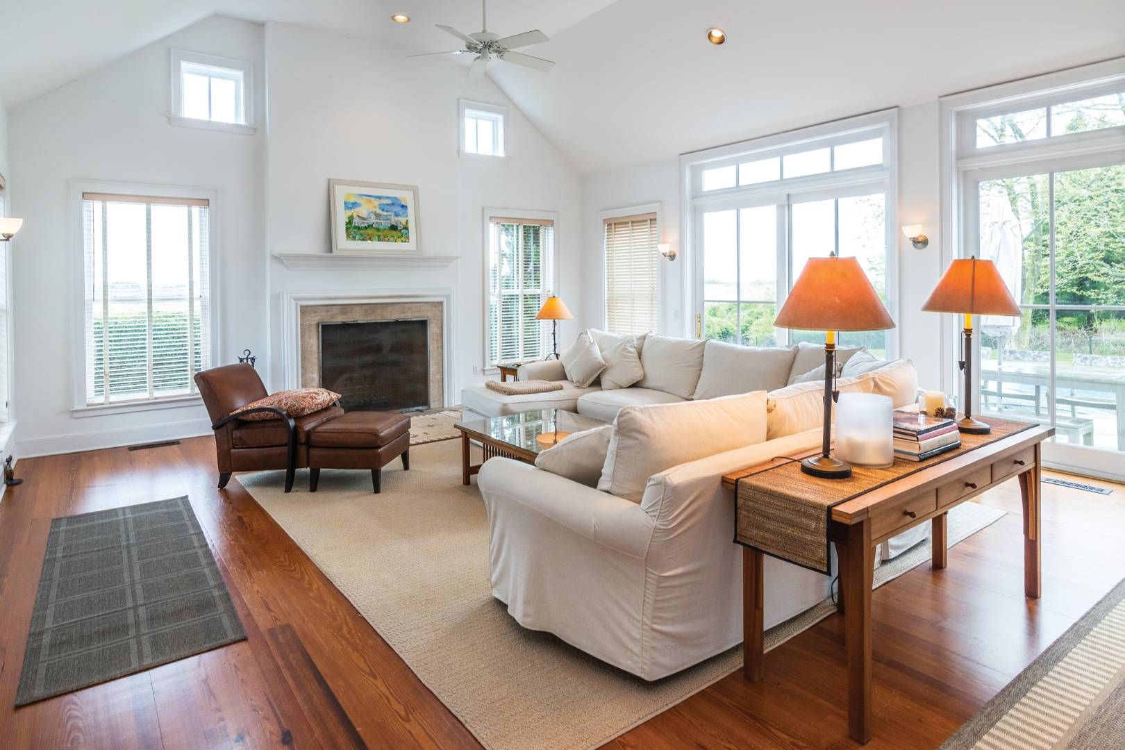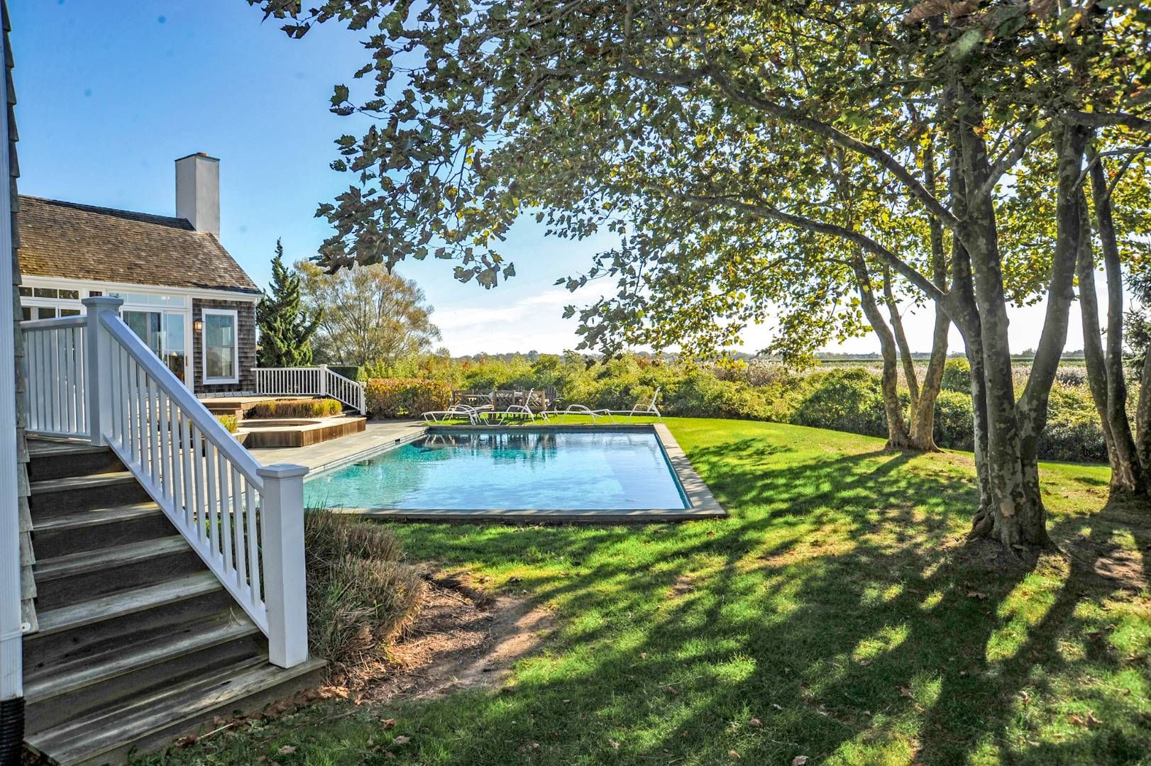 Experience the serenity and privacy of this impeccably finished waterfront home, where you will enjoy panoramic views over farm fields and pristine waterfront reserve, along with a private boardwalk to an inlet off Mecox Bay. Situated on 1.25 acres the home provides 4 bedrooms and 4 full baths in 4,000+/- sq. ft. Abundant large windows throughout the home let the natural light pour in, and a heated gunite pool and spa overlook the water. The l