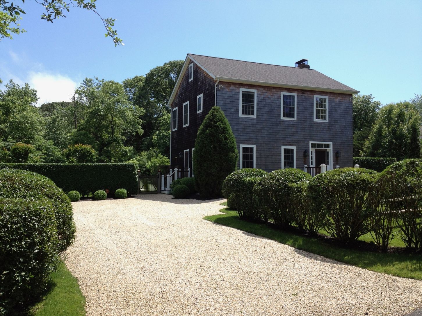 This picturesque property, located on a quiet Southampton road, offers the graceful elegance of a larger estate in a comfortable weekend home. Situated on 1.7+/- private, professionally landscaped acres, the pristine Federal-style house combines a classic aesthetic with the floorplan and conveniences designed for the modern lifestyle.