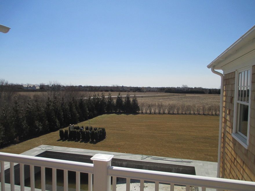 This home scores on many points. First, it's new construction. Second, the ultra convenient location just over the Southampton Village line. Third, the property abuts a farm field reserve with far reaching views. The flat, open property is very usable and the south facing gunite pool and back of the house get sun all day long. Fourth is the design and execution of the house. There's 6,000 nicely detailed square feet on three levels. Expansive