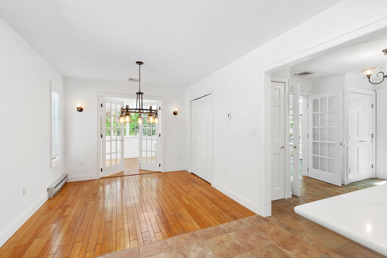 Floors: Hardwood, Tile