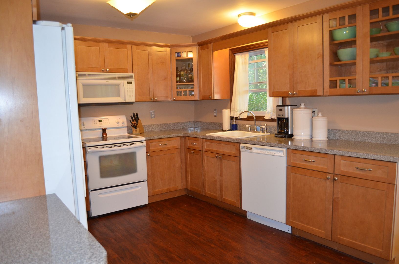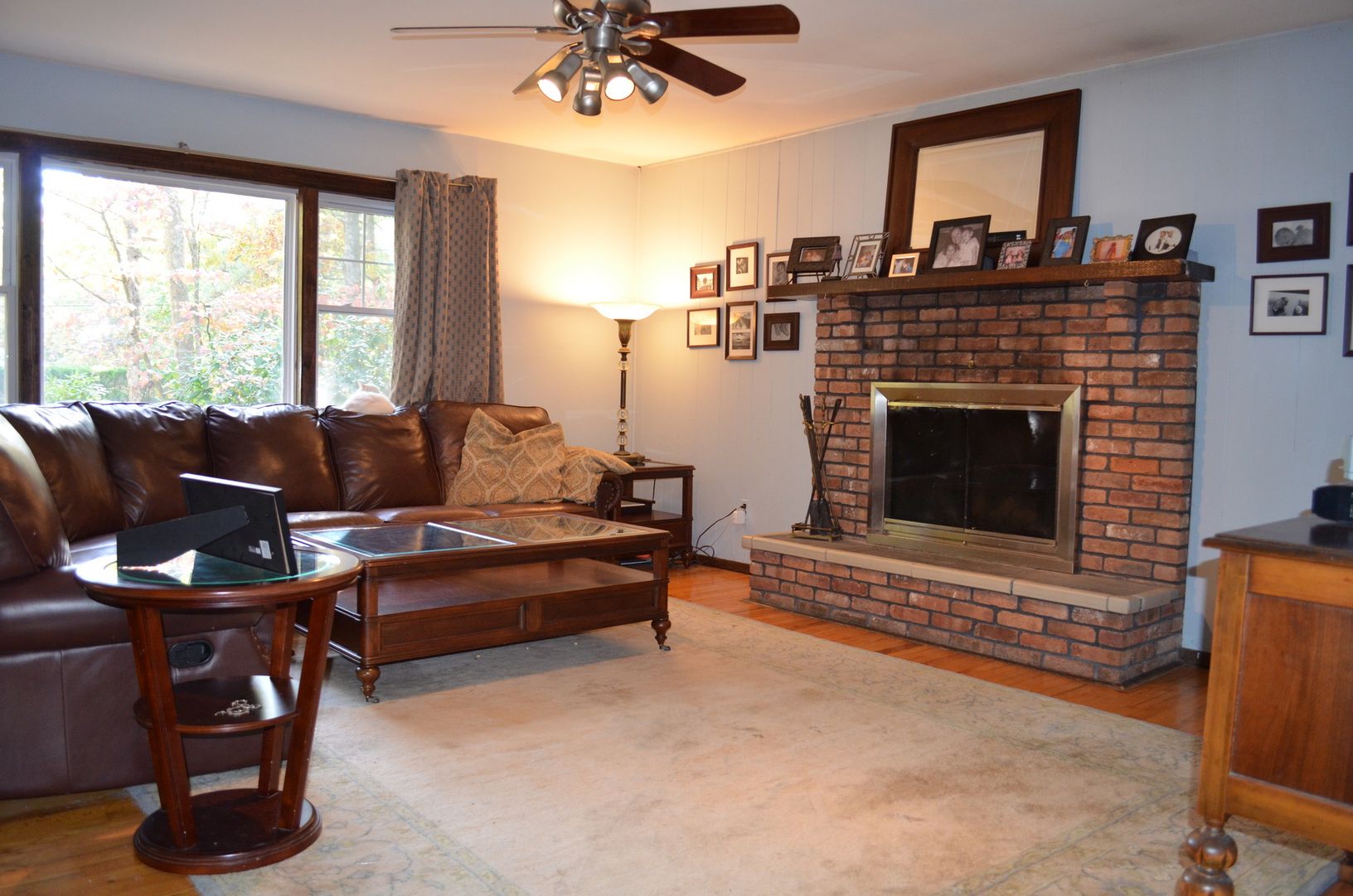 Fabulous Buy Calverton Woods Country Ranch Home. Priced to Sell 3 Bedroom, 2 Full Bath on shy Half Acre. All Hardwood Floors, Cozy Brick Fireplace, Large Rear Deck for Entertaining. Private Road for Safe Bike Riding, Borders Preserved Parkland.
