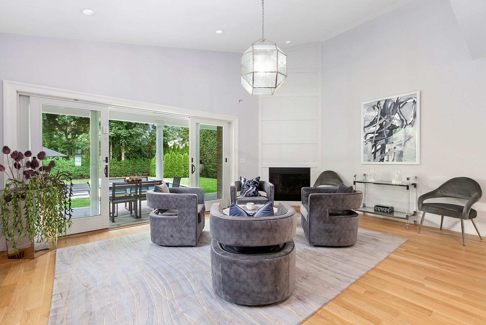 Come home to this fabulously appointed, brand new four-bedroom, four-and-one-half bath Hamptons retreat thoughtfully designed by Greg McKenzie Design. Located on a quiet village street with easy access to ocean and village center. Kick back in this designer home featuring a gourmet kitchen, formal dining room, living room, an expansive sun-filled great room with fireplace that leads out to a covered loggia, which also features an additional fi