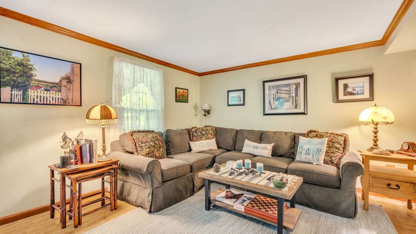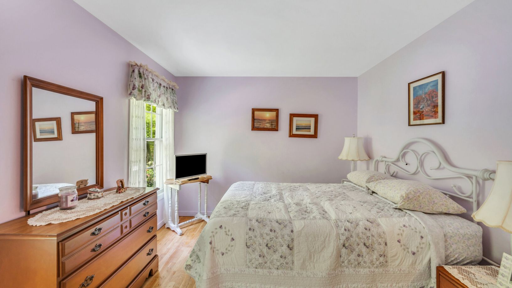 Enjoy a relaxing getaway at this charming farmhouse situated on a well-landscaped acre. This retreat is located across from a 50-acre nature preserve and offers effortless outdoor-indoor living. As you drive up to this serene home, you will notice the covered front porch with two rocking chairs, perfect for relishing