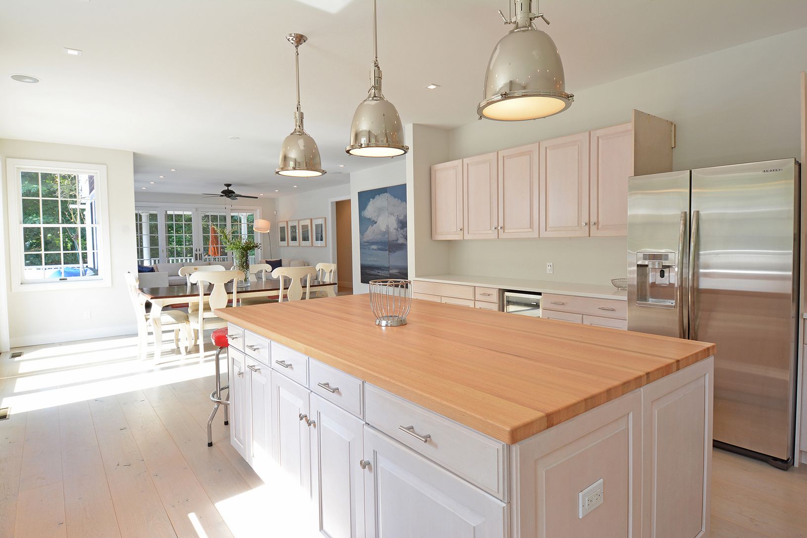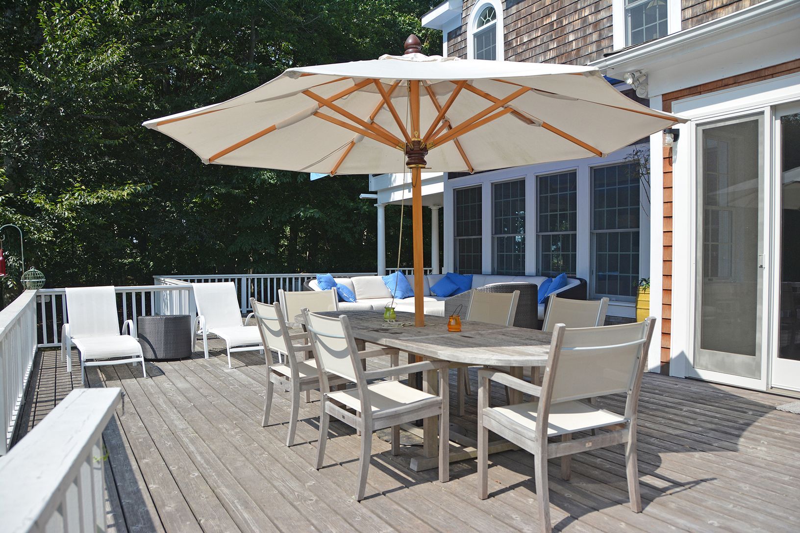 Beautiful 5 BR Traditional 3,500 +/- square foot home, totally renovated 2013, in park like setting is both tranquil and peaceful. Bleached hardwood floors, brand new kitchen, 3 king size bedrooms, and 2 twin bedrooms. Living room, dining room and kitchen overlook deck, pool and great lawn. You will also find a TV room with fireplace, and Piano/Playroom and Nanny's quarters all on the first floor along with a great entry foyer. Master suite is