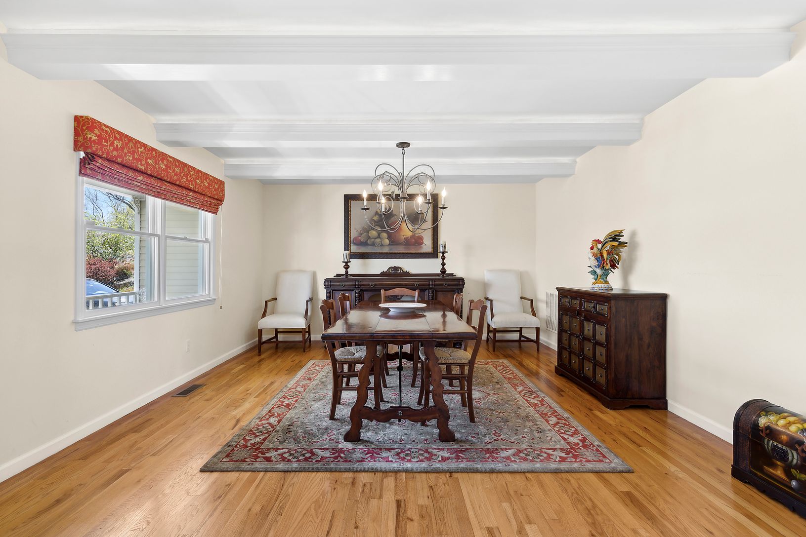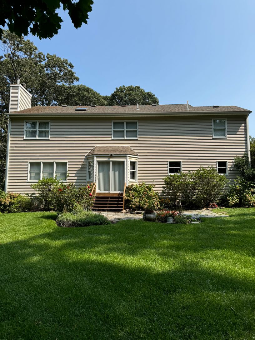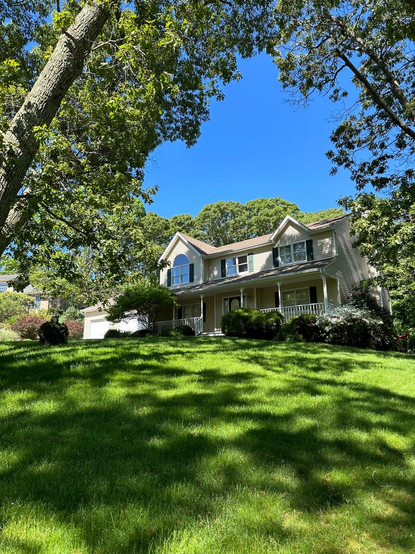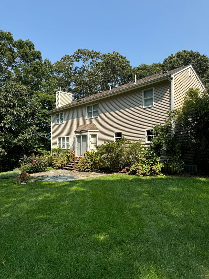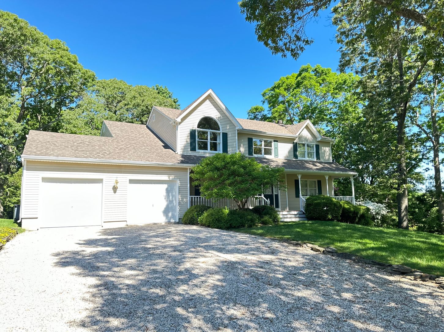 Nestled on a quiet secluded road in the coveted community of Jamesport, lies 85 Manor Lane. This well maintained and updated colonial style home boasts a gracious foyer, full downstairs bath, separate dining room, living room/great room combination with a wood-burning fireplace, a spacious eat-in kitchen, with windows galore and a sliding door which leads to a vast garden and wooded area. A gracious staircase takes one up to a primary bedroom