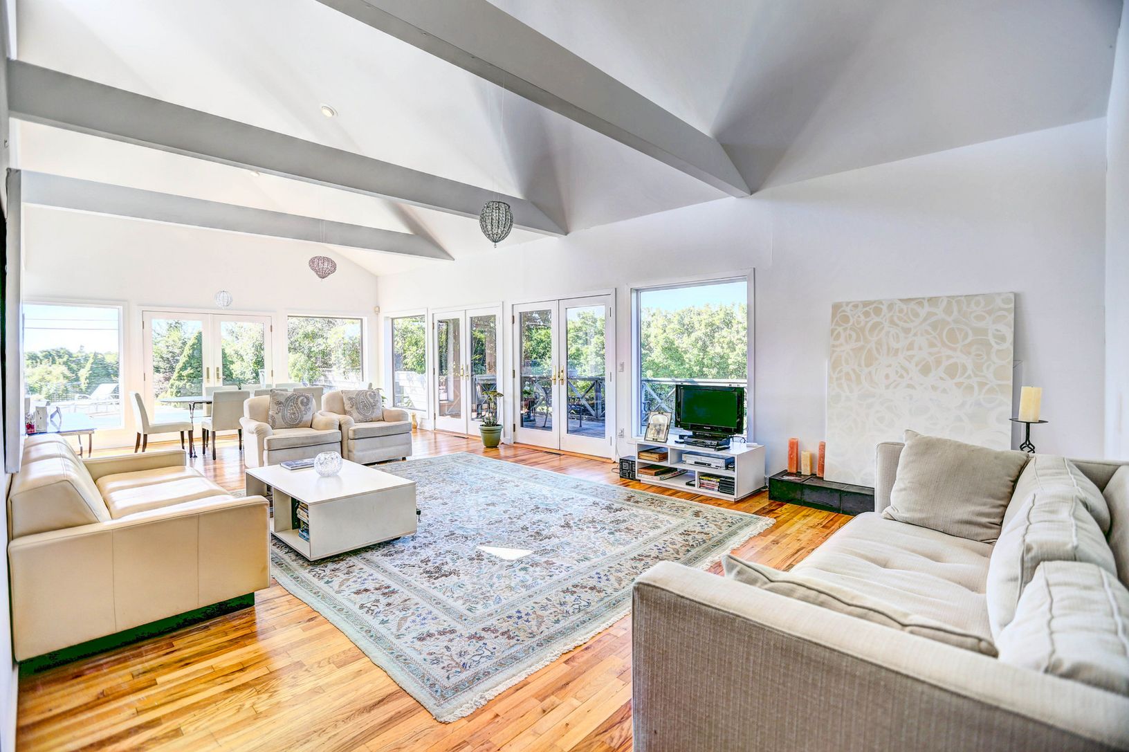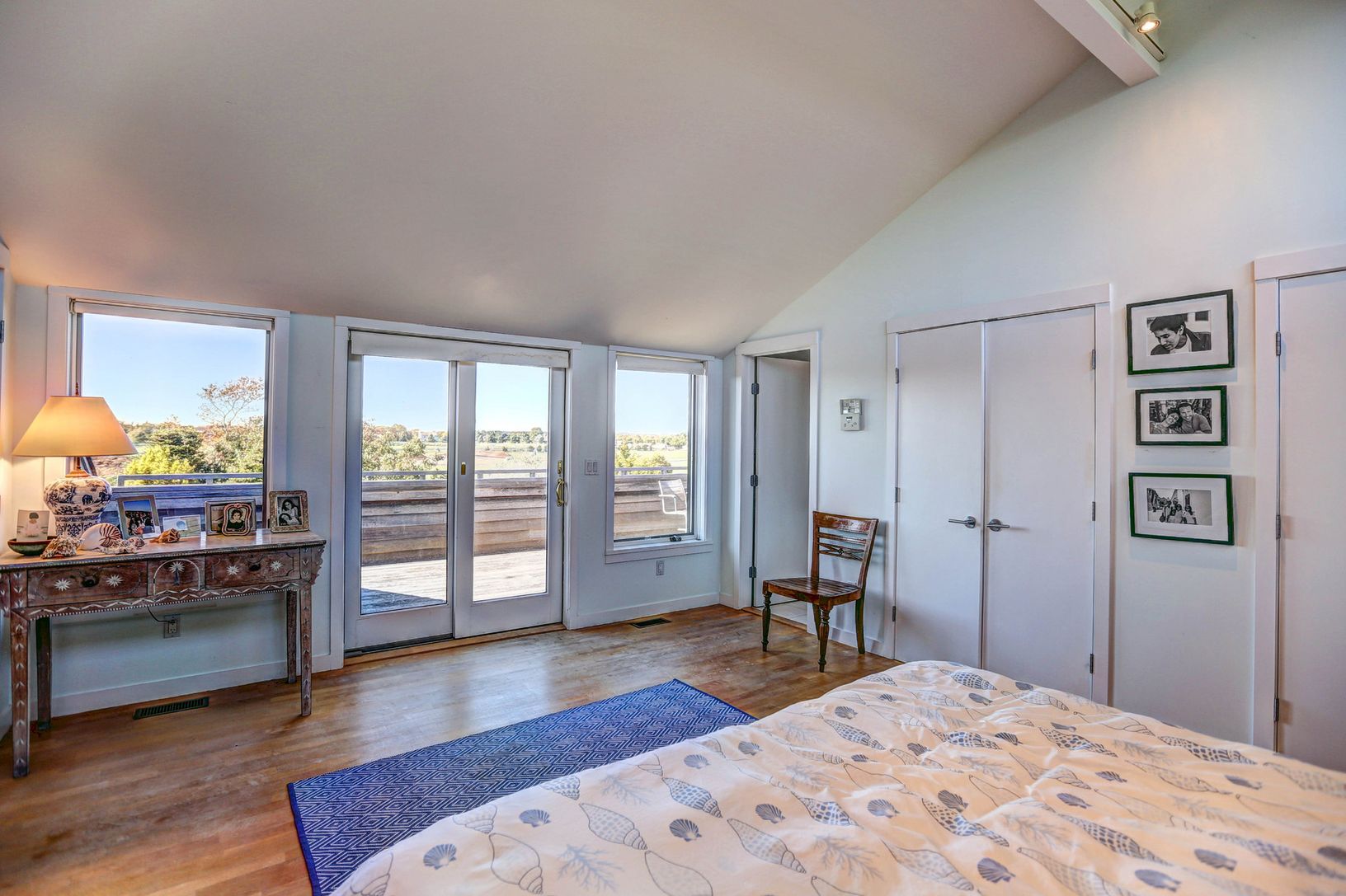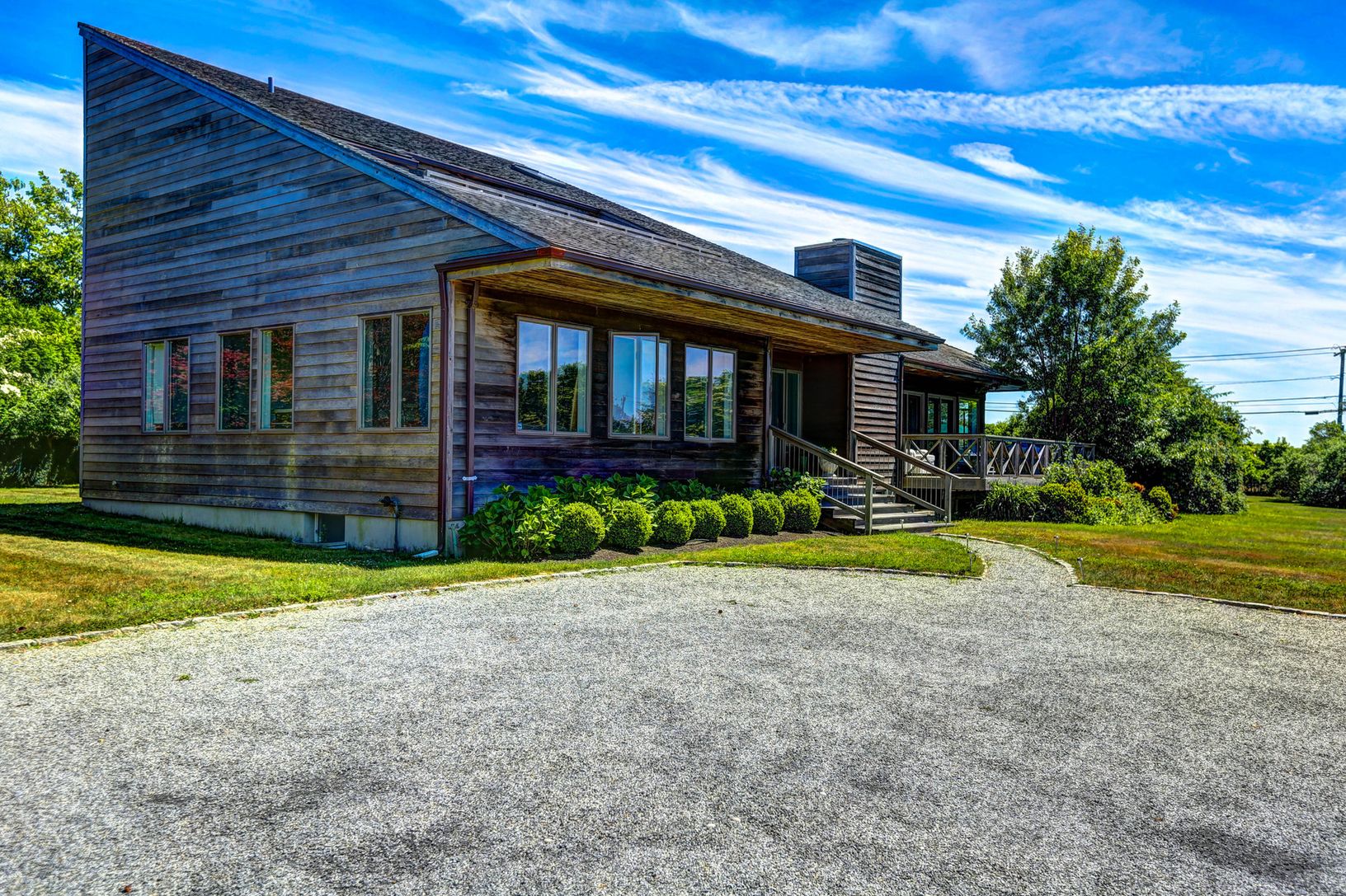 Contemporary beach house offers unsurpassed farm field, and bay views. Bright and open 5 bedroom, 6 bath, 4,000+/- sq. ft. home with two separate wings each with large, open, high ceiling living rooms. In addition, there is a finished lower level with a living area and laundry room. The large south facing deck and pool are perfect for entertaining. Multi-zoned central air, security system, plenty of parking, ample decks and balconies to enjoy