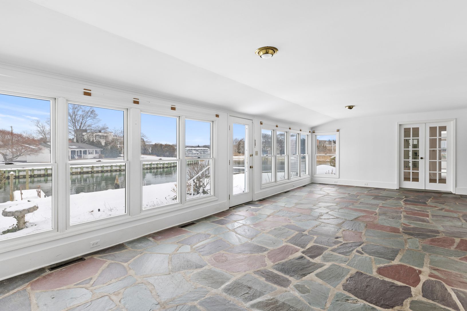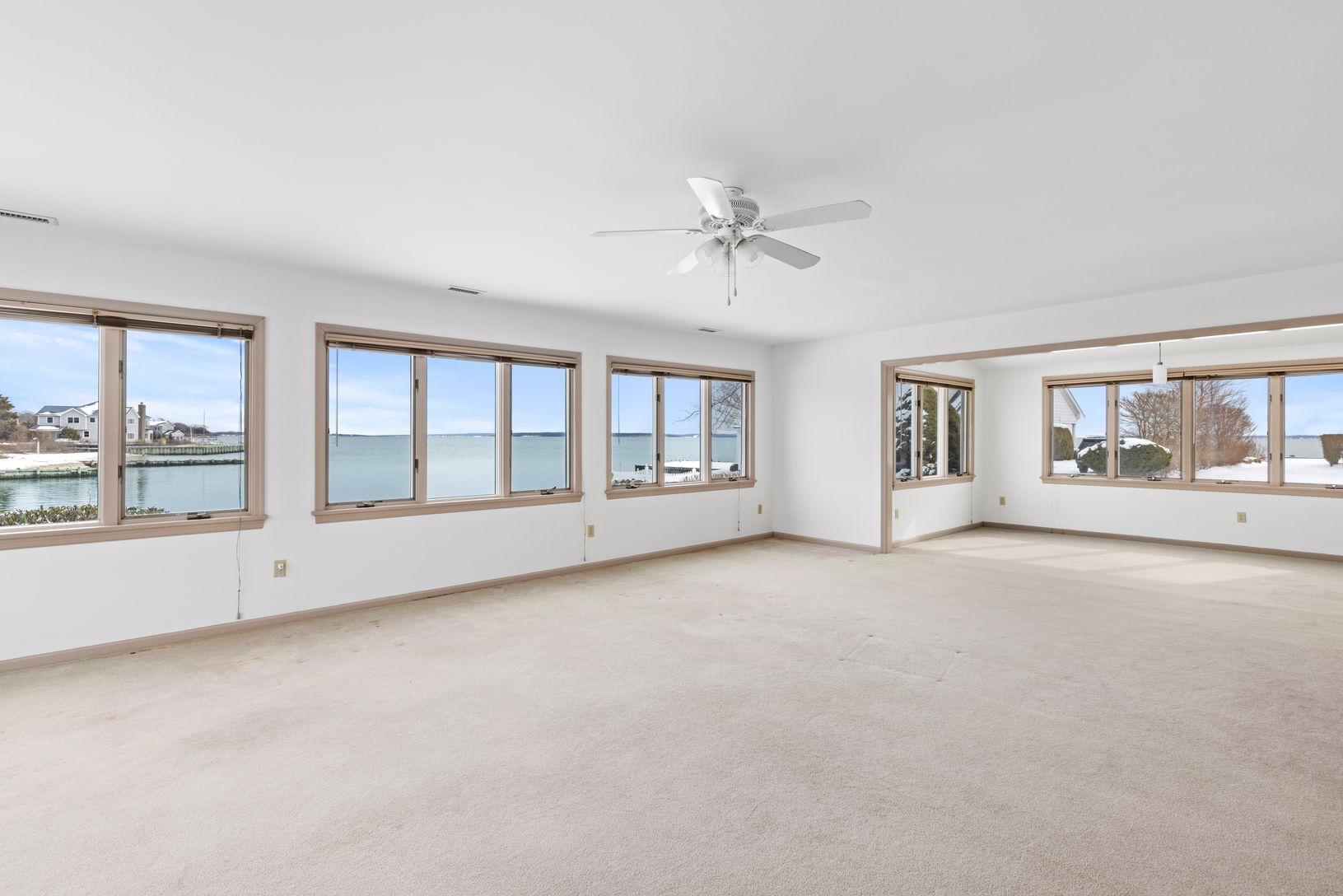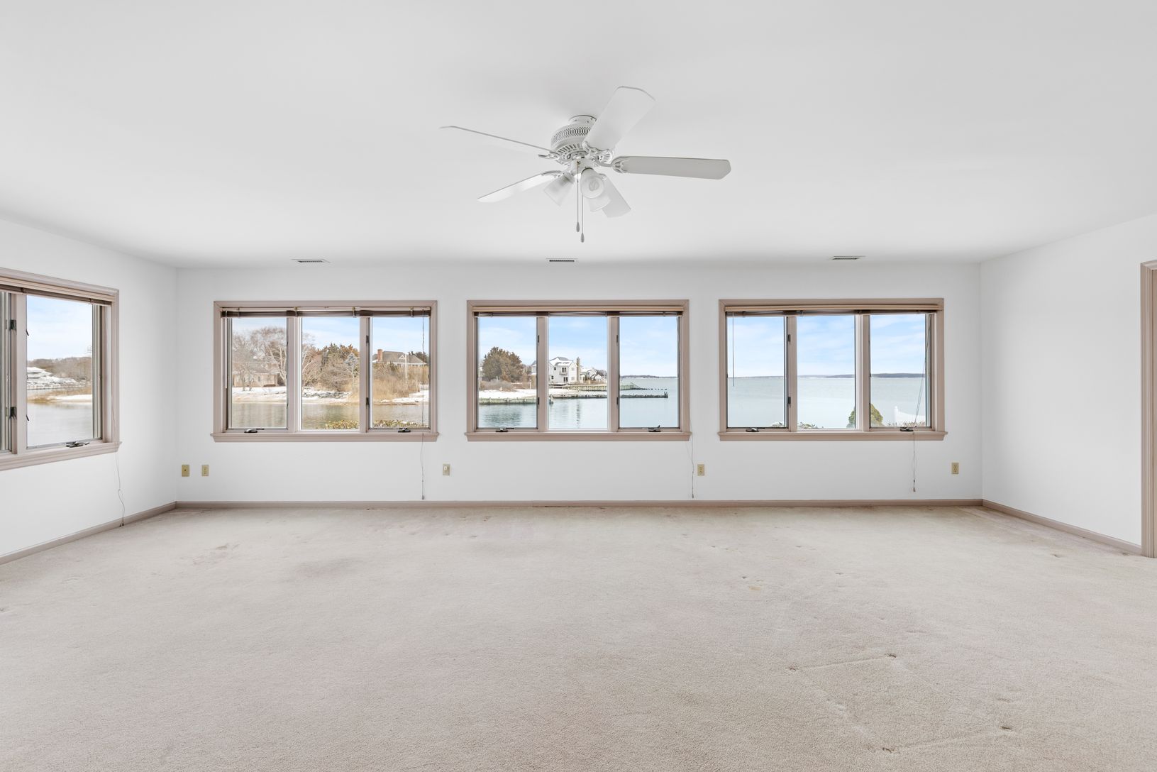 Perfectly positioned on the water with its own private dock, this home is a dream for boating enthusiasts and nature lovers alike. Take in panoramic water views from expansive living areas two with wood burning fireplaces.