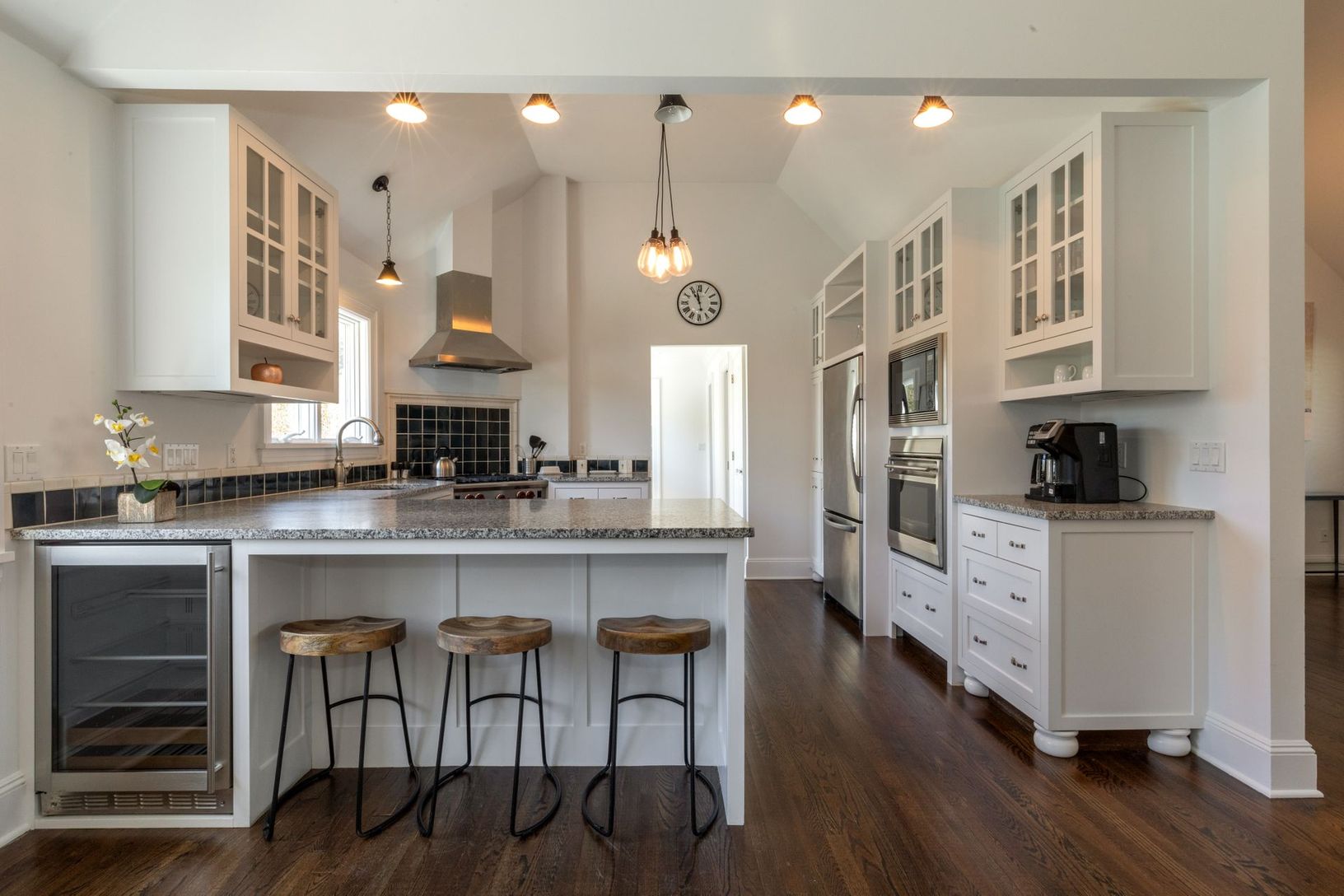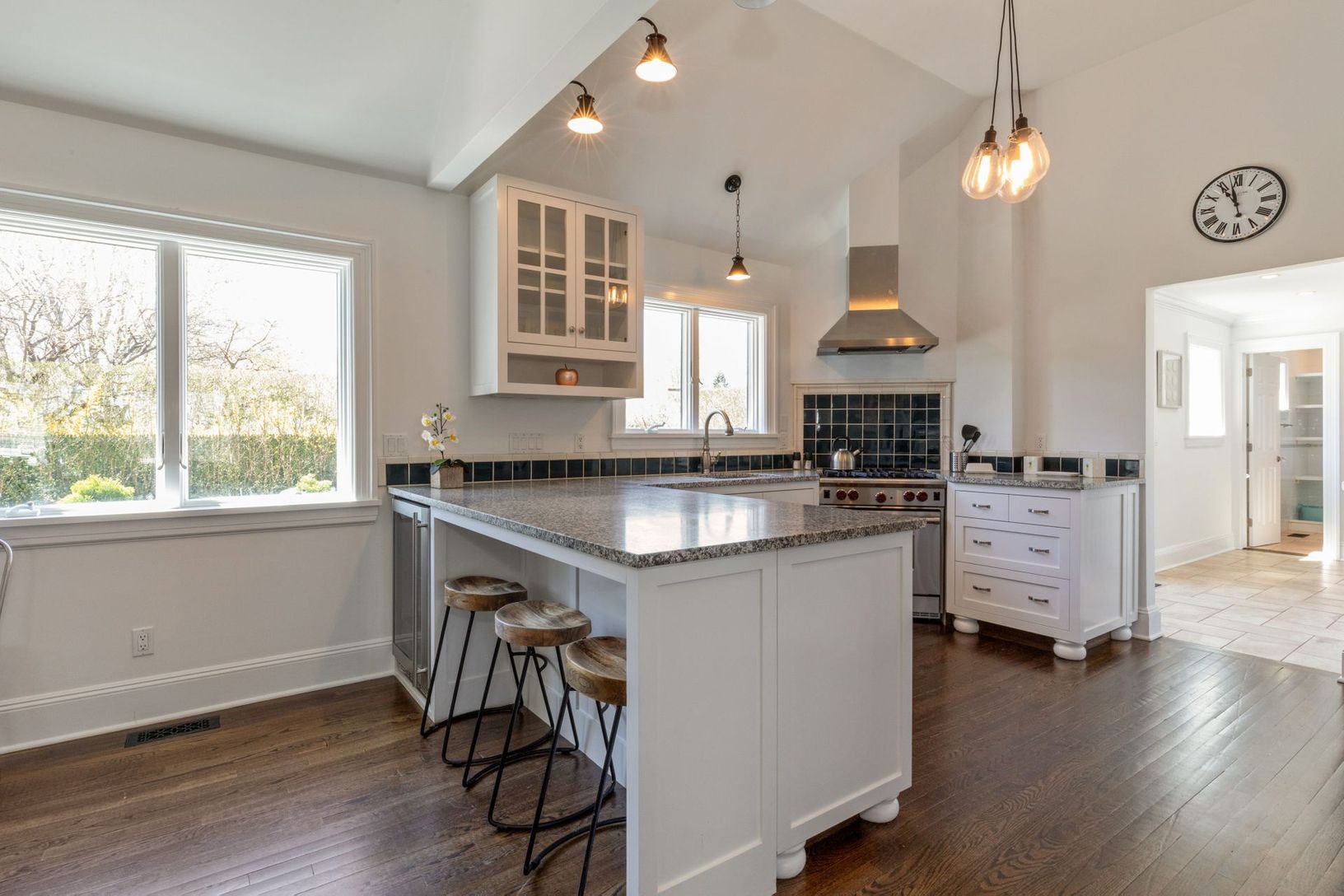 On a quite street and easy location to access all the village has to offer. This renovated contemporary has four bedrooms, four ensuite baths, plus cabana bath for pool area with lots of room for beach towels and a pantry off the kitchen and laundry area plus garage for storage. The saltwater Gunite pool is heated and beautiful landscaping in place for privacy. The main level has a Living room and dining area with fireplace, a separate TV room
