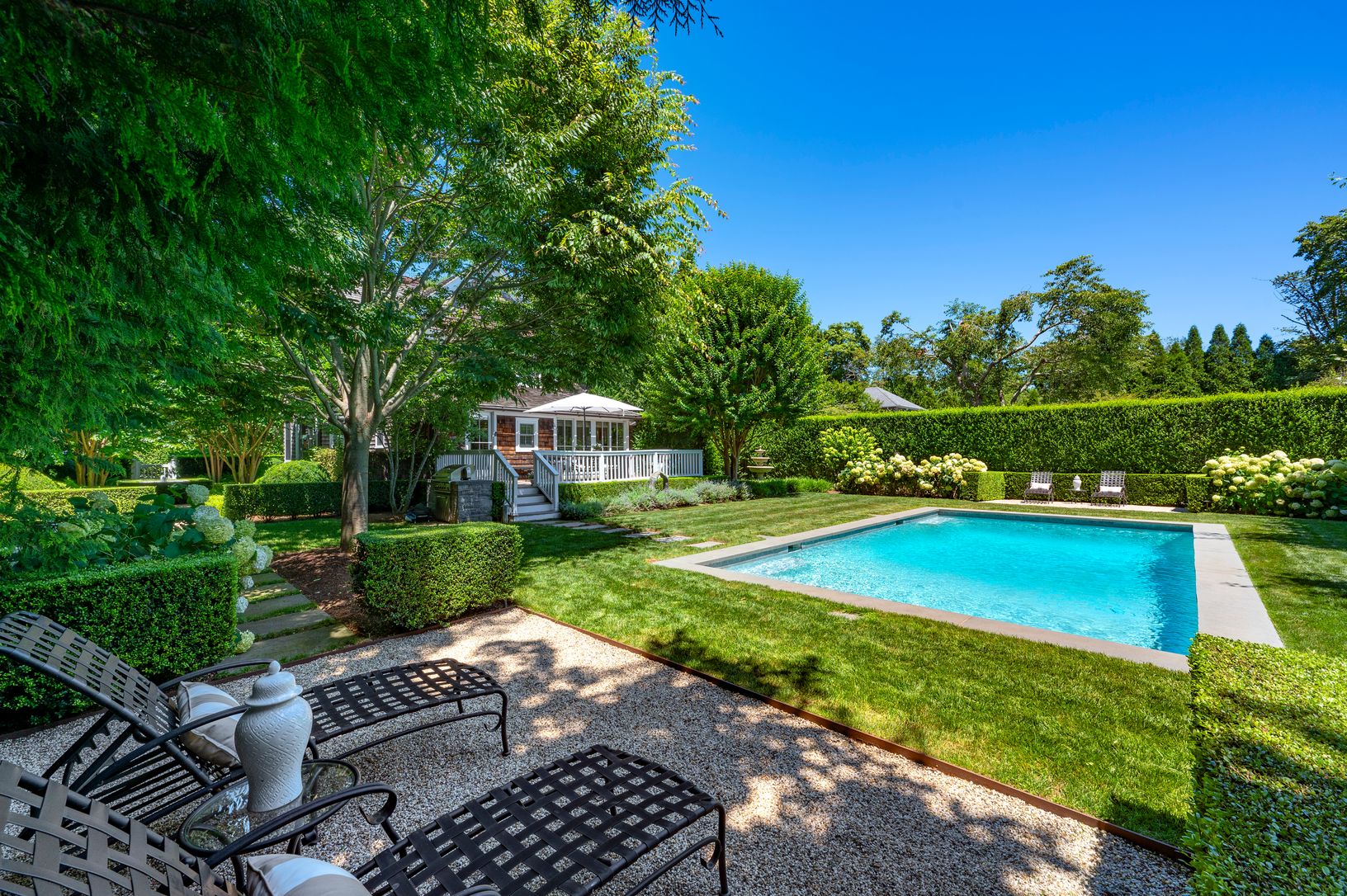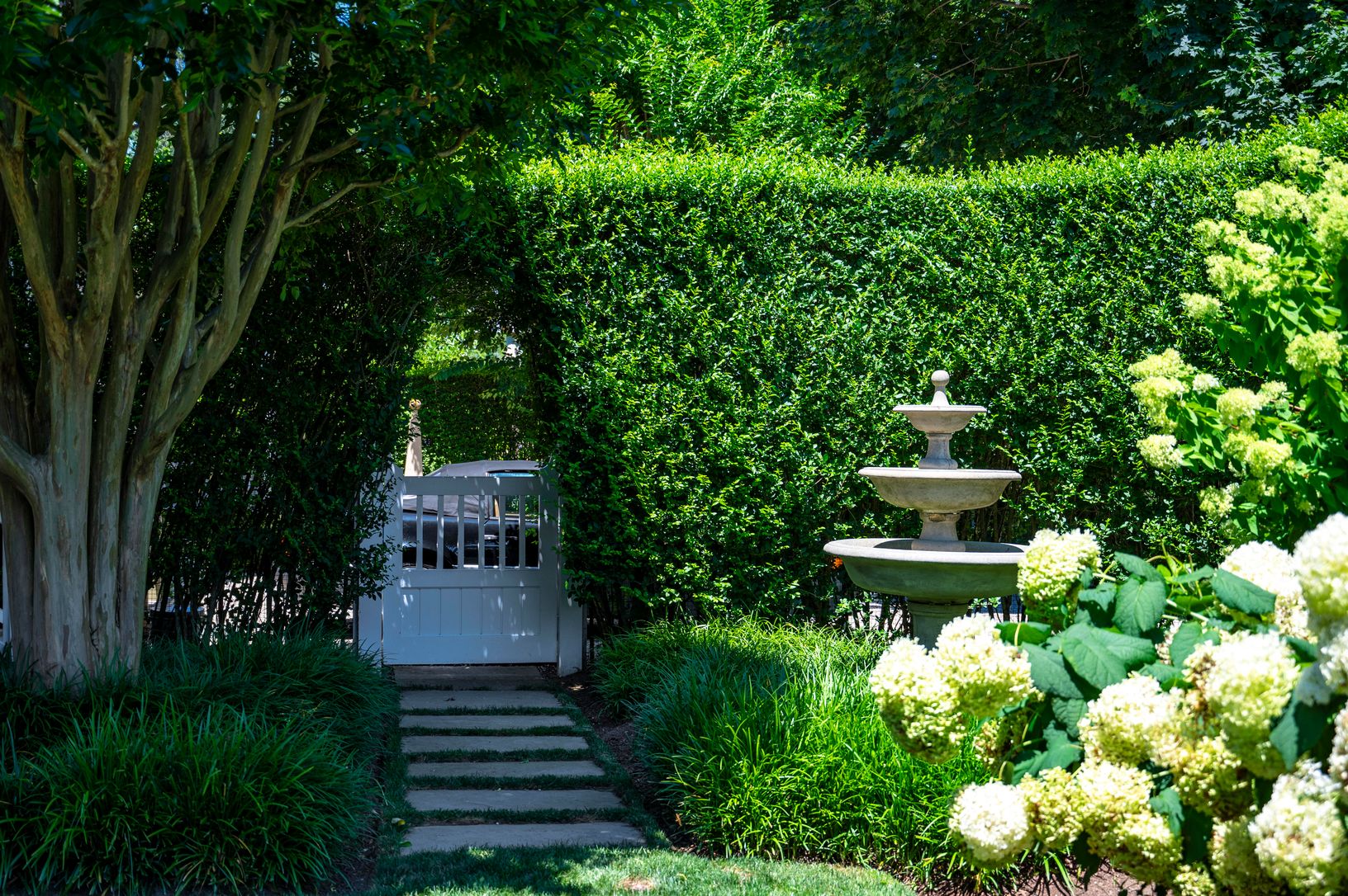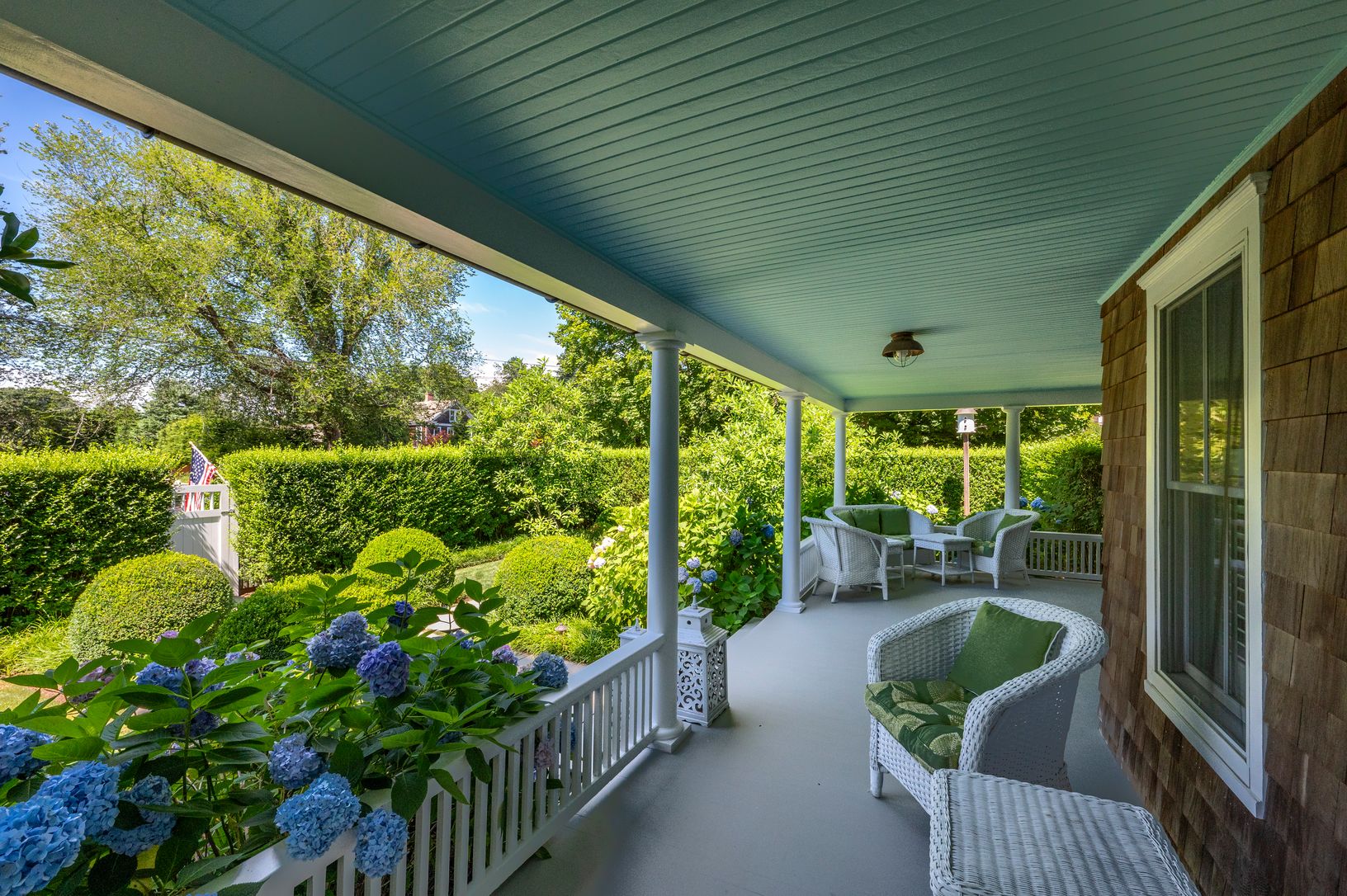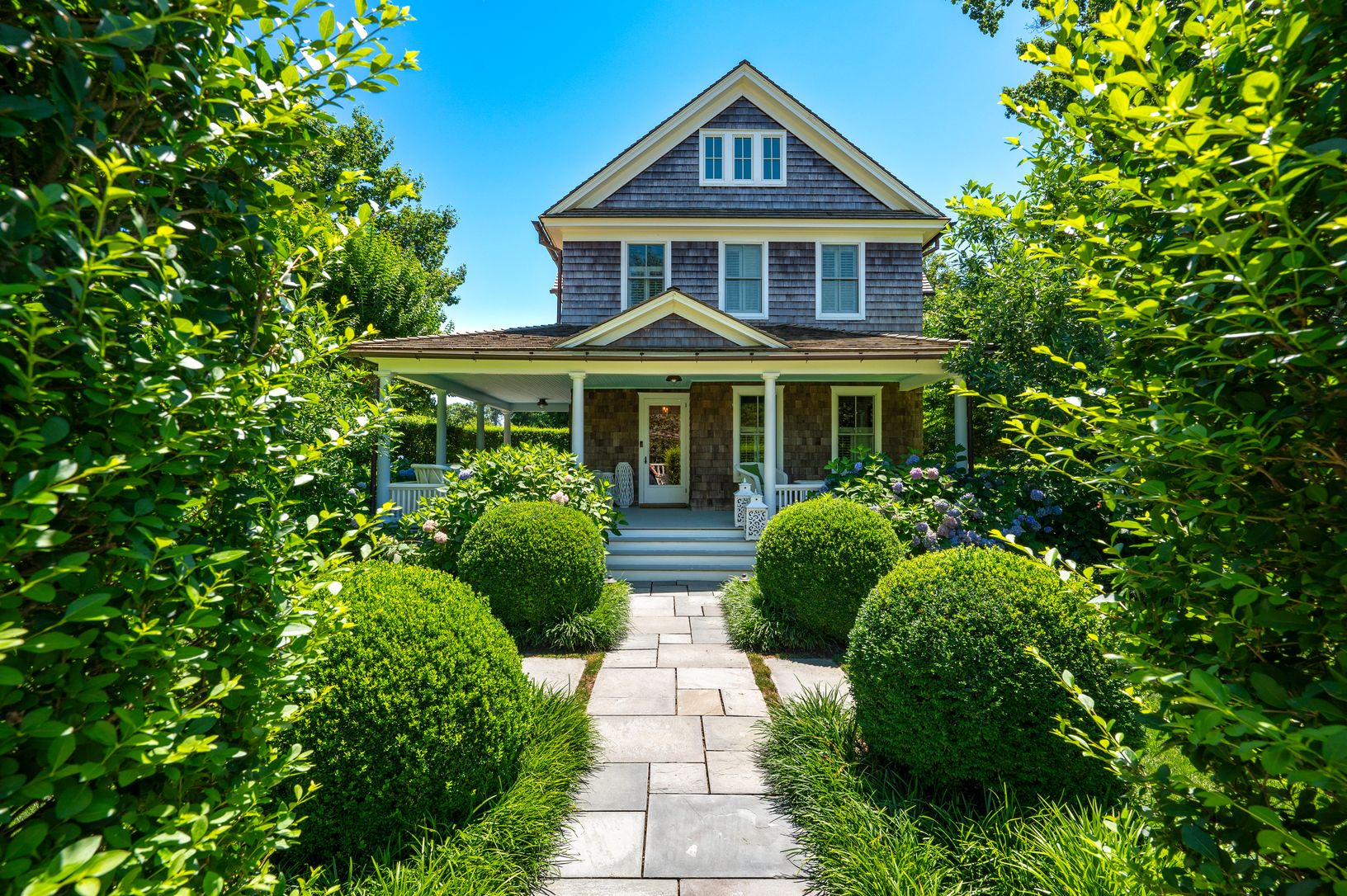 Step through the gate into a secret garden, then onto the wide wraparound porch that sets the tone for everything that fo