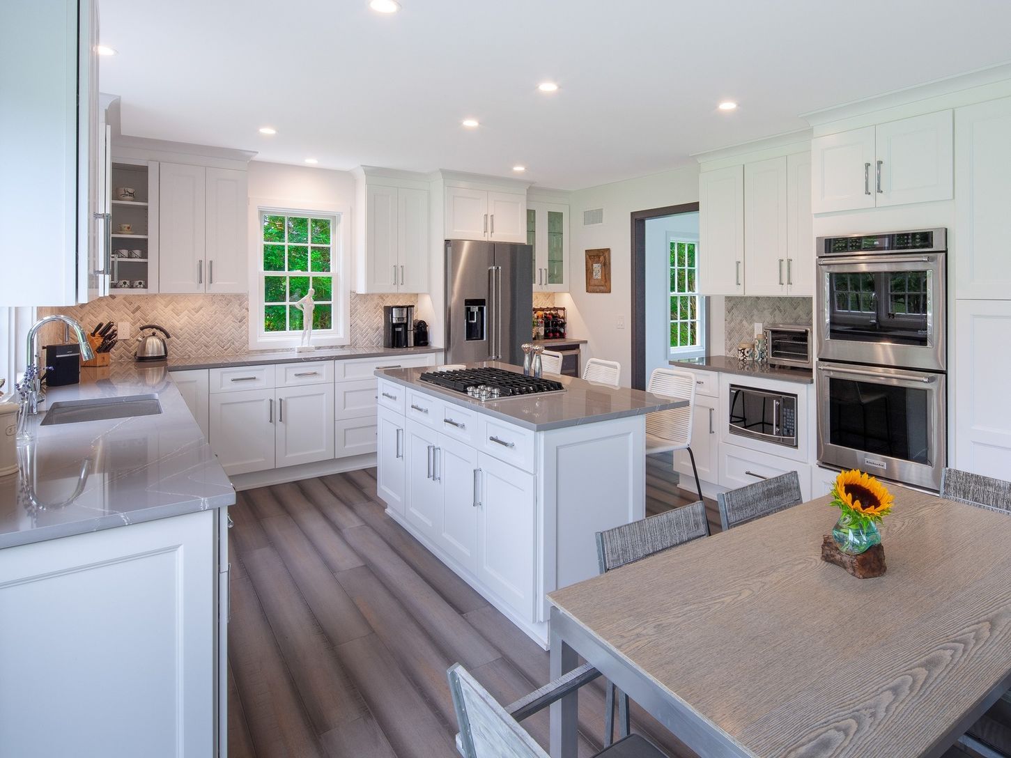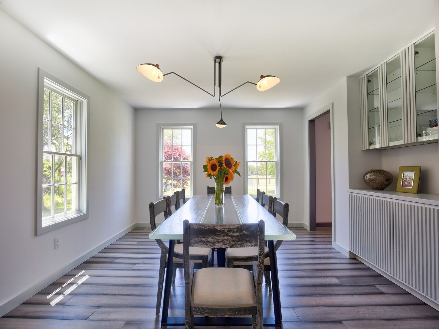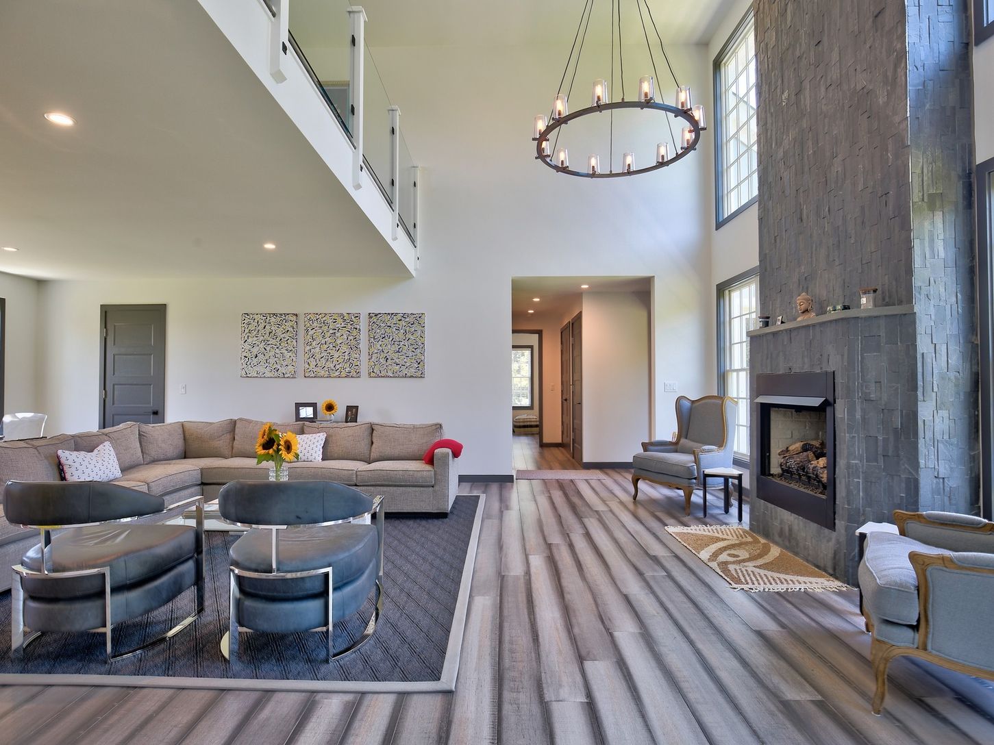Orient, NY: This methodically laid out 3,450+ square foot modern Farm House boasts 4 bedrooms, 3 full baths, 2 half baths and a salt water swimming pool outlined with blue stone copping. Envisioned for entertaining; features include a gourmet, eat-in, chef's kitchen featuring Cambria quartzite counter tops with solid custom wood cabinets and an open concept living room complete with 17 foot ceiling and double height slate gas fire place. Rebui