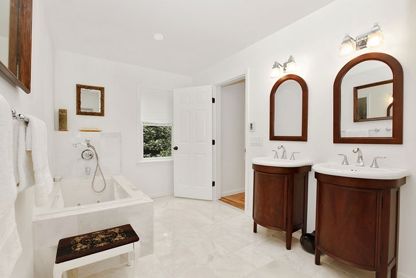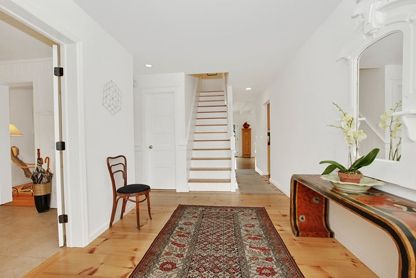 Enjoy over 60 acres of protected farmfield vistas from this charming and recently renovated 4-bedroom farmhouse. Privately set on 1.38 acres in Water Mill, the home boasts a chef's kitchen with breakfast area, living room, dining room, 4.5 new baths, first floor master suite with fireplace, giant second-level bonus room with balcony, mud room, laundry room, heated floors, extensive decking, full basement and an attached 2-car garage. Outdoors