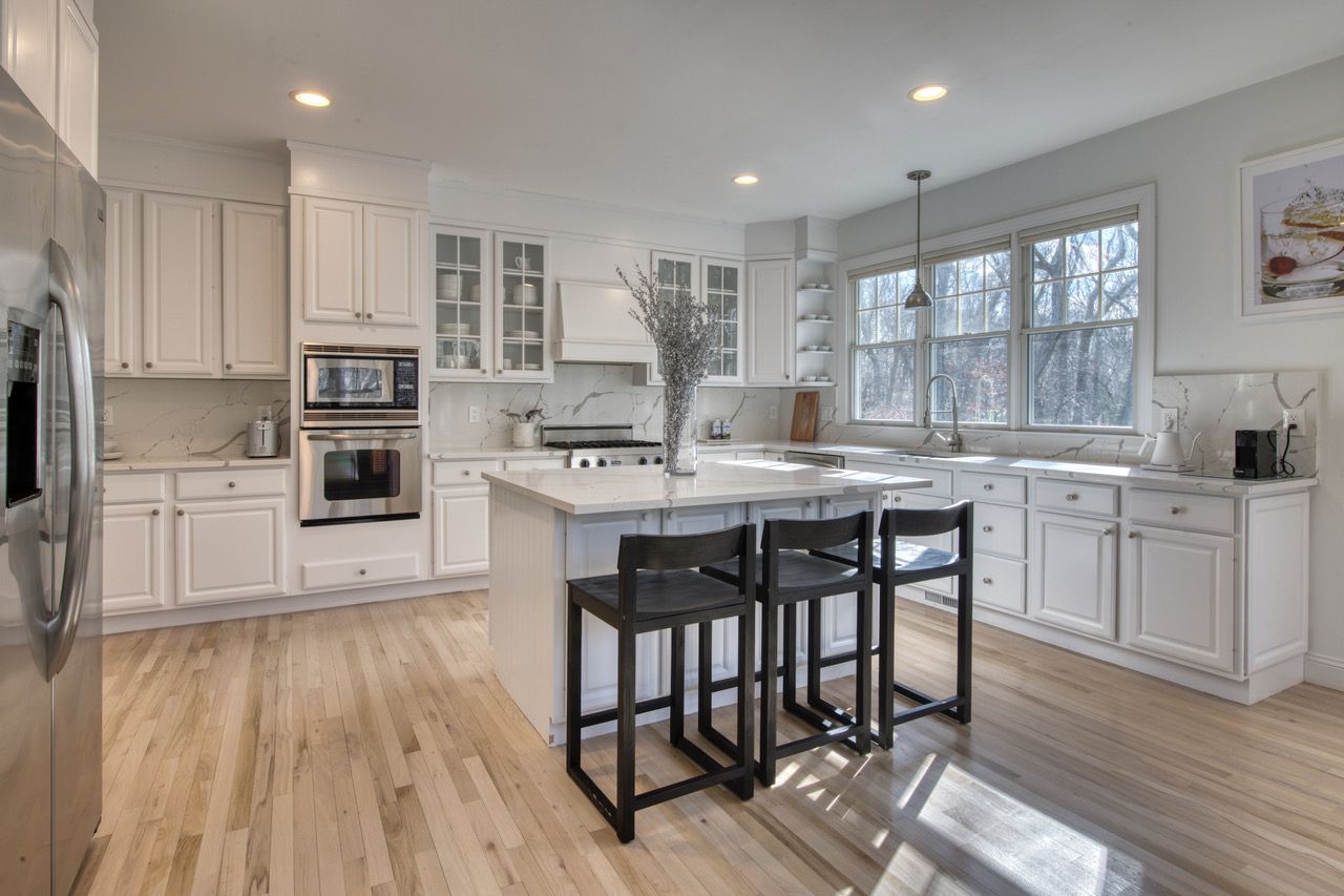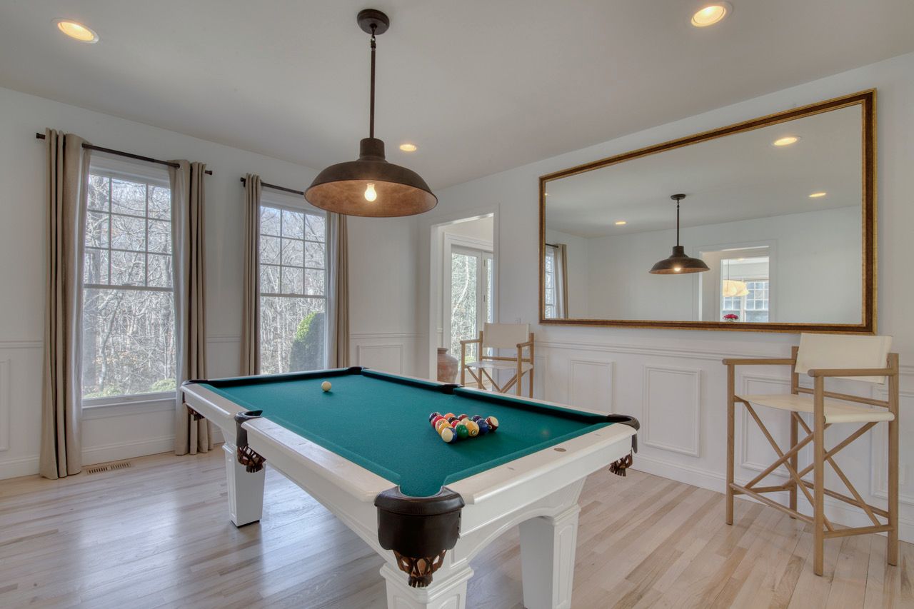 This 5 bedroom, 4-1/2 bath home with high ceilings, lots of light, an eat-in kitchen, also features a separate office and large separate den. The wooden floors have recently been refinished to a white oak with a fresh repainting of the interior. The lower level, just fully renovated now features a state-of-the-art gym and a media centre with a full-wall projector and Sonos surround sound system. Both pr