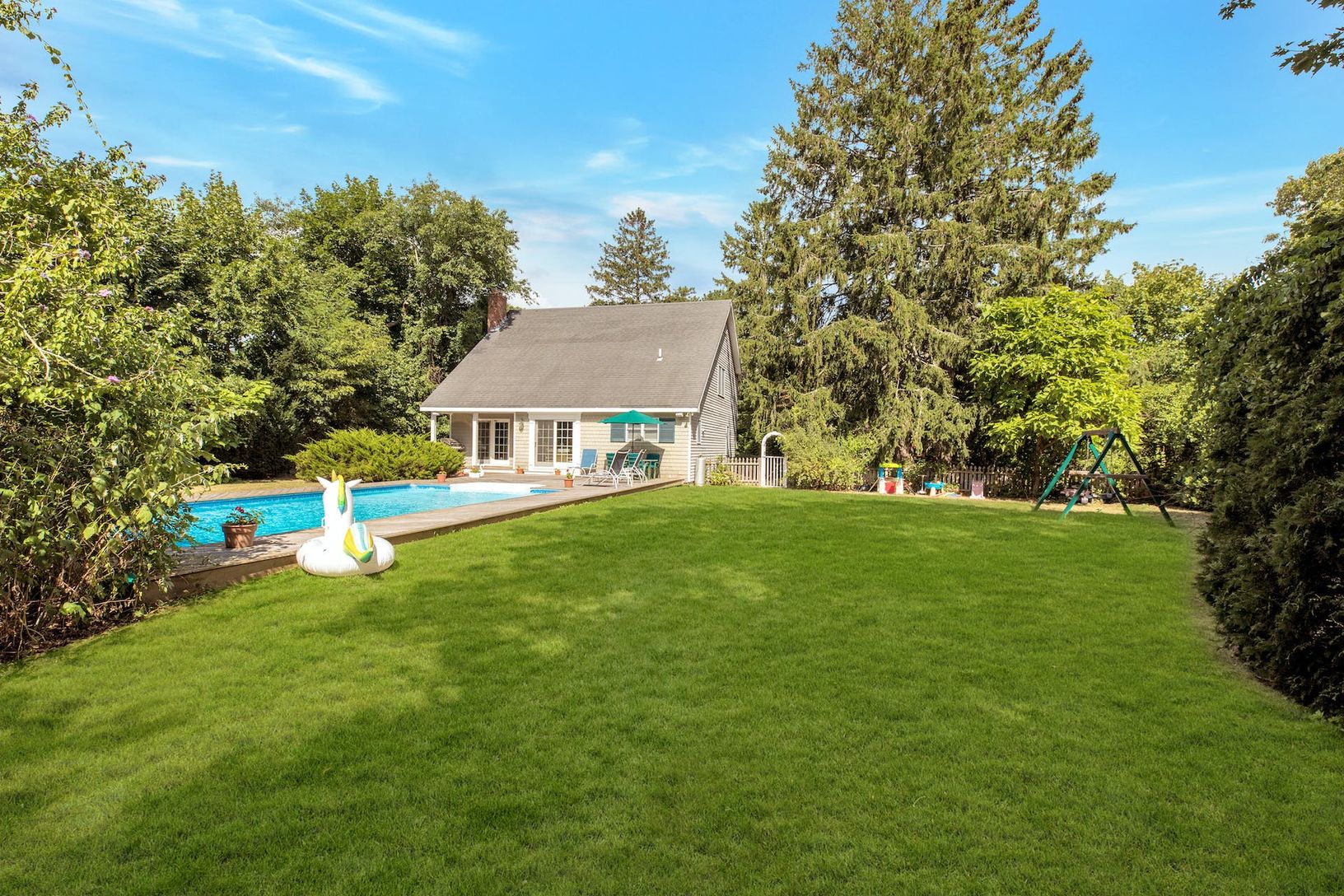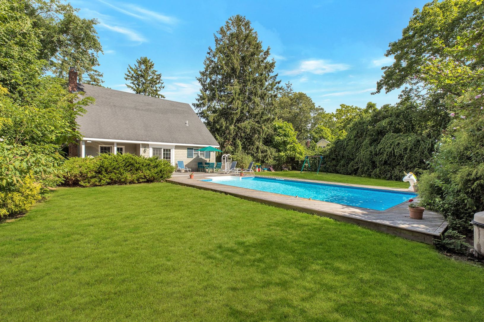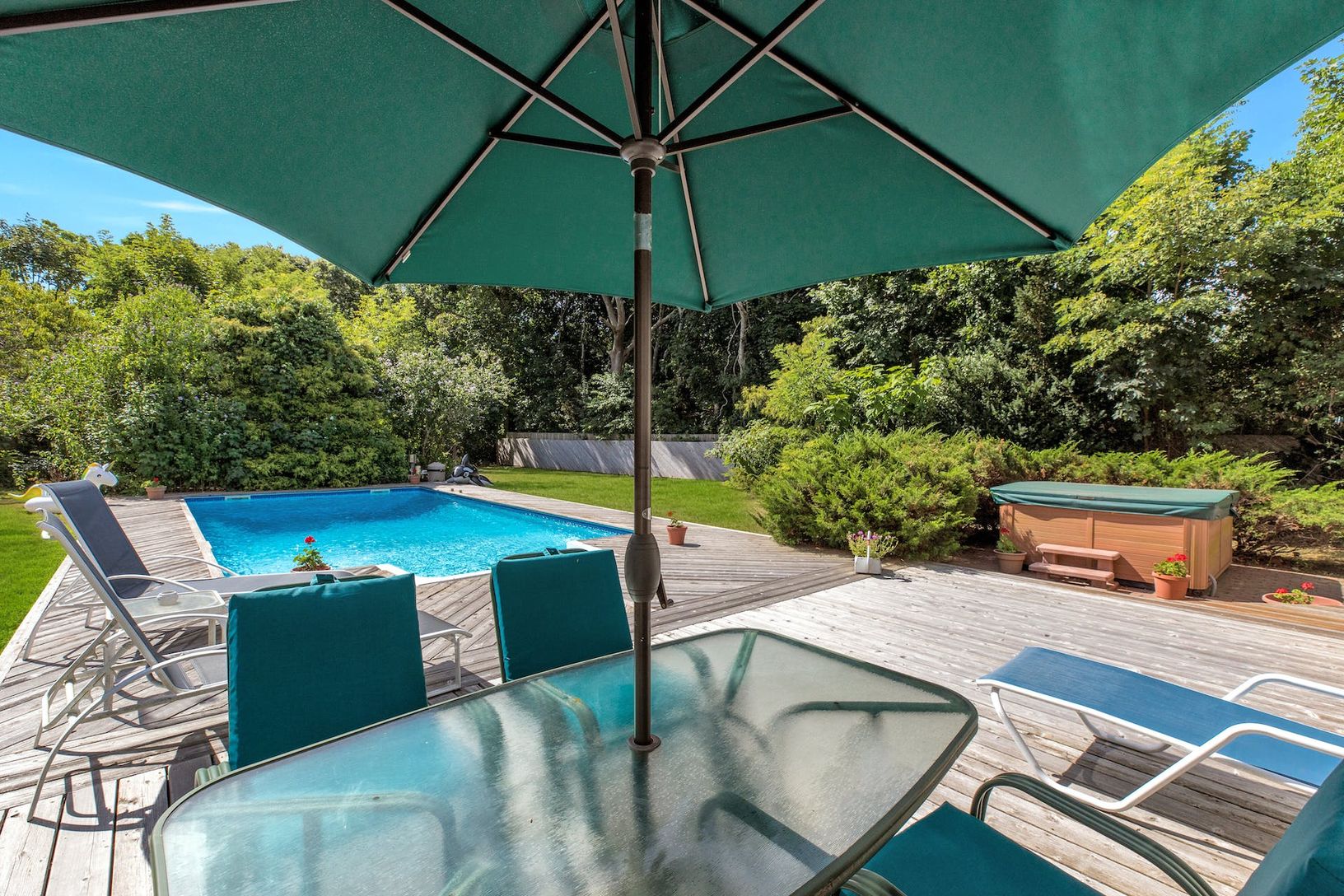 Think about Spring barbecues and Summer pool parties. Enjoy them more in this gorgeous four bedroom, two and a half bath home with expansive kitchen, living room with fireplace, primary bedroom with bathroom on main level, three bedrooms on upper level. Open concept kitchen, dining and living rooms. Sauna, swimming pool, full basement and cac. Private yard. East Quogue School District Don't miss this beautiful opportunity to own a piece