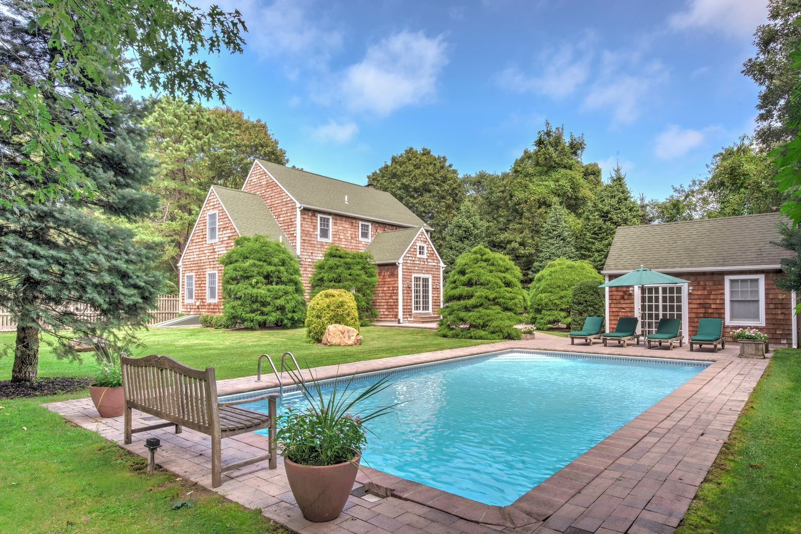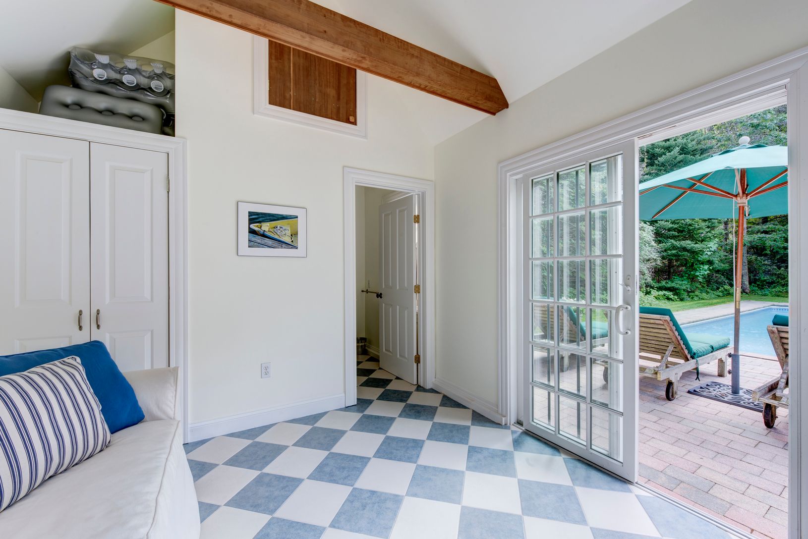 Well located between East Hampton and Amagansett across from a 6.6 agricultural reserve is this immaculate turn-key Hamptons home perfect for summer or year round living. Step into the dramatic double height entry to see an expansive light filled living room with wide pine floors and brick gas fireplace. The dining area opens to a media lounge through French doors, to a newly renovated kitchen with granite counters, and to the out of doors. Co