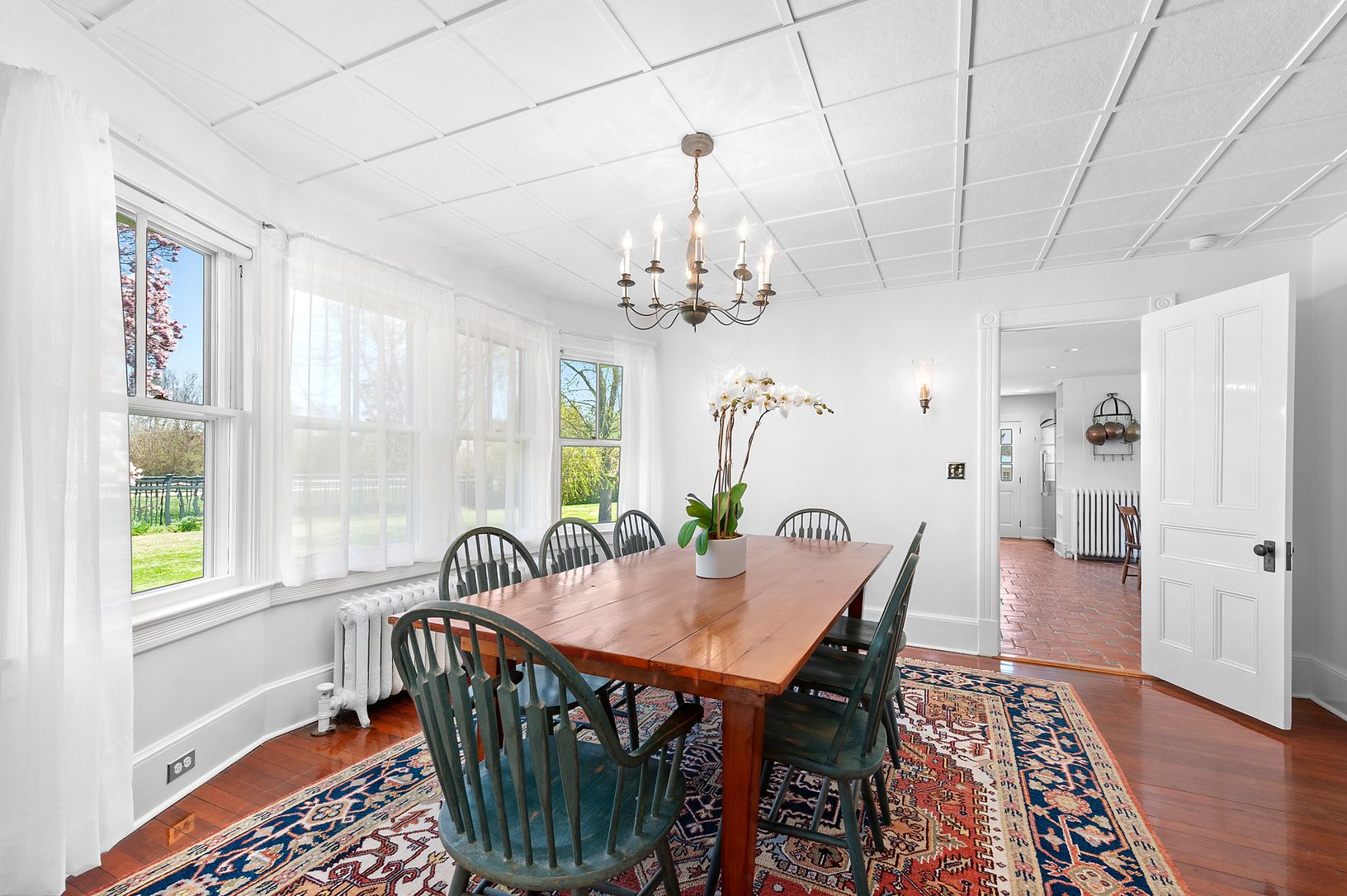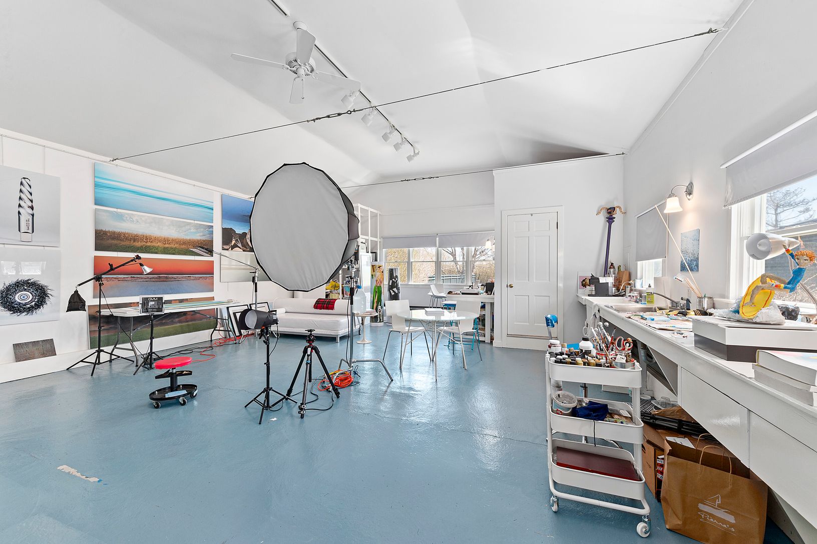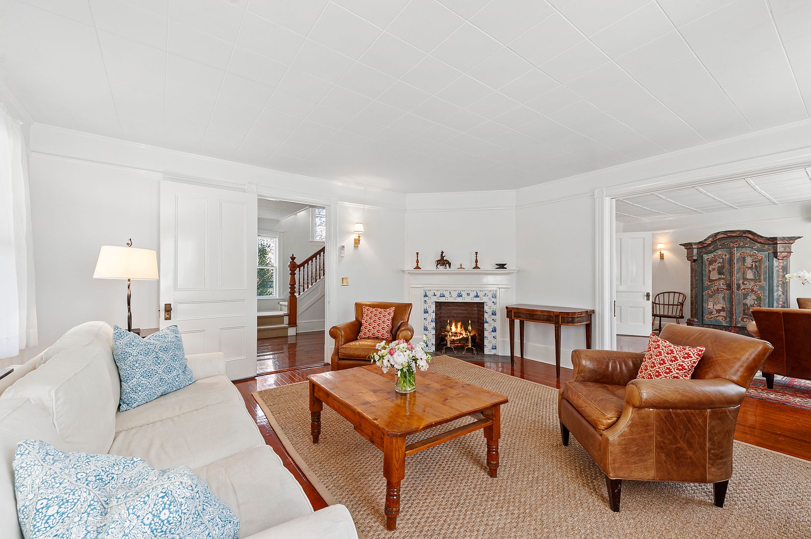In the heart of historic Sagaponack, this authentic 2-acre compound 0.6+/- miles from the ocean consists of a meticulously maintained farmhouse along with four additional pre-existing, non-conforming structures, offering boundless opportunity for the creative mind. The property is steeped in history and was even previously owned by the Topping family. Originally built in the 1920's, the recently renovated and fenced-in 2.5-story farmhouse offe
