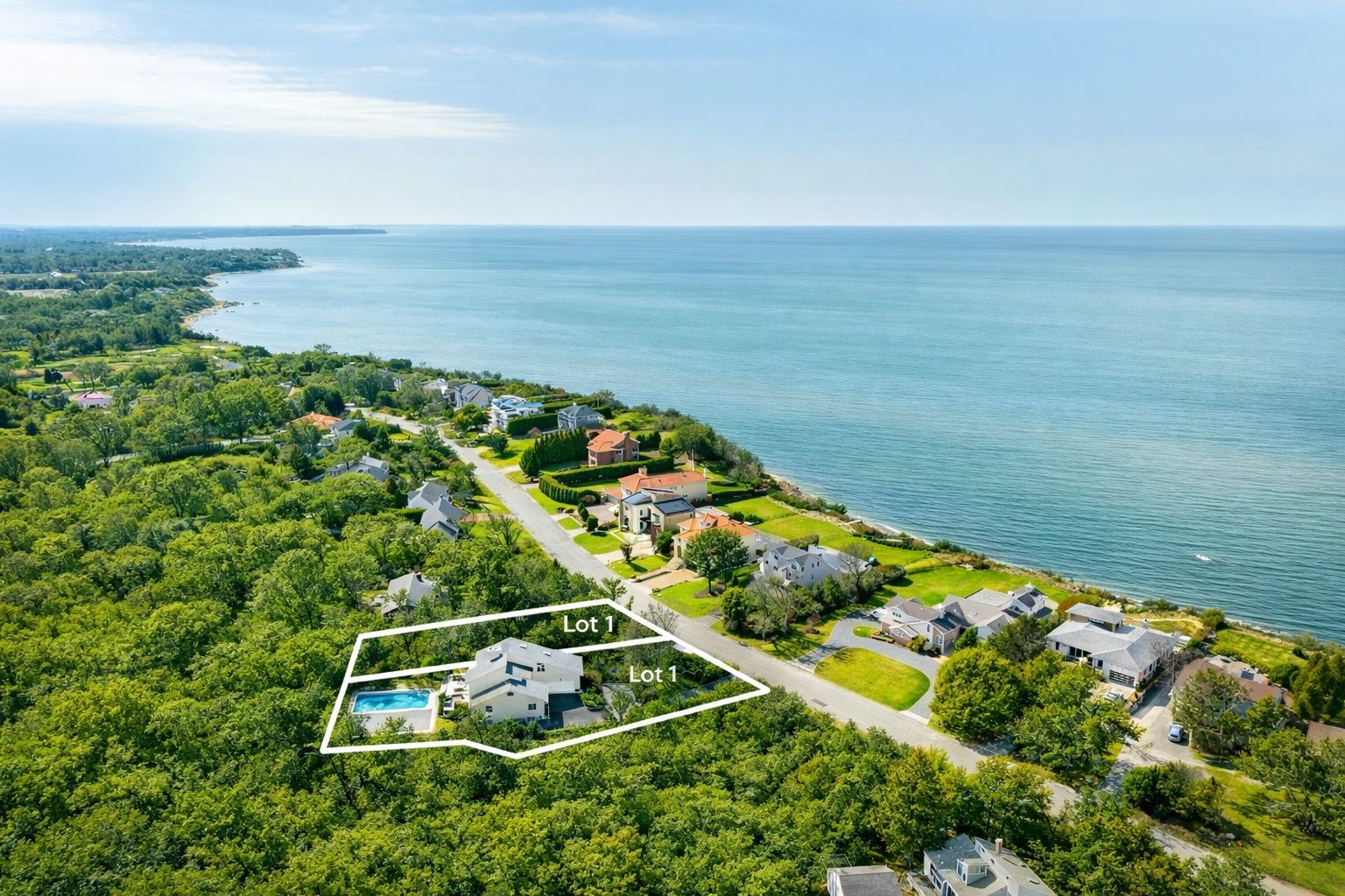 Set along one of East Marion's most coveted waterfront stretches, 875 & 785 The Strand present a rare opportunity to own a combined 1.07-acre coastal compound in an exceptionally private and tightly held location. Spanning two adjoining parcels, this offering delivers scale, flexibility, and long-term potential rarely found on the North Fork. Perched just above the shoreline and directly across from the Long Island Sound, the property capt