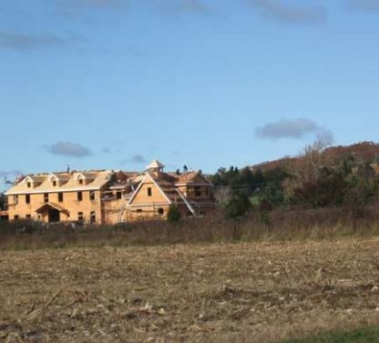 Unique country farm estate is under construction in the fields of Bridgehampton. Stone and shingled house, pool, tennis and 11 acre-reserve, perfect for horses, farm or vineyard.