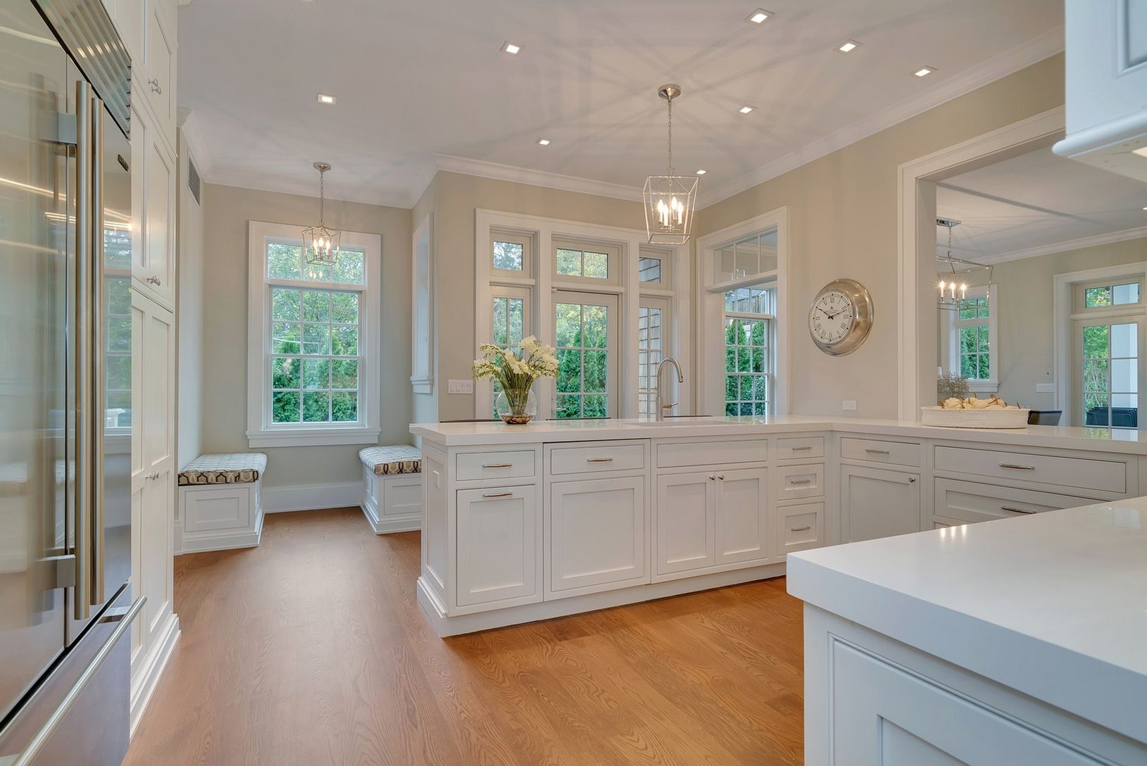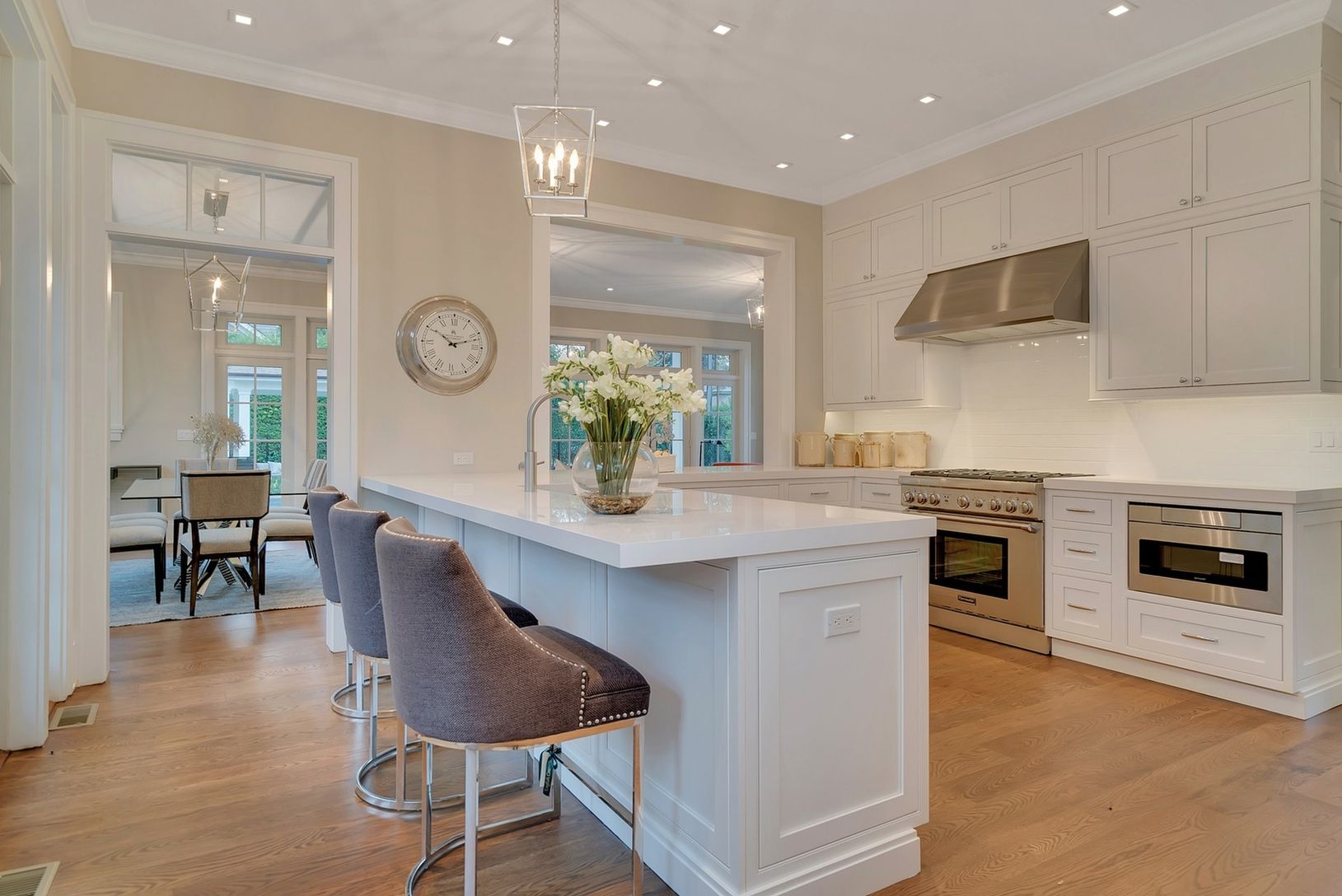 Located less than a mile to the ocean and even closer to the center of town, this newly listed newly constructed home is a pleasure to show. The architecture, materials, finishes and build quality are superb. A gracious foyer welcomes you into the traditional home graced with Contemporary flourishes. An open Great Room with fireplace opens through a wall of French doors to a covered patio, heated gunite pool and accompanying pool house. Adjace