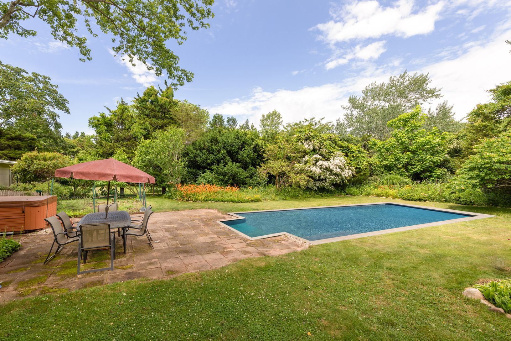 Set back on Bluff Rd is this unfurnished year round rental in the Dunes with seperate apartment. Total of 4 bedrooms and 2 full baths. Apartment includes it's own kitchen. Plenty of yard space with inground pool and hot tub.