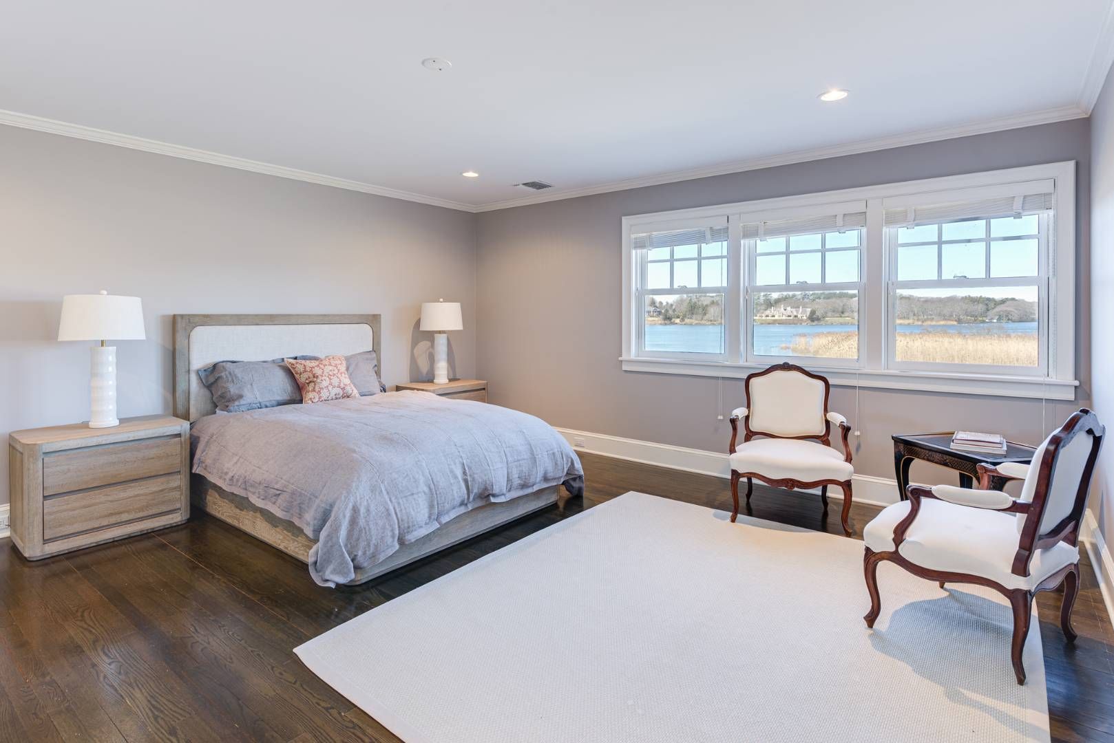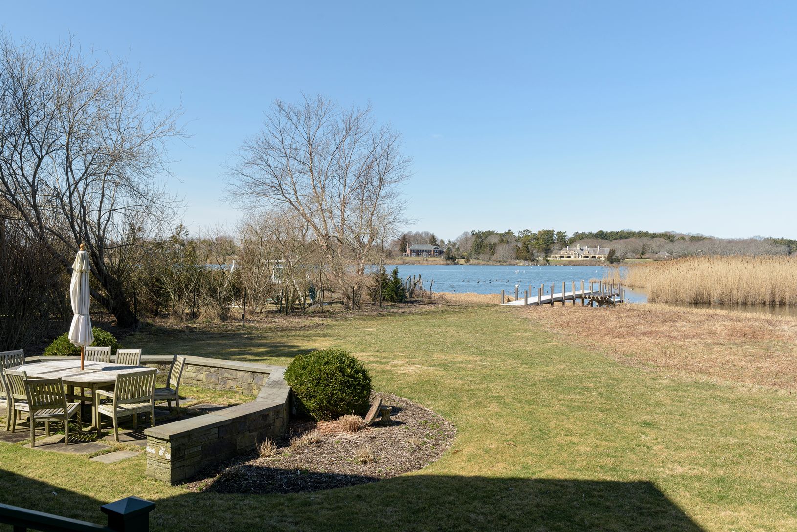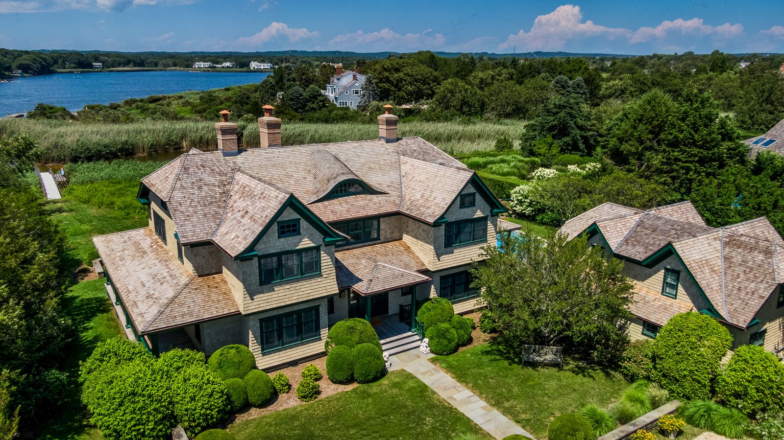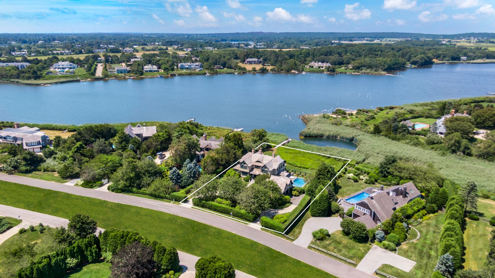Traditional, custom-designed 4,000 +/- sq. ft. residence enjoys an outstanding waterfront location on Hayground Cove. The two-story house features four bedrooms, four and one-half baths, three fireplaces and a wraparound porch. One is greeted by a spacious foyer which gracefully leads to the library with fireplace and the living room over-looking the backyard. There is a well-equipped kitchen with island and butler's pantry just off of the ful