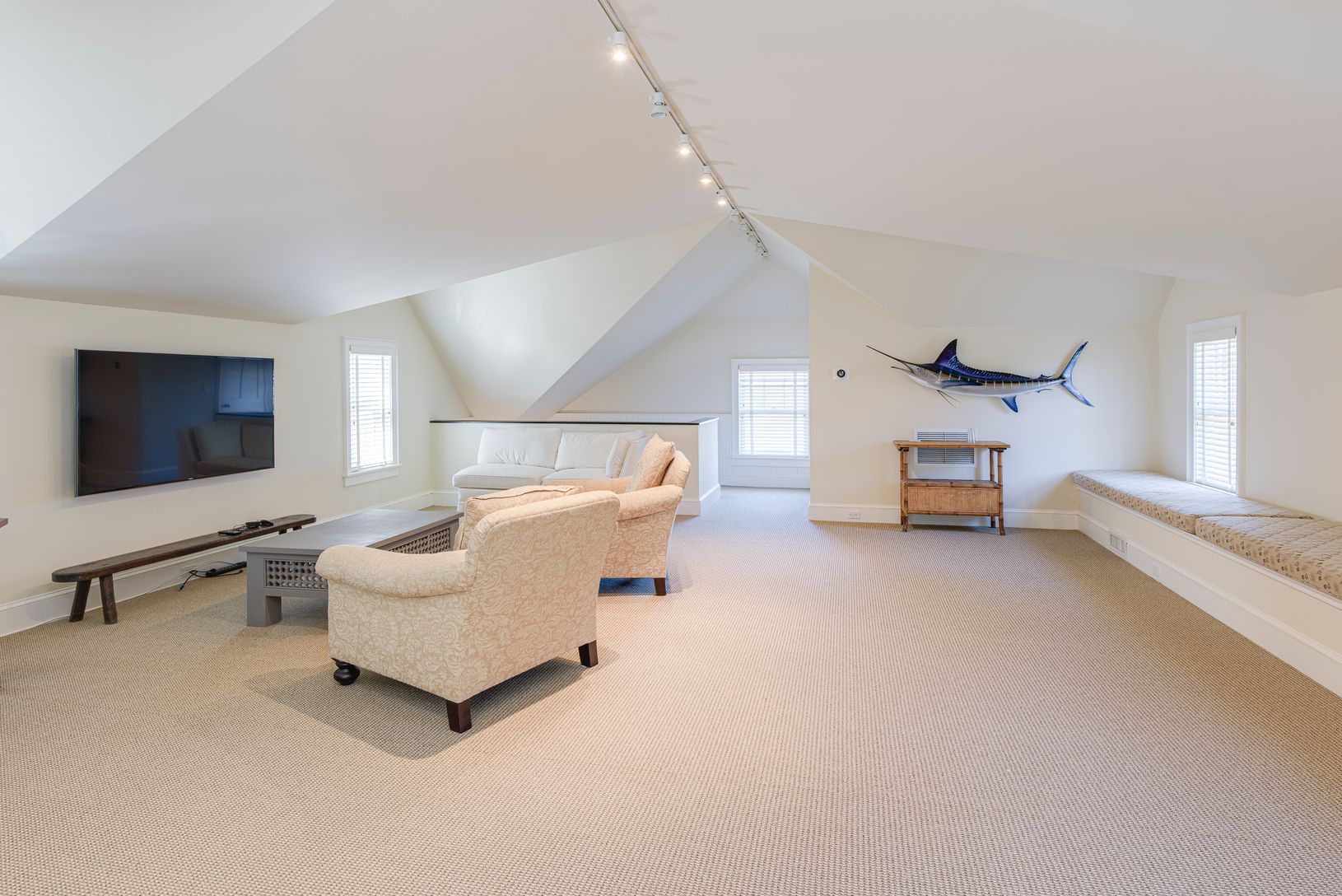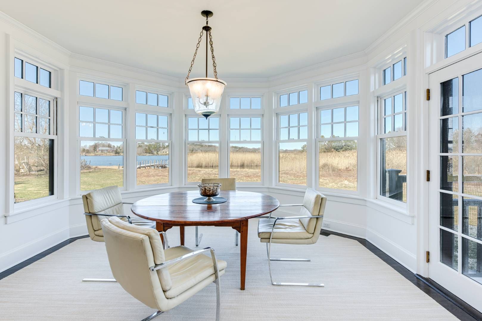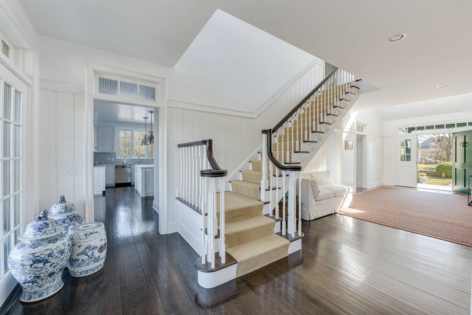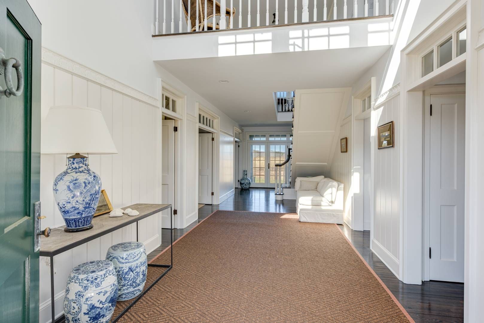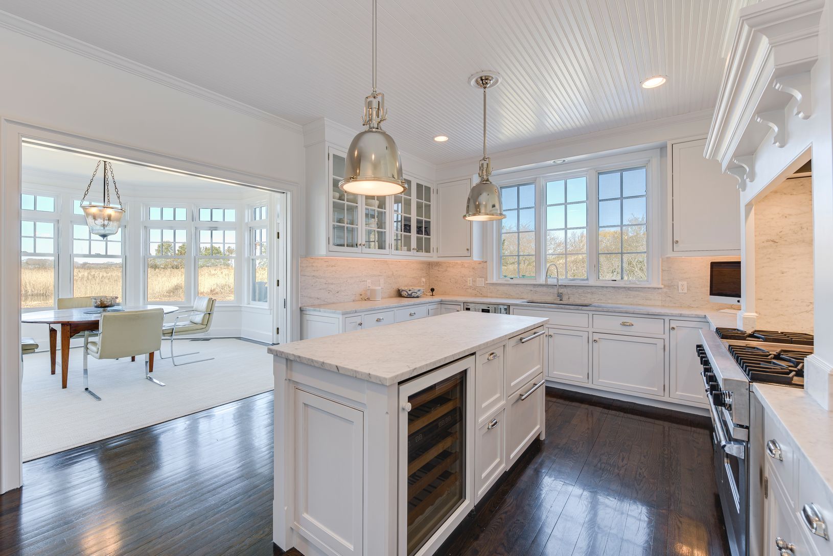 Traditional, custom-designed 4,000 +/- sq. ft. residence enjoys an outstanding waterfront location on Hayground Cove. The two-story house features four bedrooms, four and one-half baths, three fireplaces and a wraparound porch. One is greeted by a spacious foyer which gracefully leads to the library with fireplace and the living room over-looking the backyard. There is a well-equipped kitchen with island and butler's pantry just off of the ful