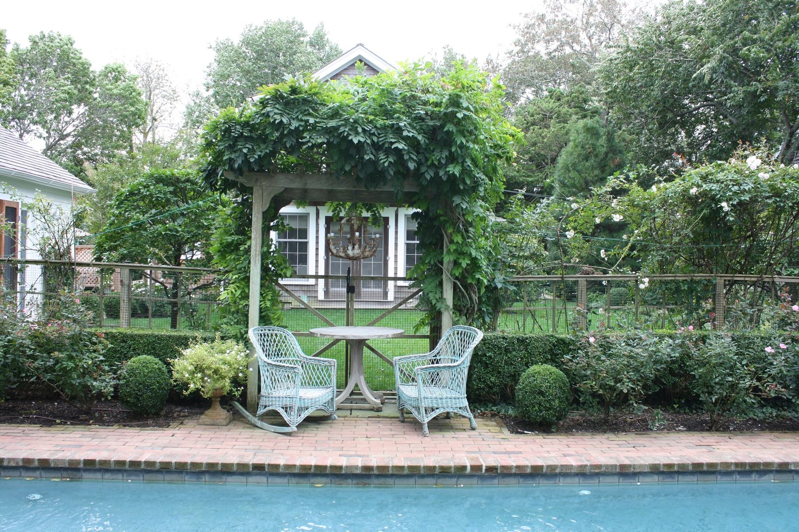 Newly renovated 1900's classic full of period charm in prime East Hampton Village location, short distance to Main Street and Jitney. Living room with fireplace, formal dining room, dream entertaining kitchen and sunroom overlooking private gardens with lush, mature plantings,entertaining pool house & private, fenced pool. Large master suite with balcony and luxury bath, 3 additional guest bedrooms. Central air conditioning.